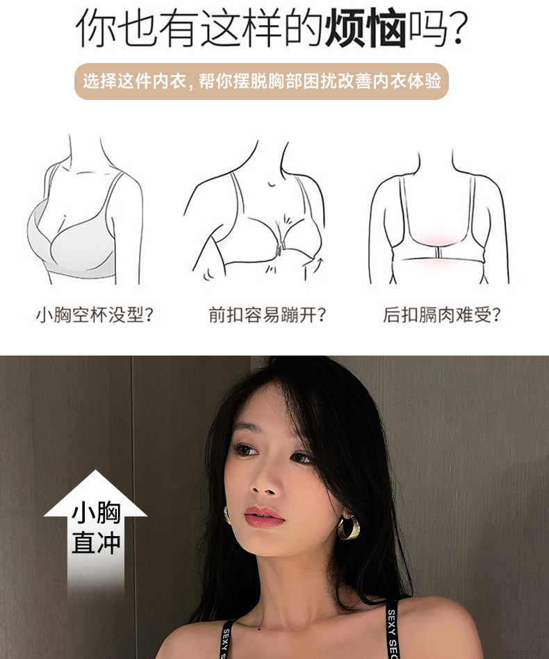 前釦美背內衣女小胸聚攏顯大無鋼圈無痕上托防下垂小衆露背文胸罩