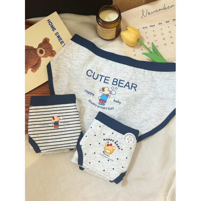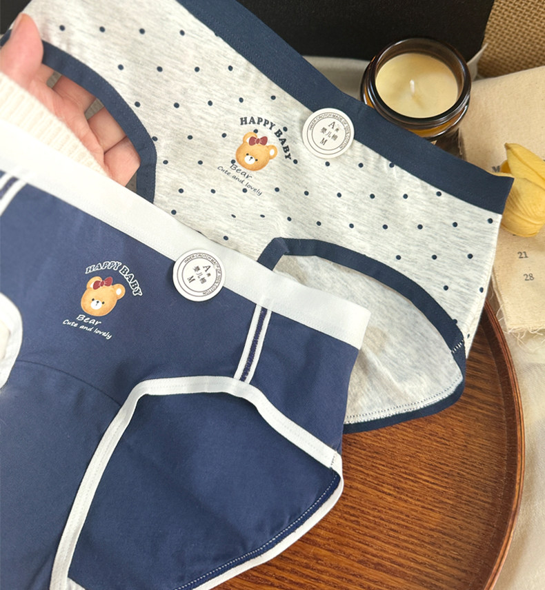 內褲女生純棉襠a類可愛學生藏藍學院風小熊卡通透氣三角褲頭新款