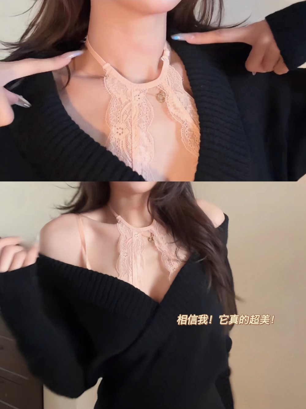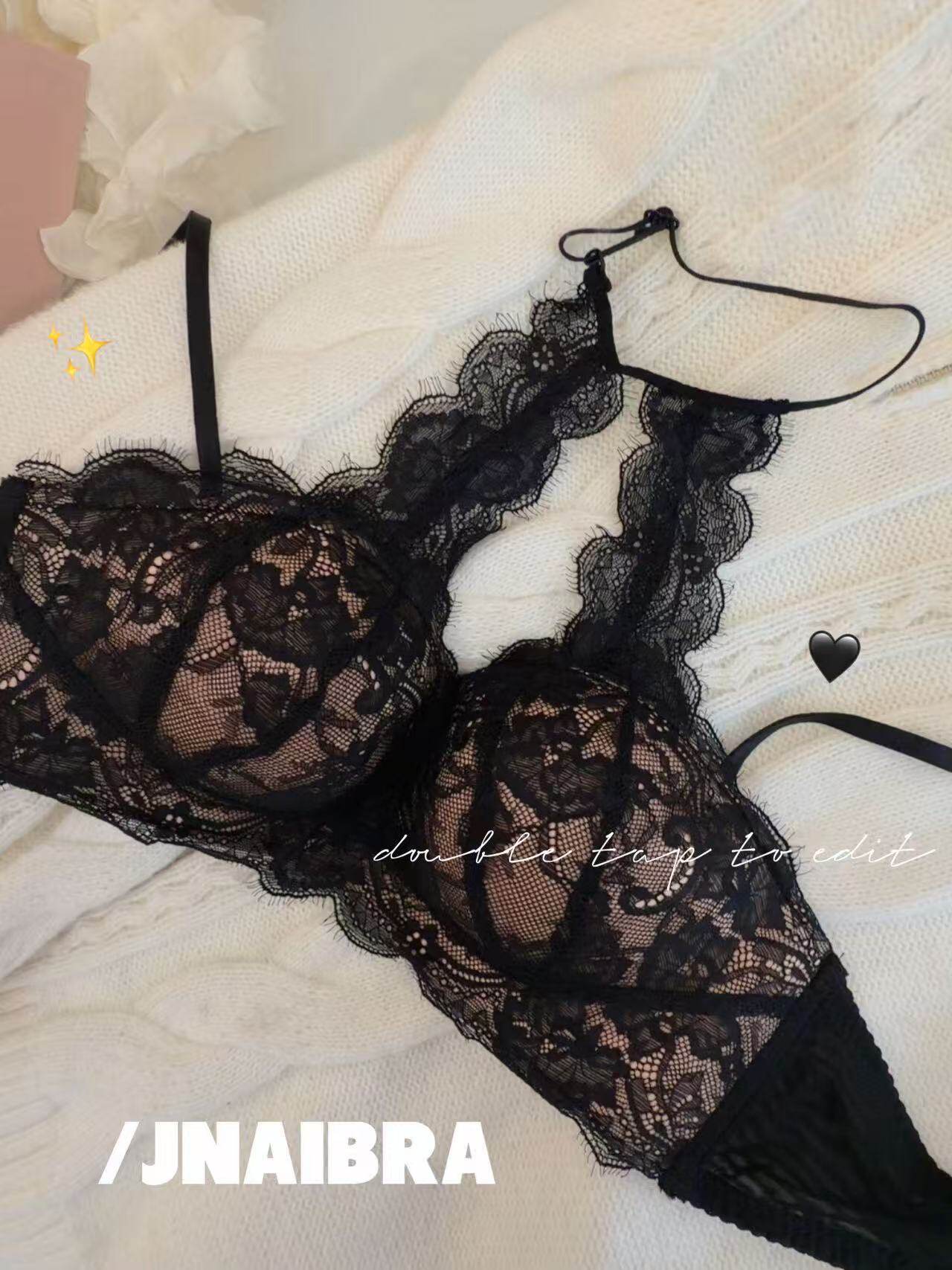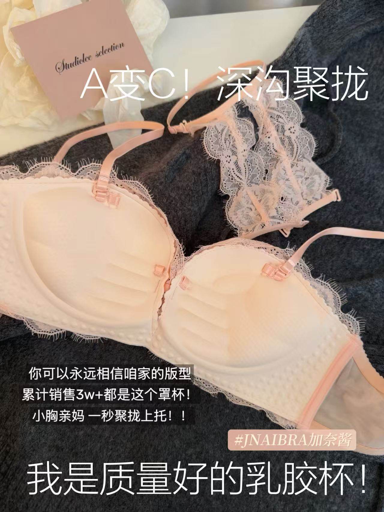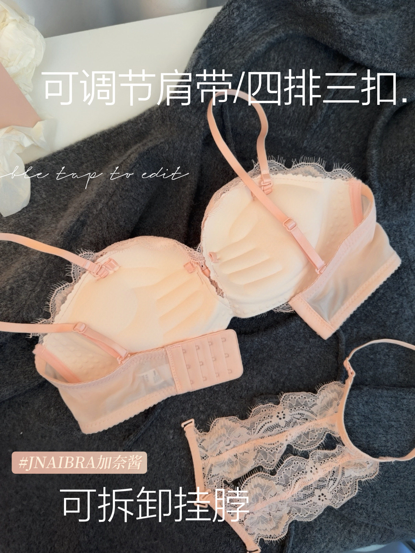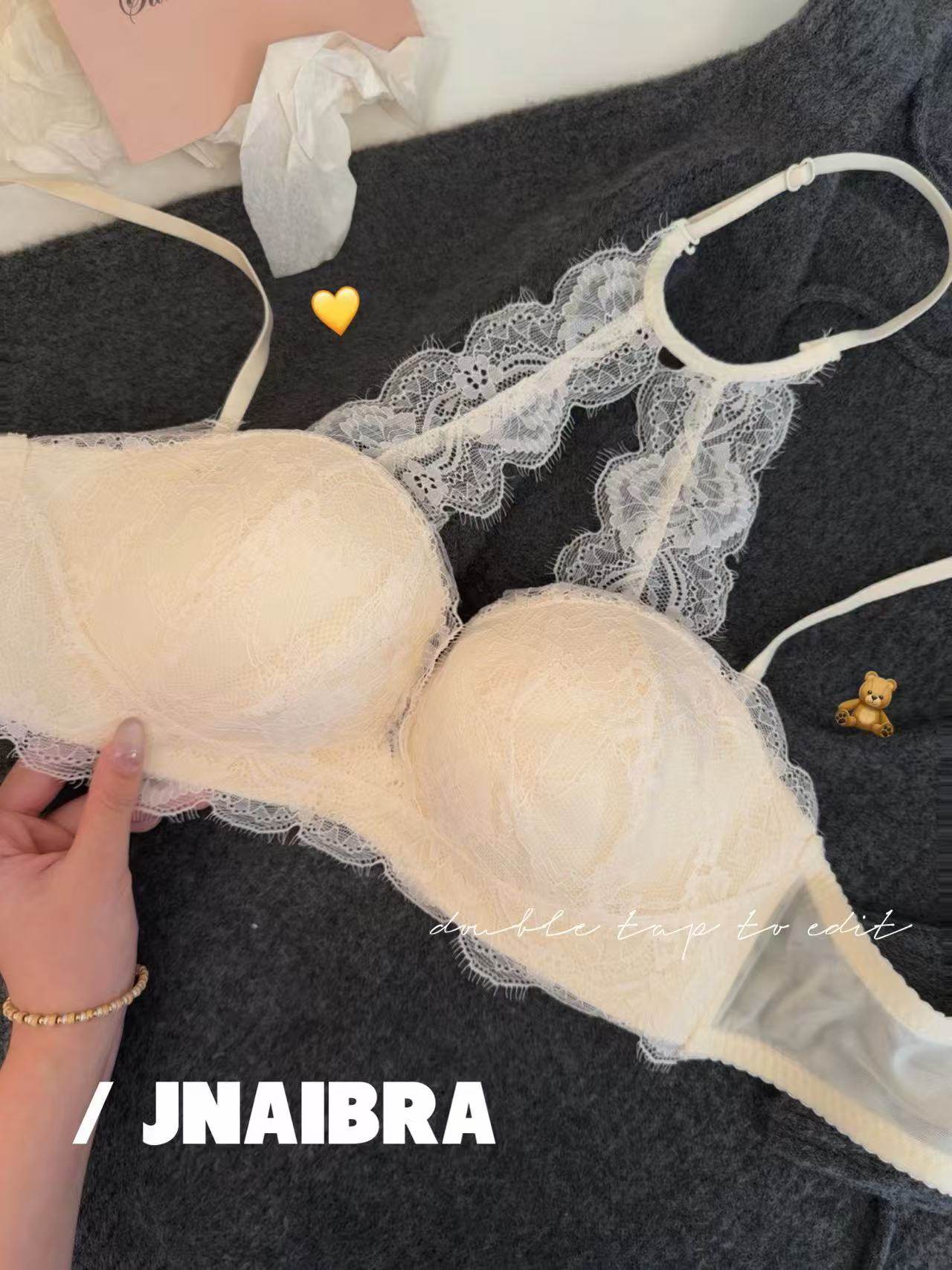 智秀粉!小胸聚攏蕾絲內衣女乳膠杯掛脖曡穿純欲無鋼圈調整型文胸
