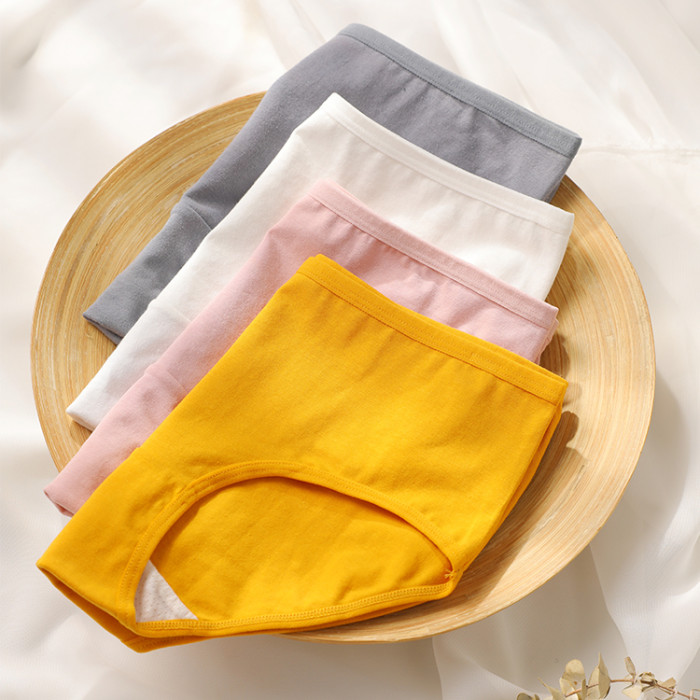 【4條裝】無痕女士內褲 秋冬純棉襠抗菌中腰全棉質大碼少女三角褲