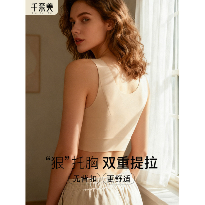 千奈美內衣女美背大胸顯小矯姿挺背內衣女無痕背心式套頭文胸罩