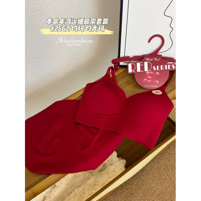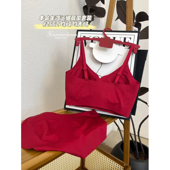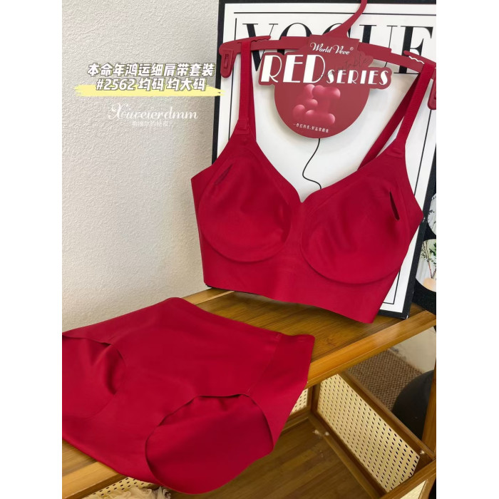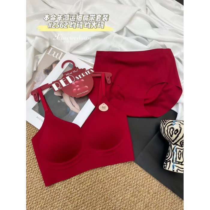惠芝訢本命年紅色無鋼圈文胸內褲套裝一體杯裹胸美背內有舒適抹胸