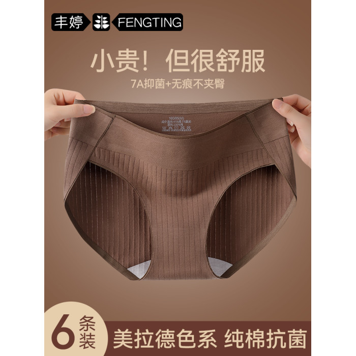 美拉德純棉內褲女士秋冬新款全棉抗菌中腰無痕不夾臀女生三角短褲