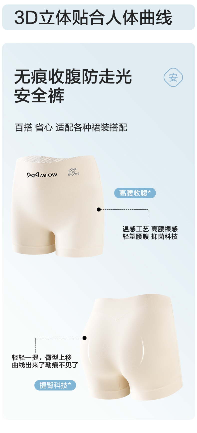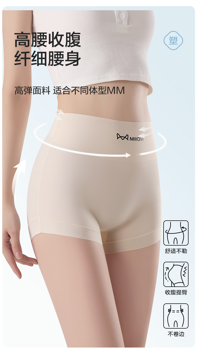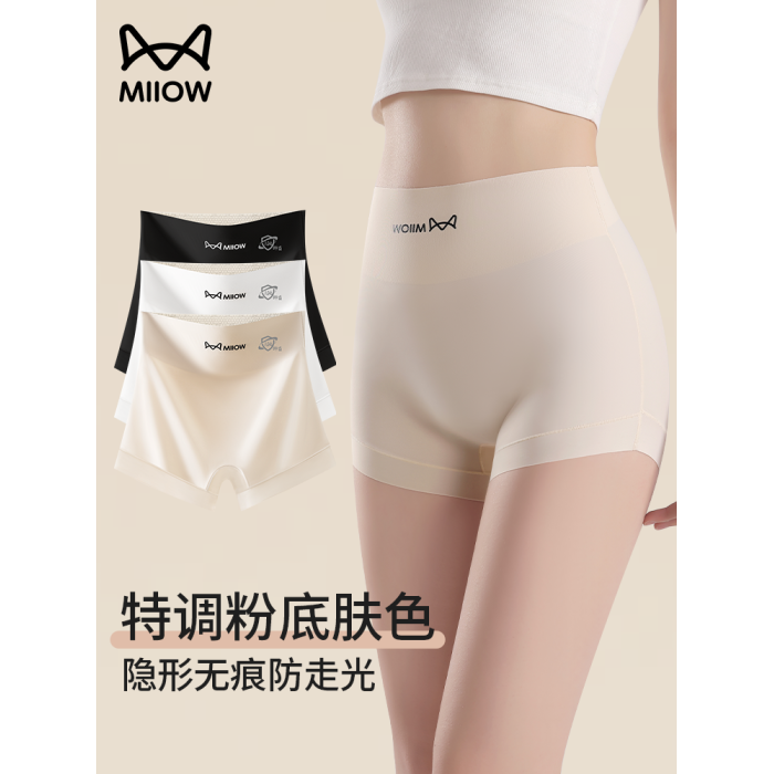 貓人粉底液內褲女無痕收腹提臀防走光安全褲二合一夏季薄款打底褲
