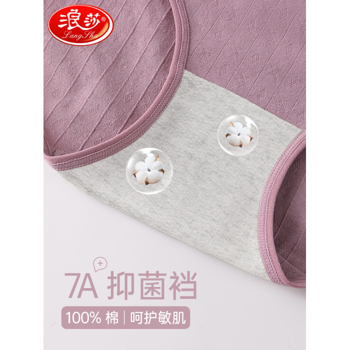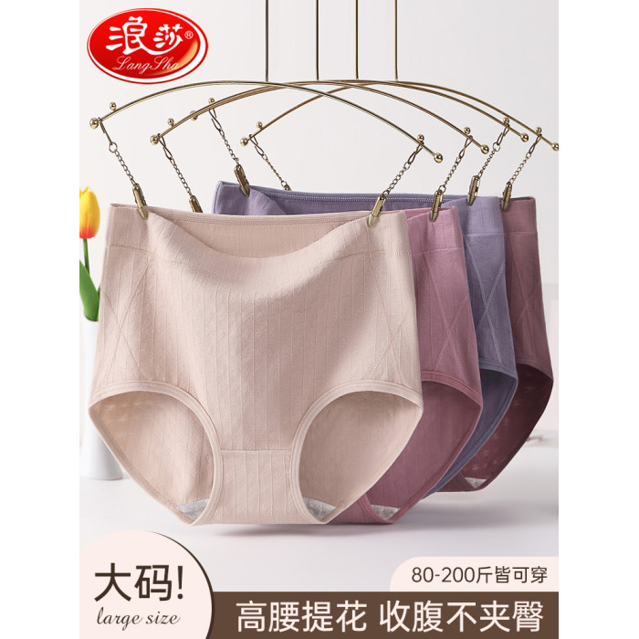 浪莎女士內褲胖媽媽純棉抗菌全棉襠中老年加肥加大三角褲高腰透氣
