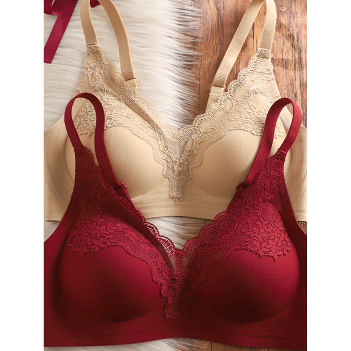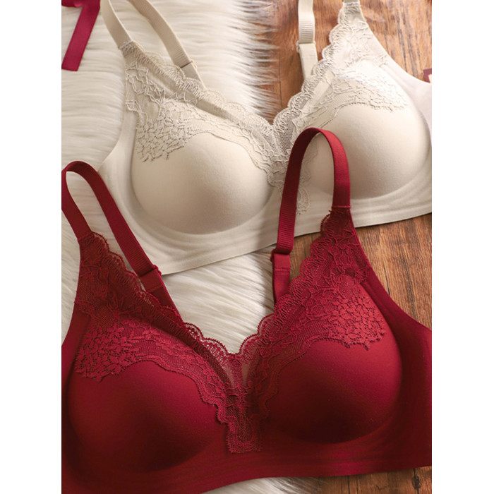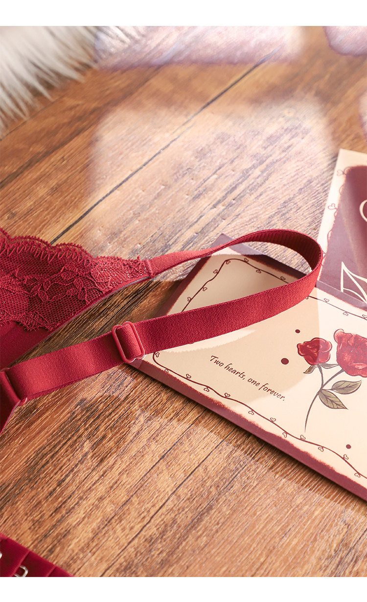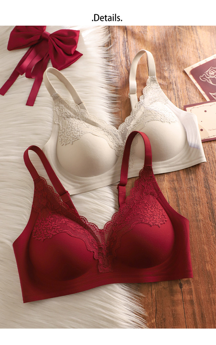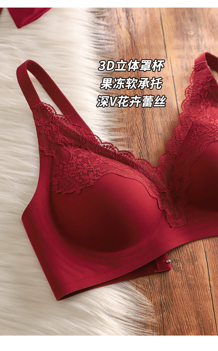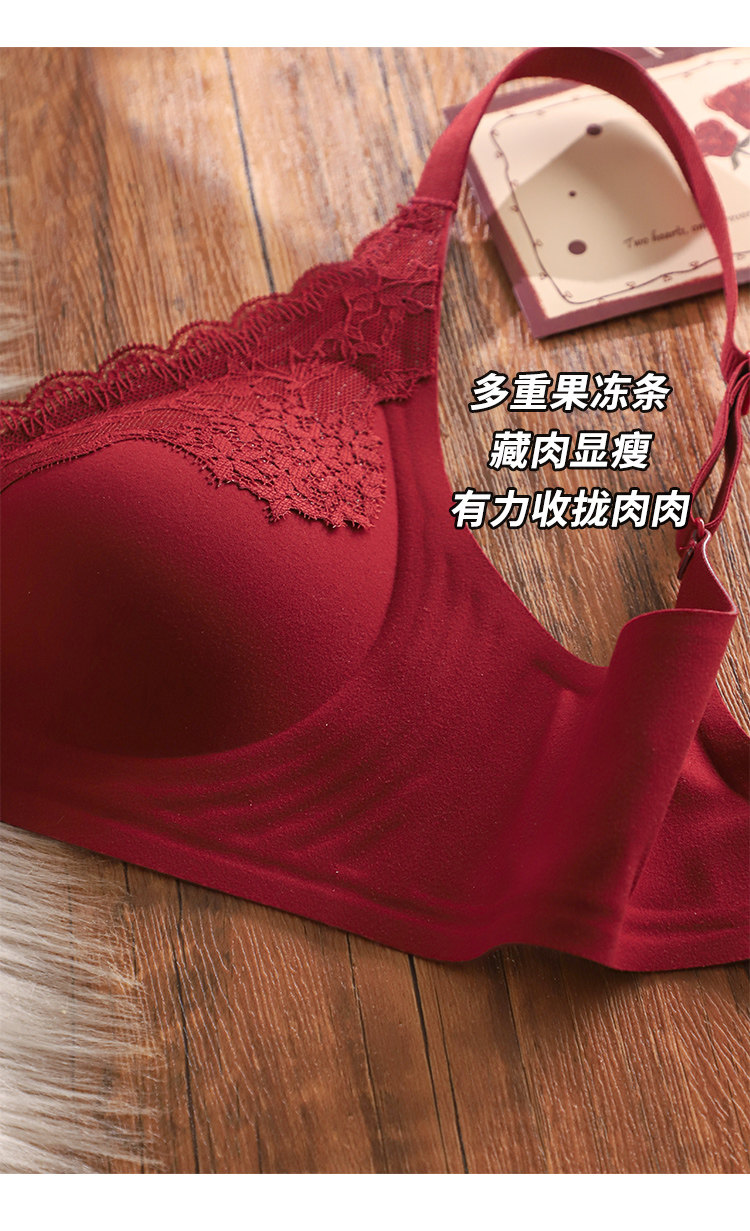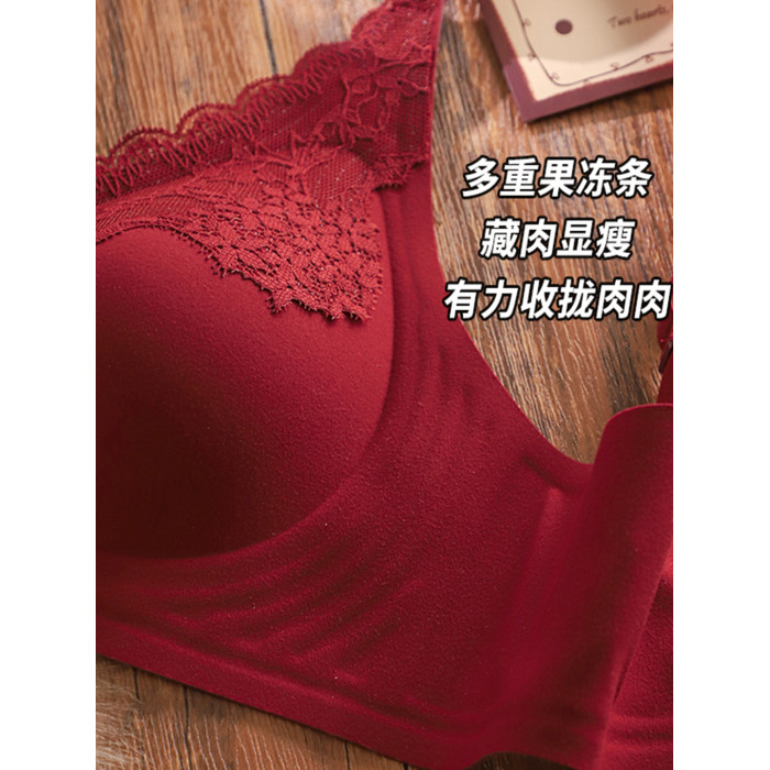 本命年幸運紅色內衣女小胸聚攏無痕無鋼圈收副乳防下垂蕾絲文胸罩