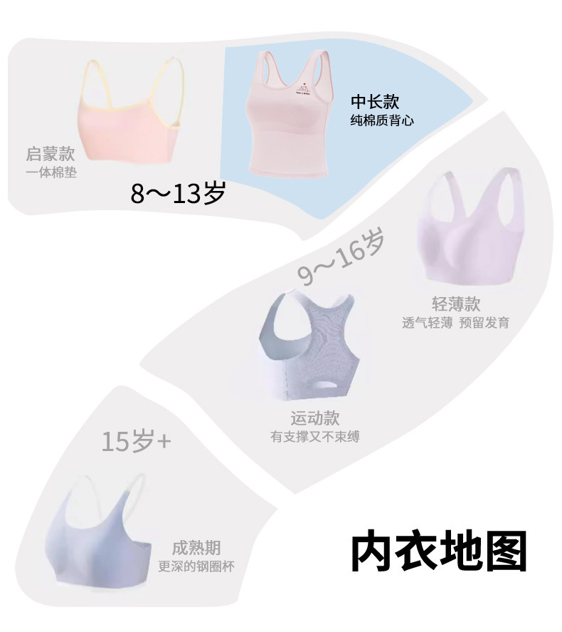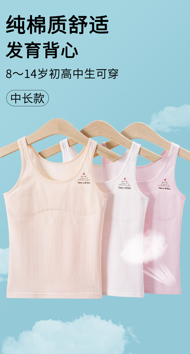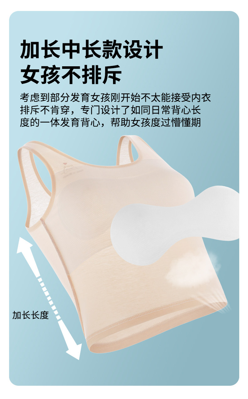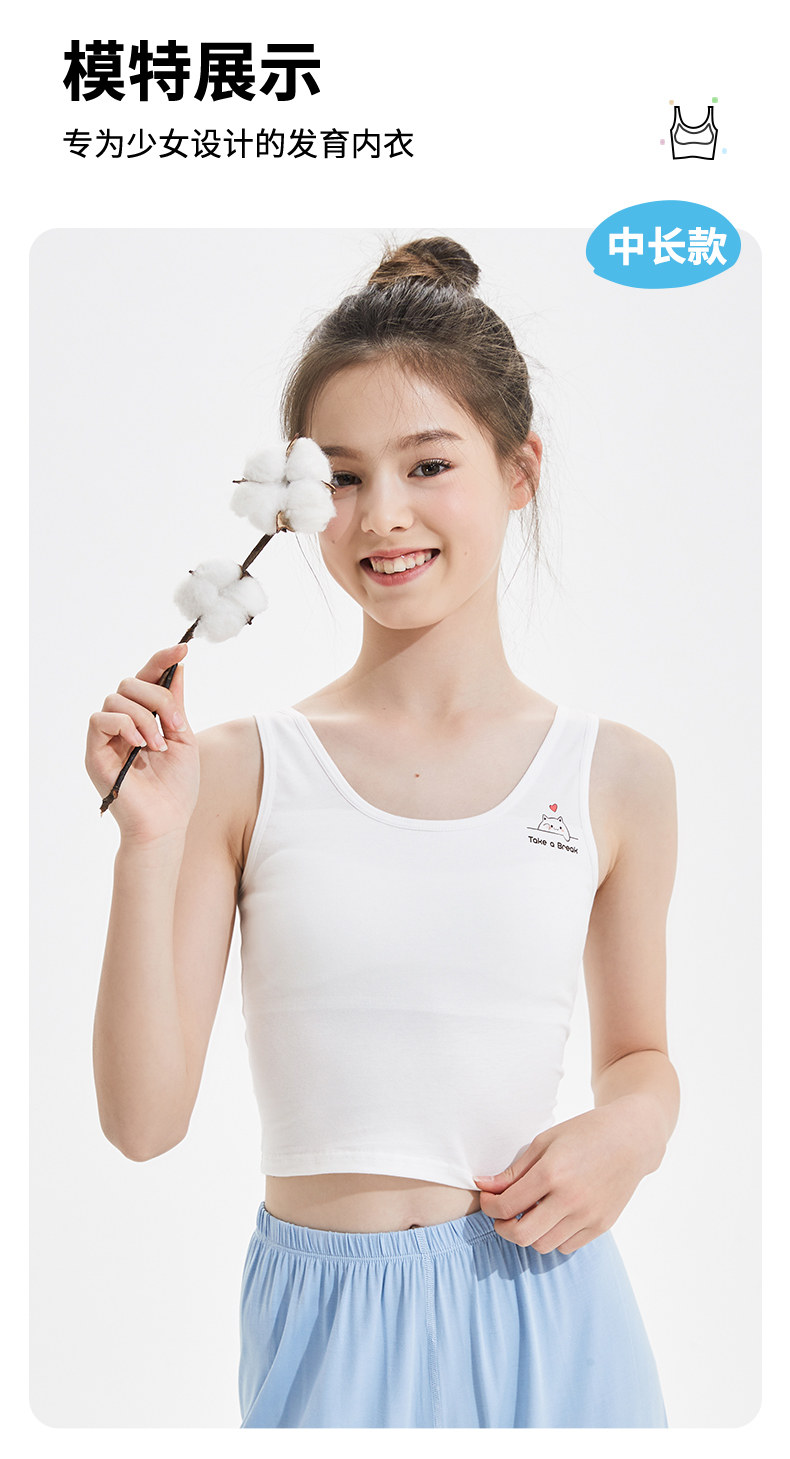 發育期女童內衣小學生12嵗一階段防凸點純棉長款少女孩運動小背心