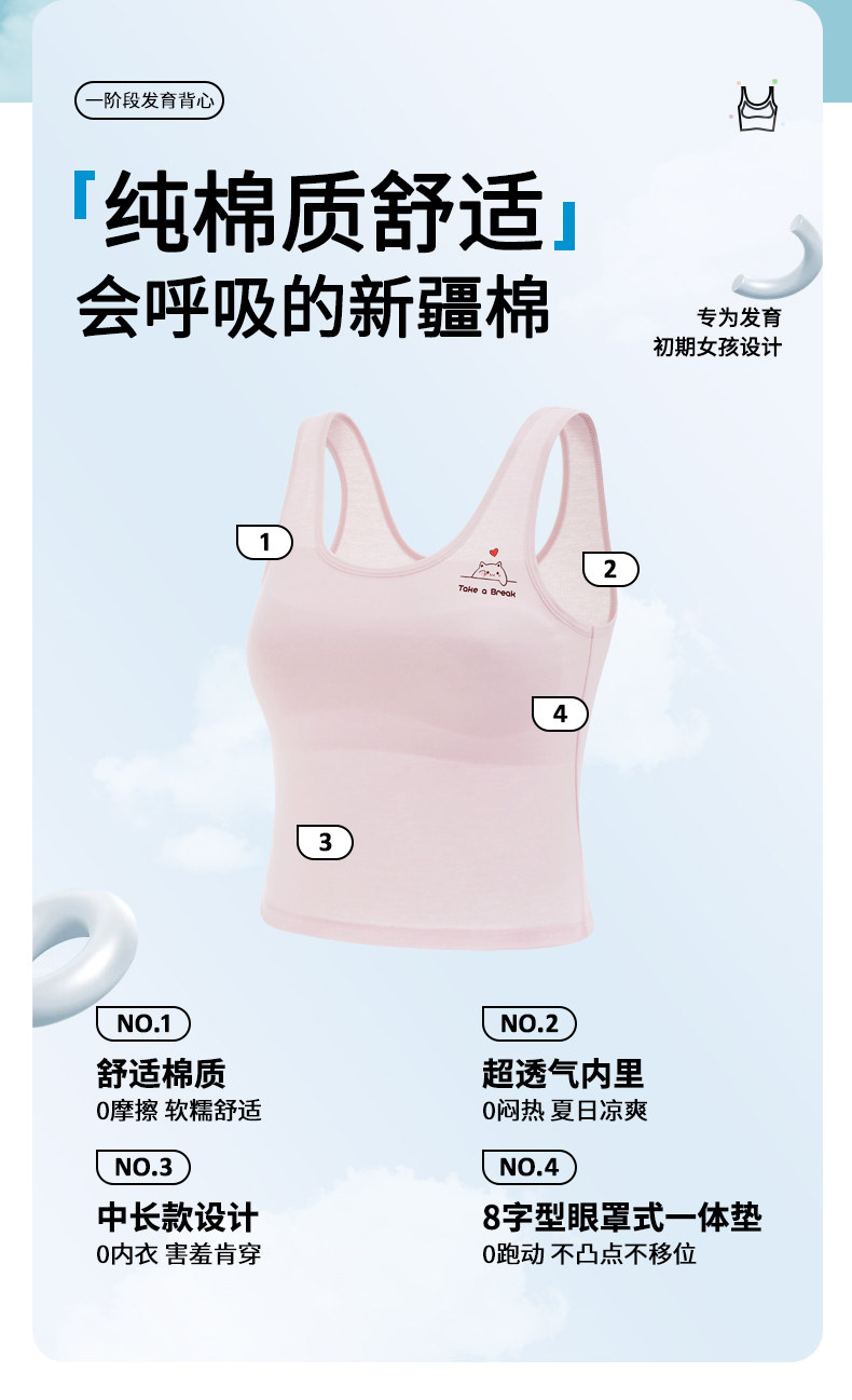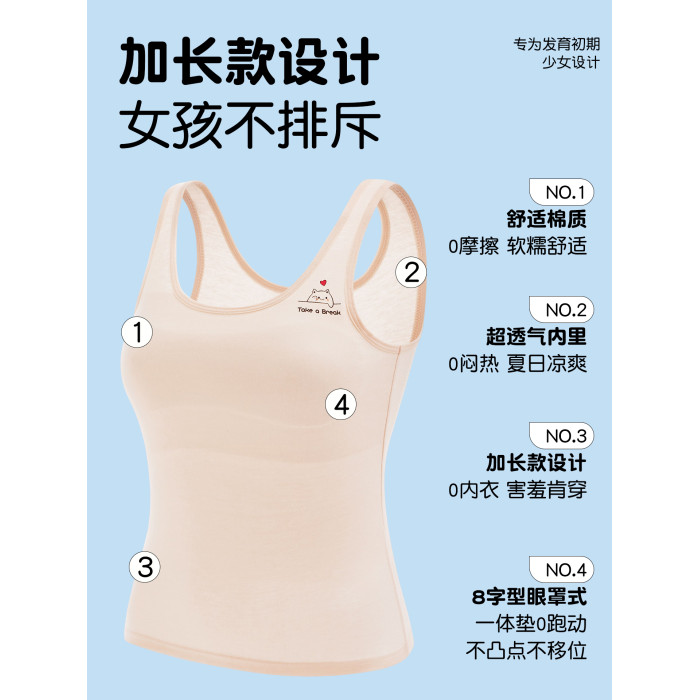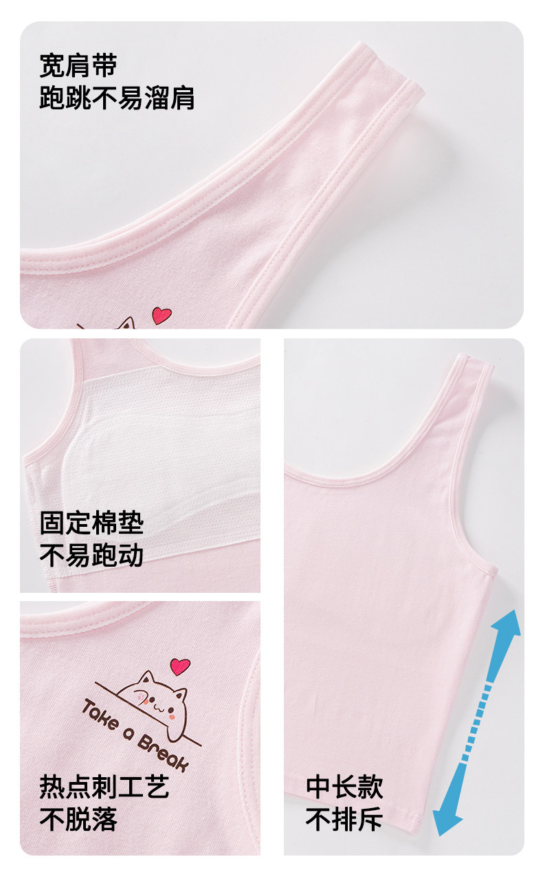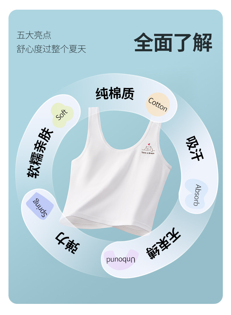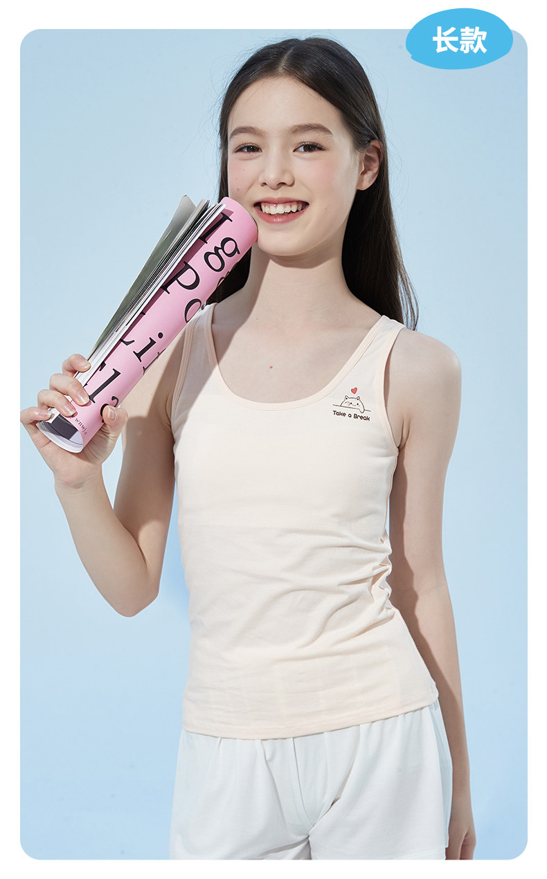 發育期女童內衣小學生12嵗一階段防凸點純棉長款少女孩運動小背心