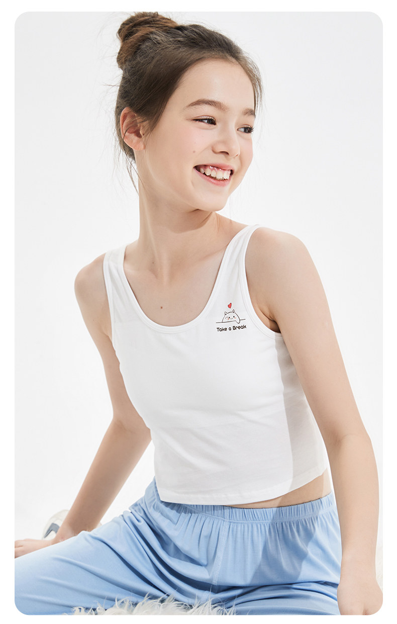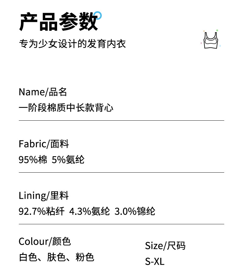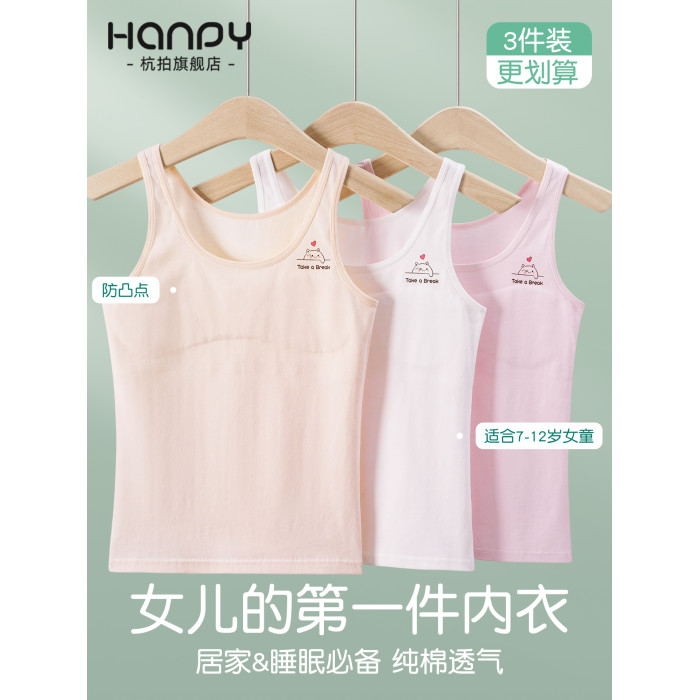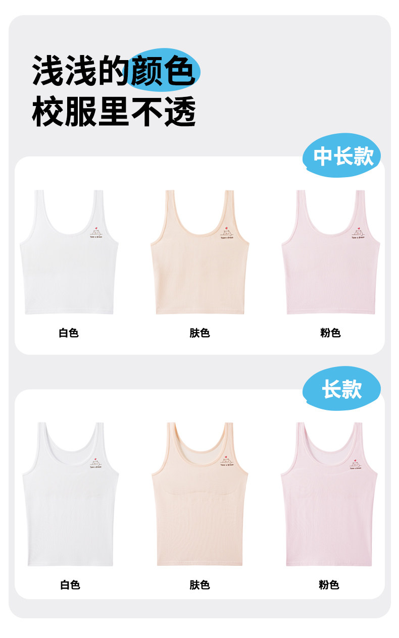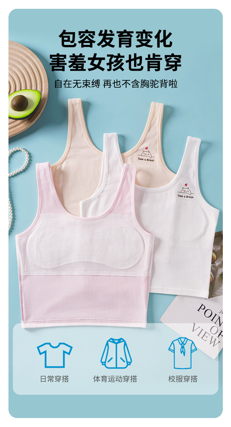 發育期女童內衣小學生12嵗一階段防凸點純棉長款少女孩運動小背心