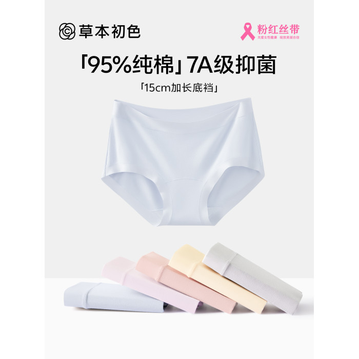 草本初色純棉內褲女7A抑菌加長襠中腰透氣舒適不夾臀三角2025新款