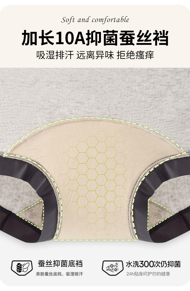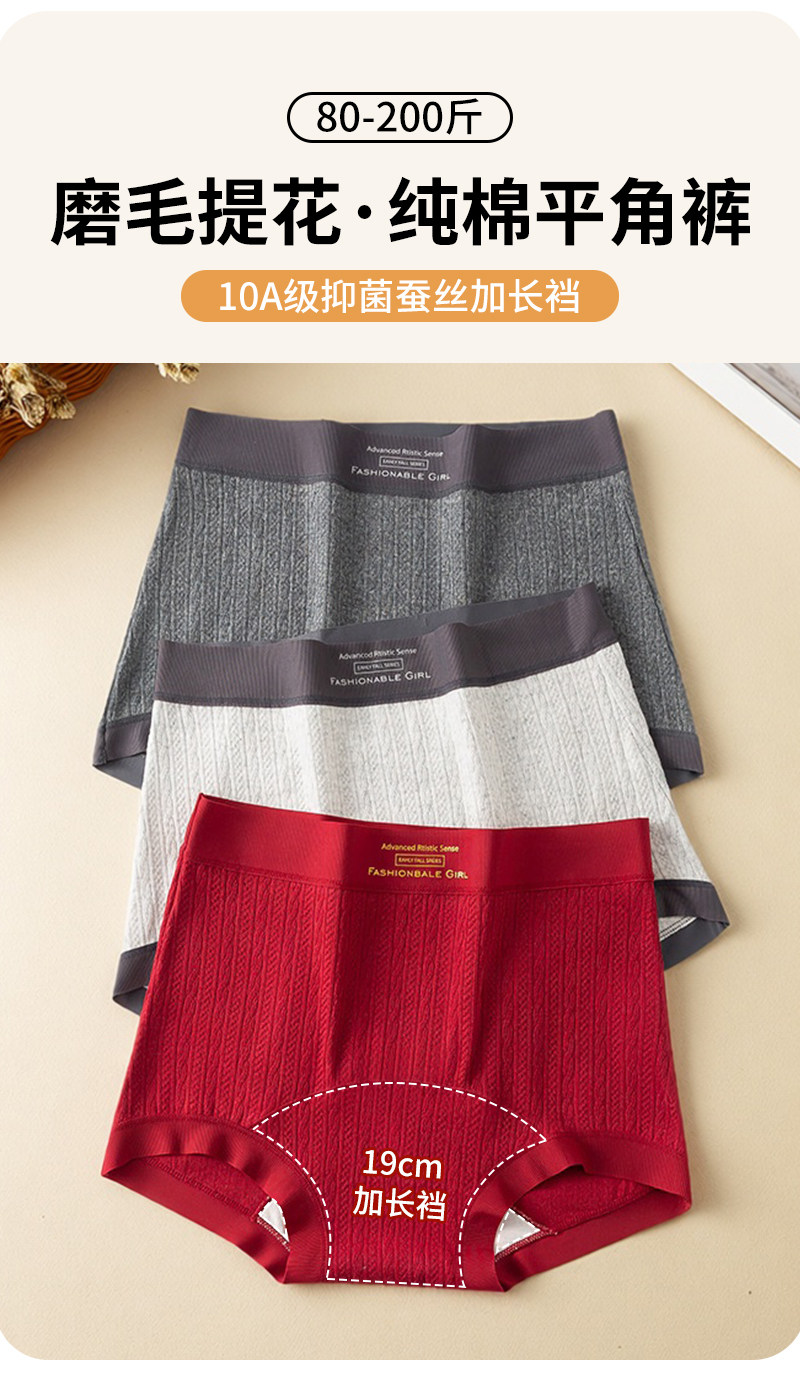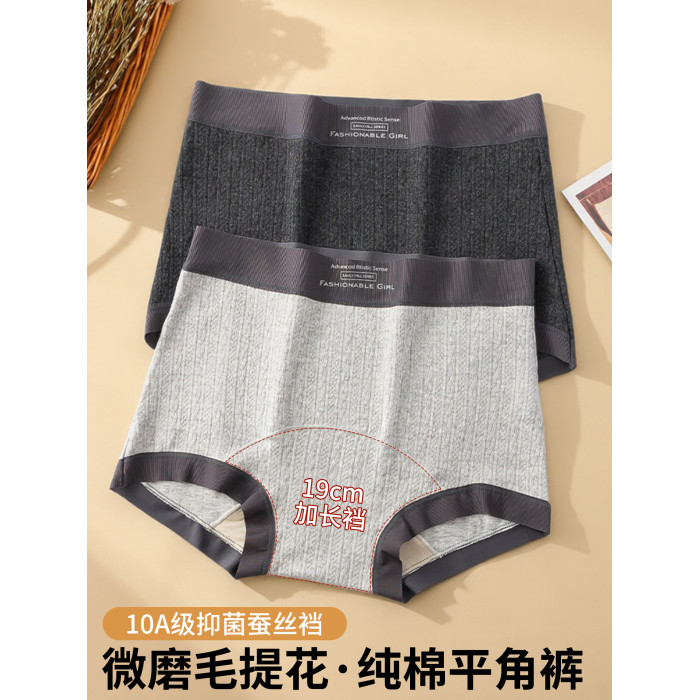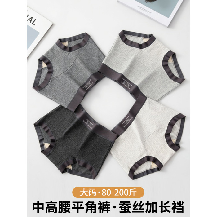 大碼純棉內褲女高腰平角褲女士桑蠶絲10A抗菌加長襠舒適寬鬆不勒