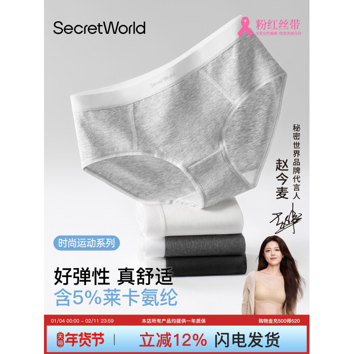 sw運動純棉內褲2026新款女生抗菌中腰三角褲不夾臀新疆棉A類短褲