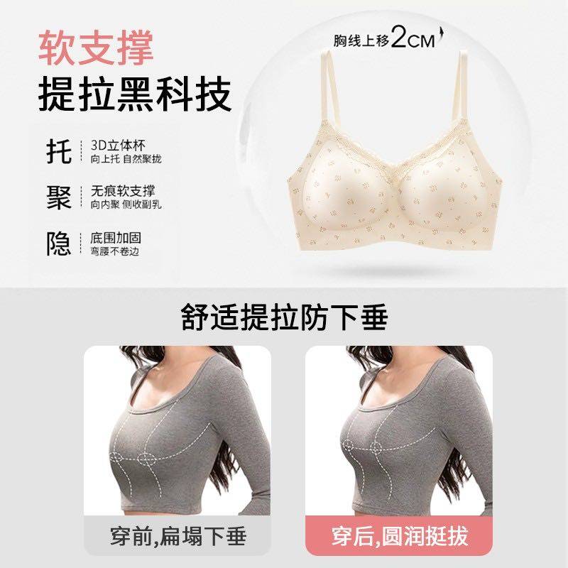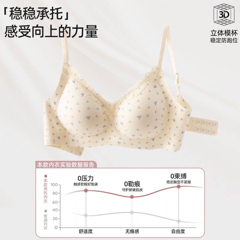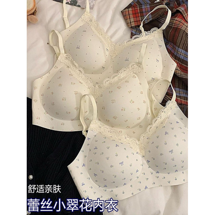 碎花蕾絲內衣女學生高中生有排釦小胸聚攏防下垂無鋼圈少女文胸罩