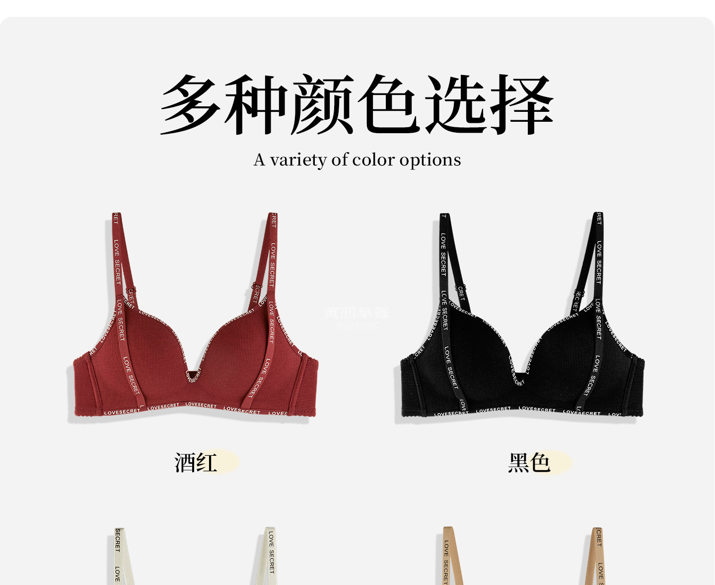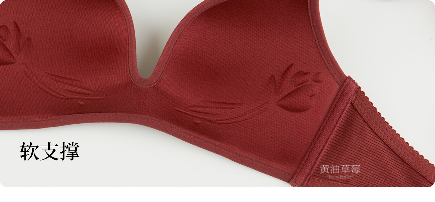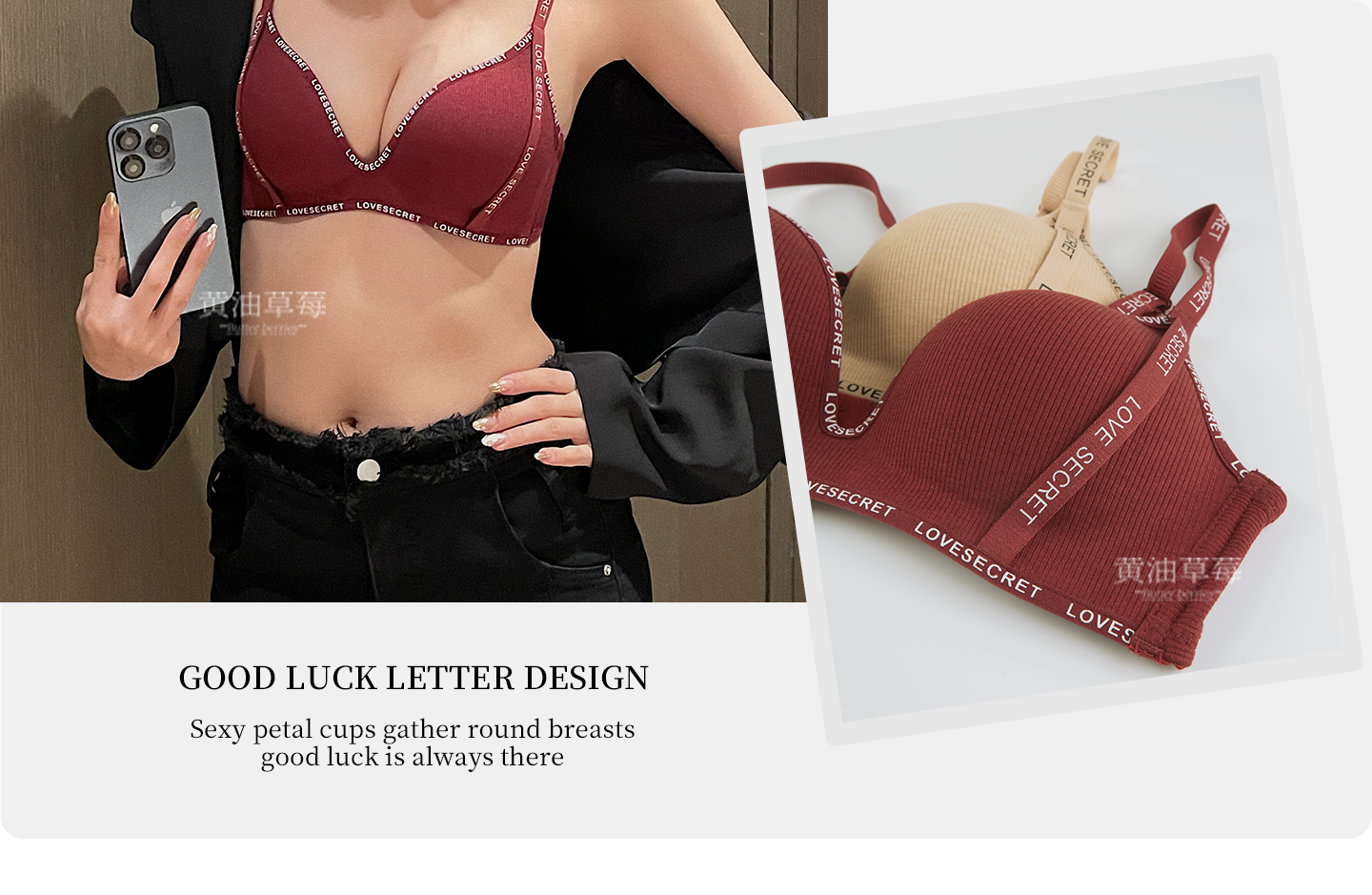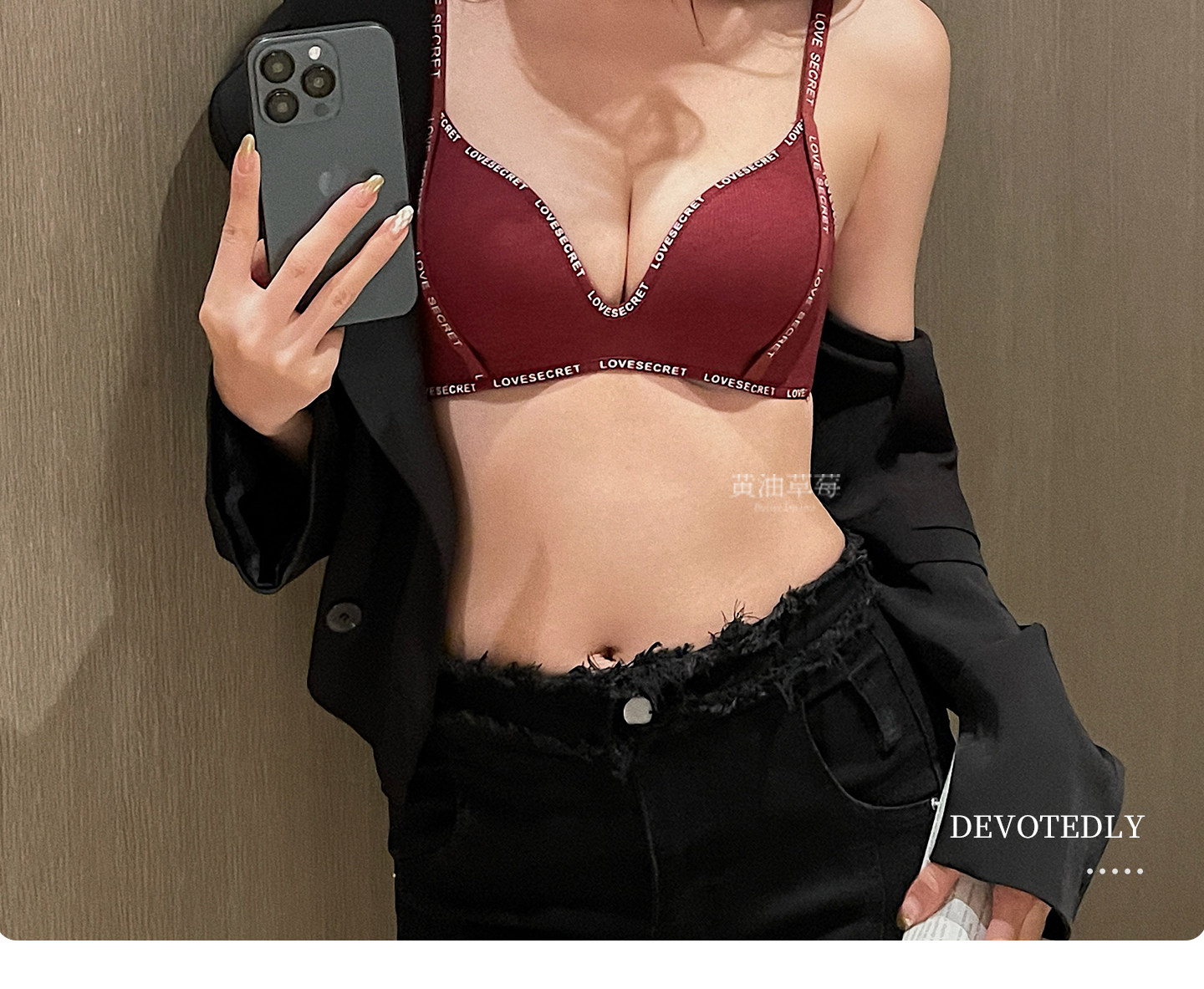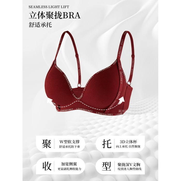 黃油草莓紅色本命年內衣女小胸聚攏無鋼圈軟支撐上托字母肩帶文胸