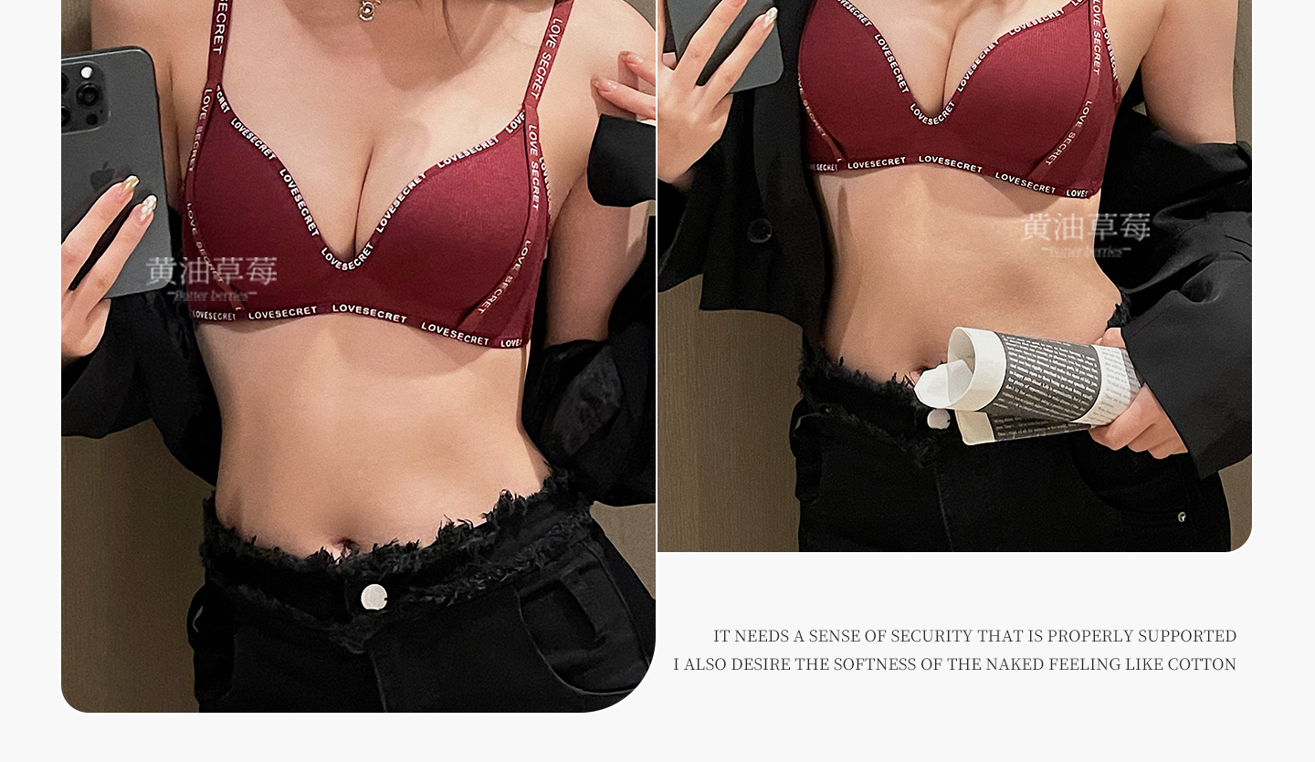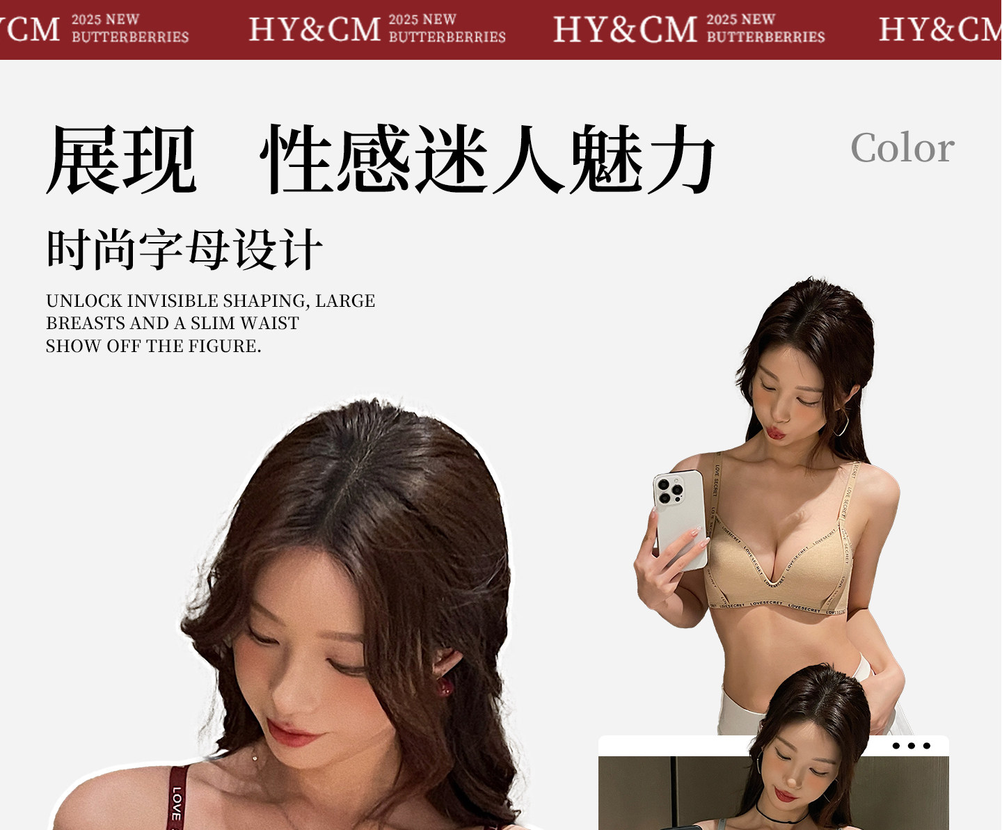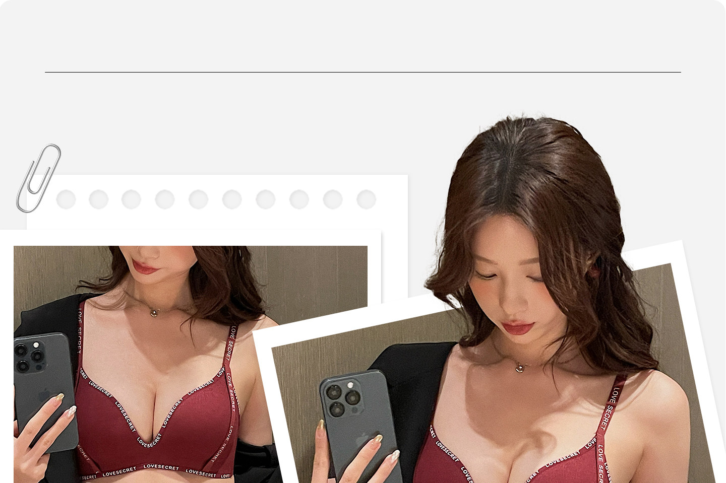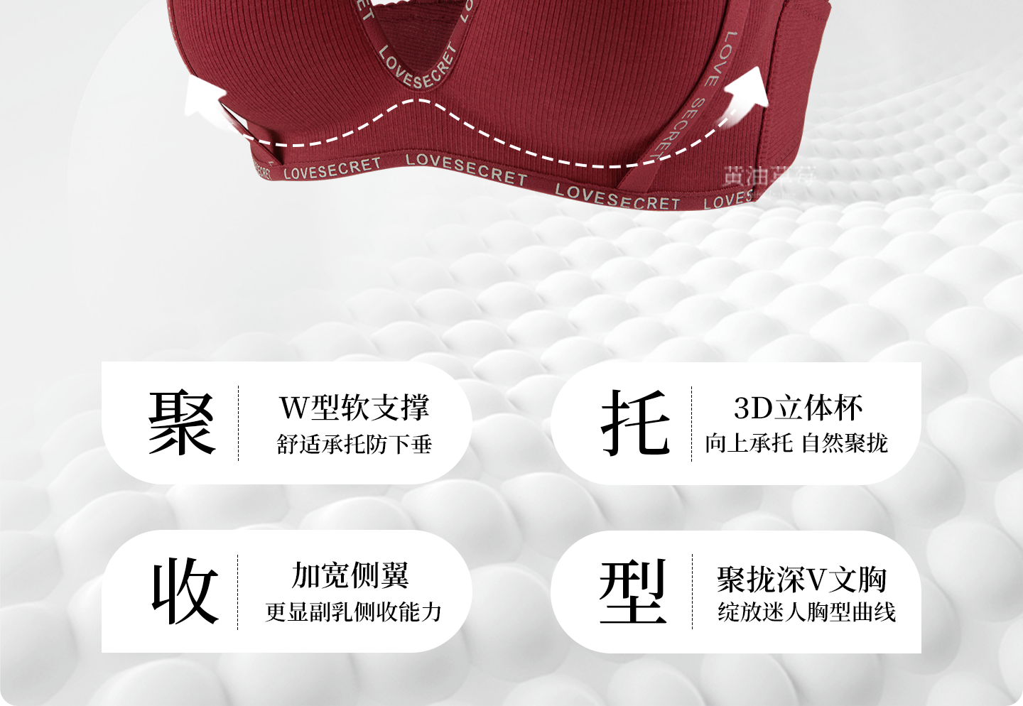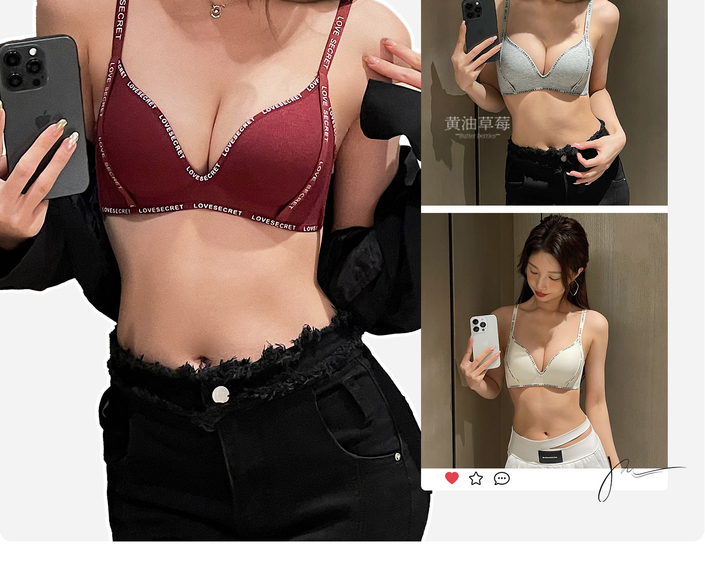 黃油草莓紅色本命年內衣女小胸聚攏無鋼圈軟支撐上托字母肩帶文胸