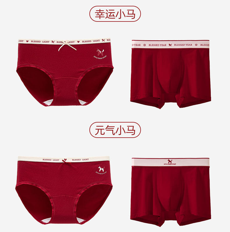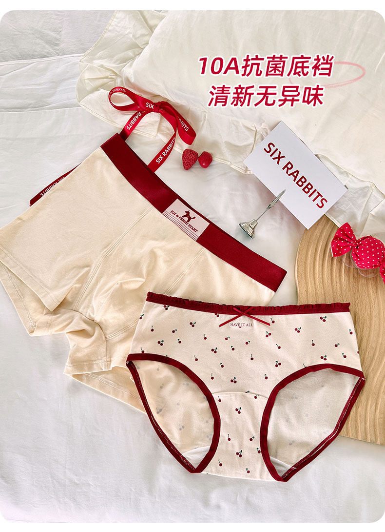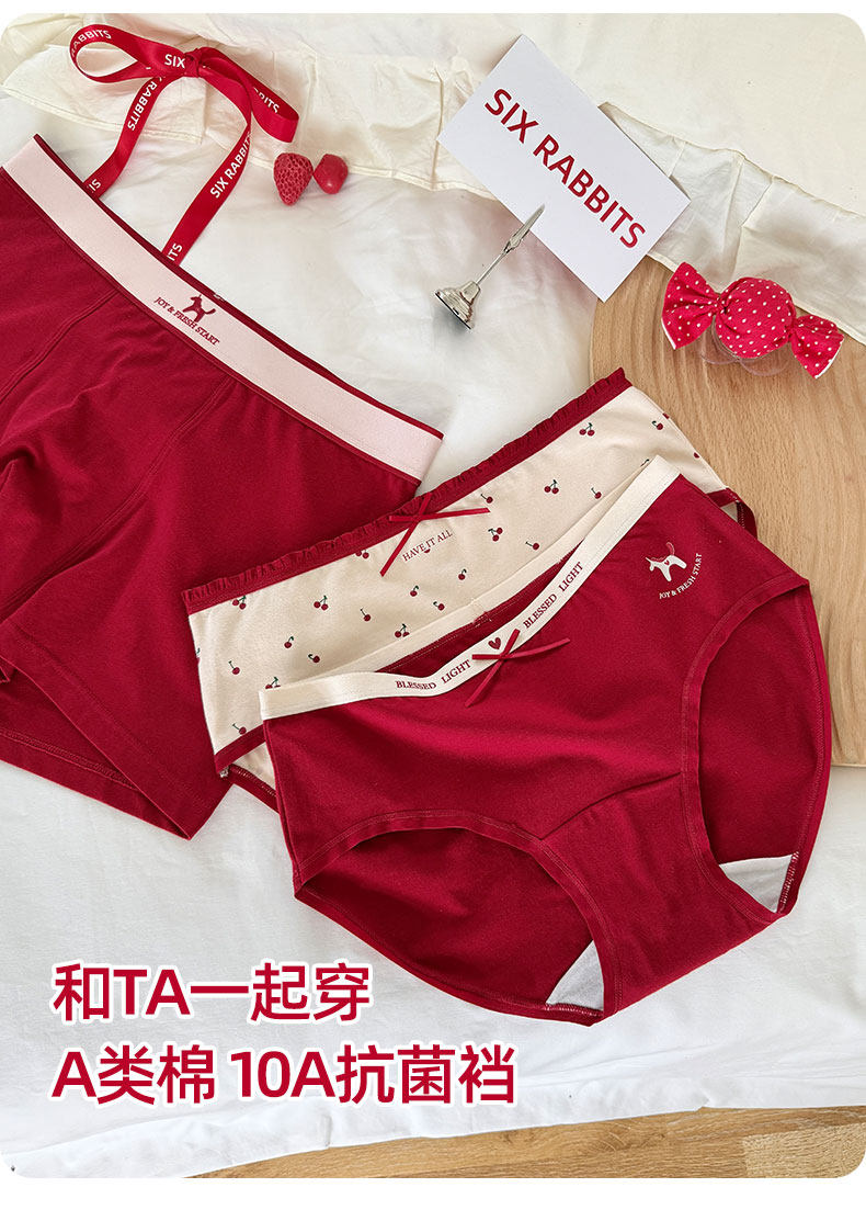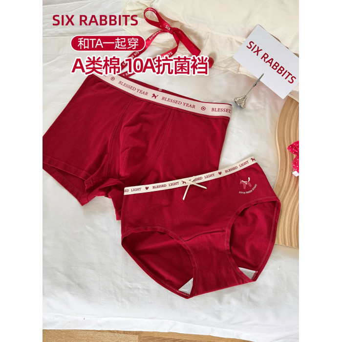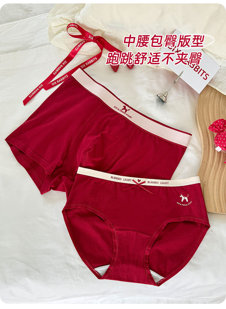 六隻兔子紅色內褲一男一女A類棉10A抑菌底襠中腰本命年情侶內褲