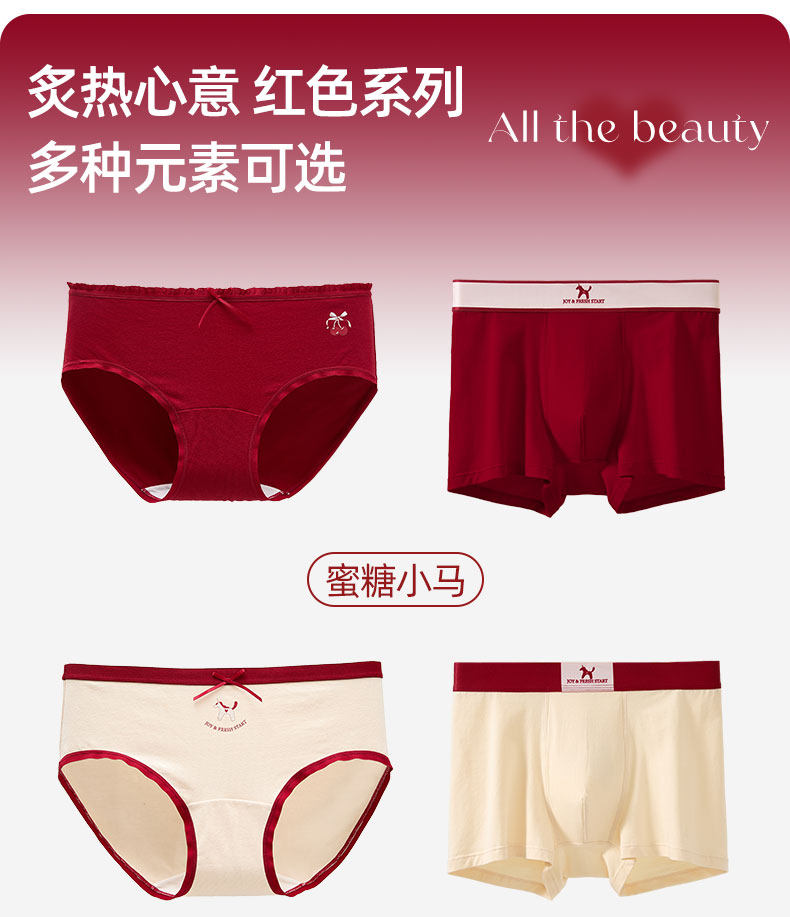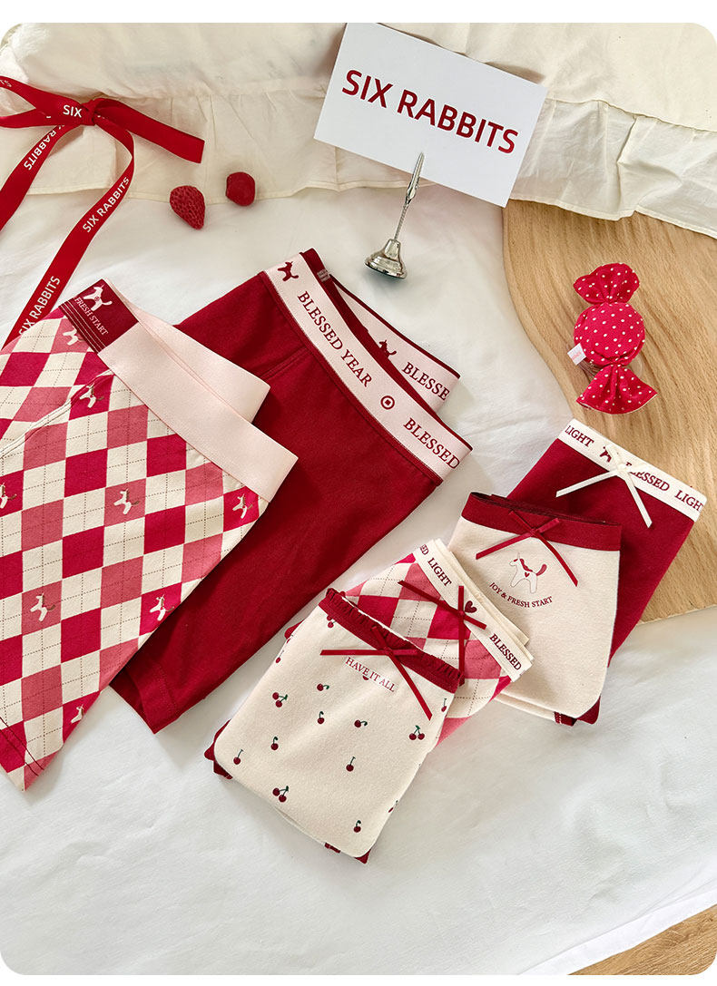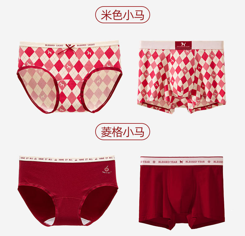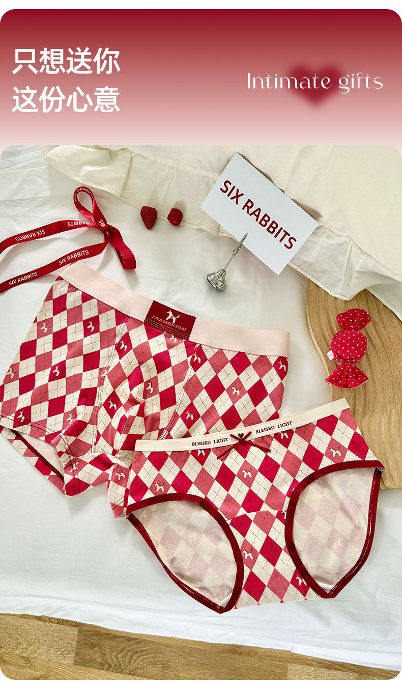 六隻兔子紅色內褲一男一女A類棉10A抑菌底襠中腰本命年情侶內褲