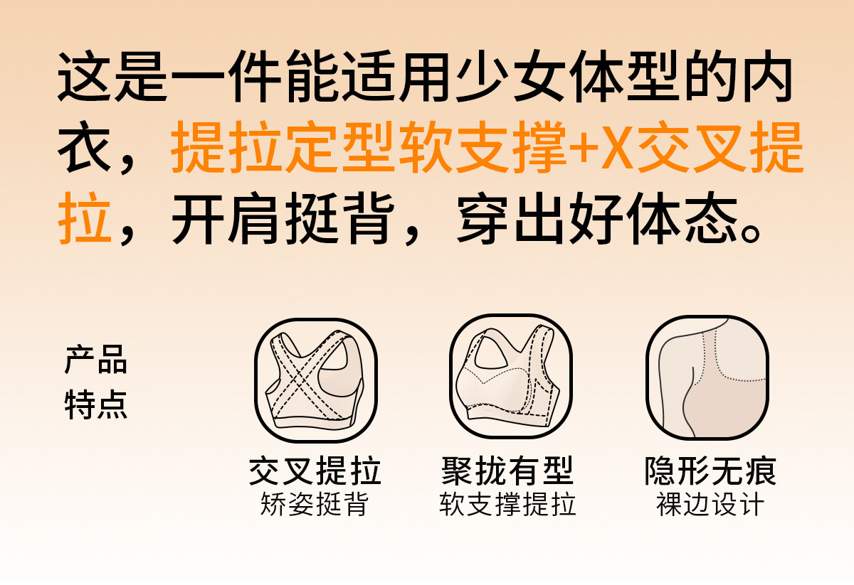 少女內衣二三階段發育期初高中學生軟支撐提拉聚攏防下垂運動美背