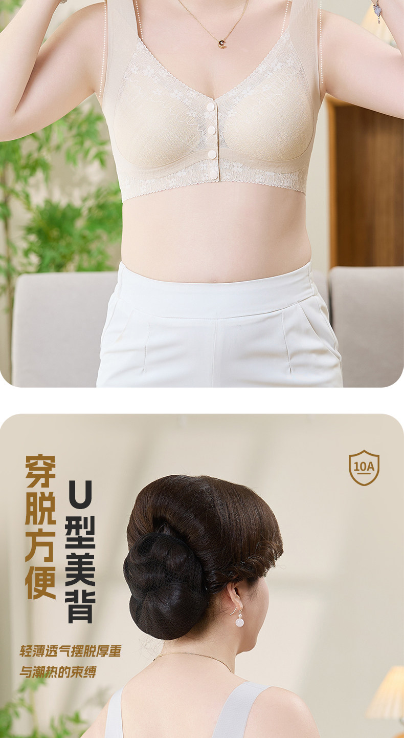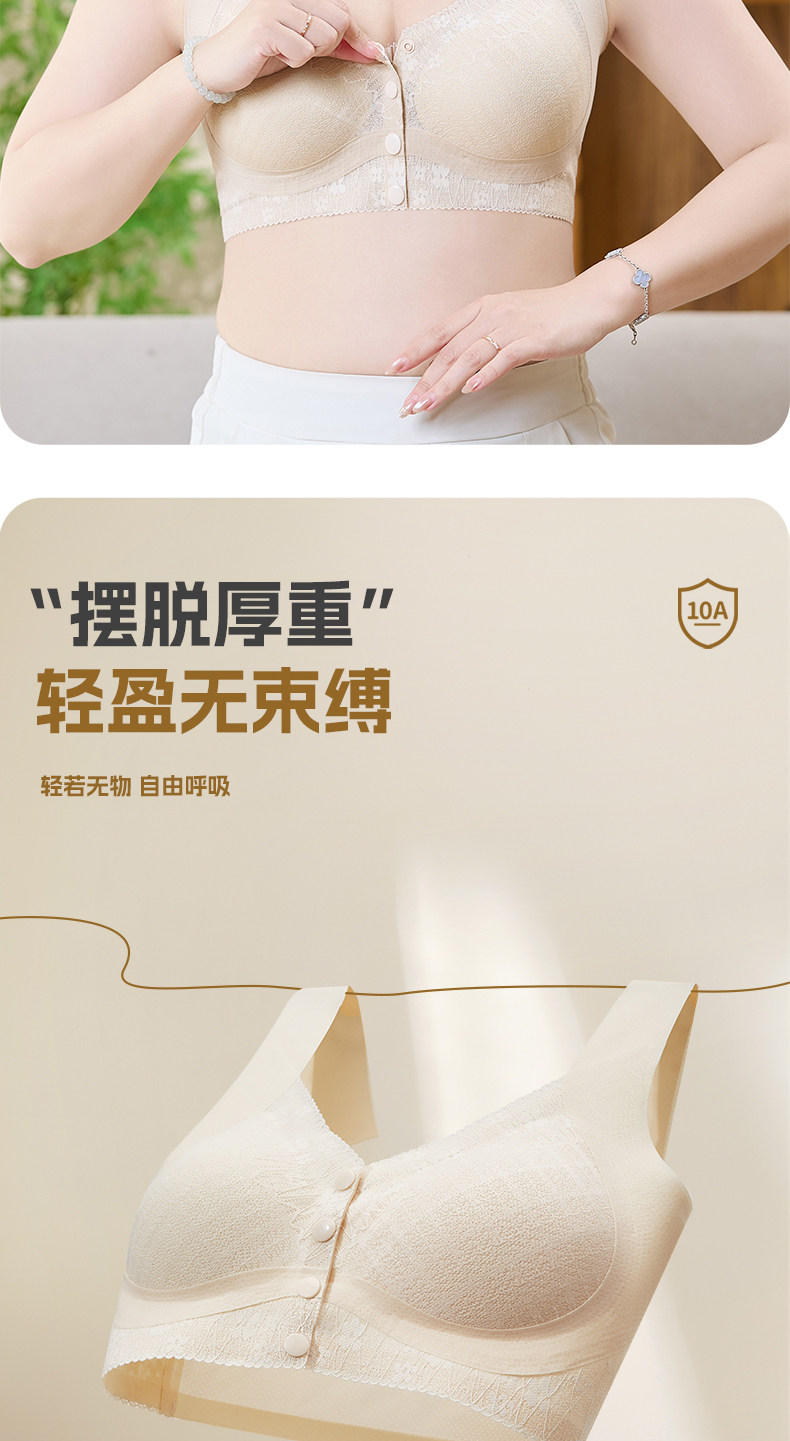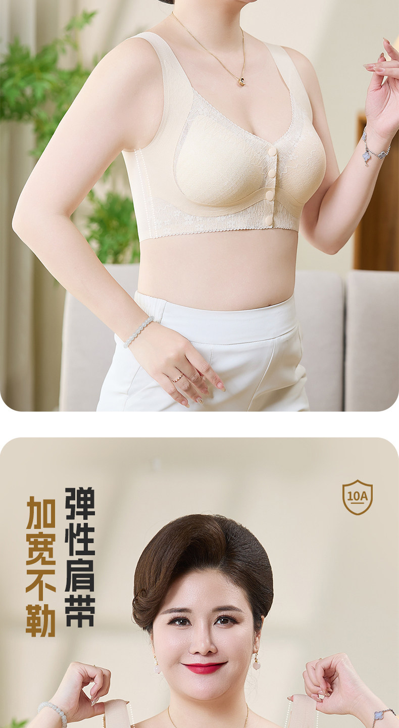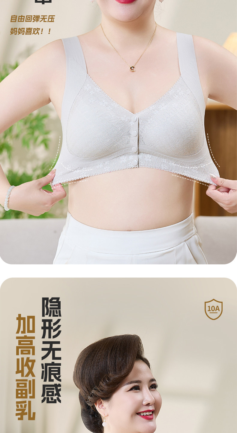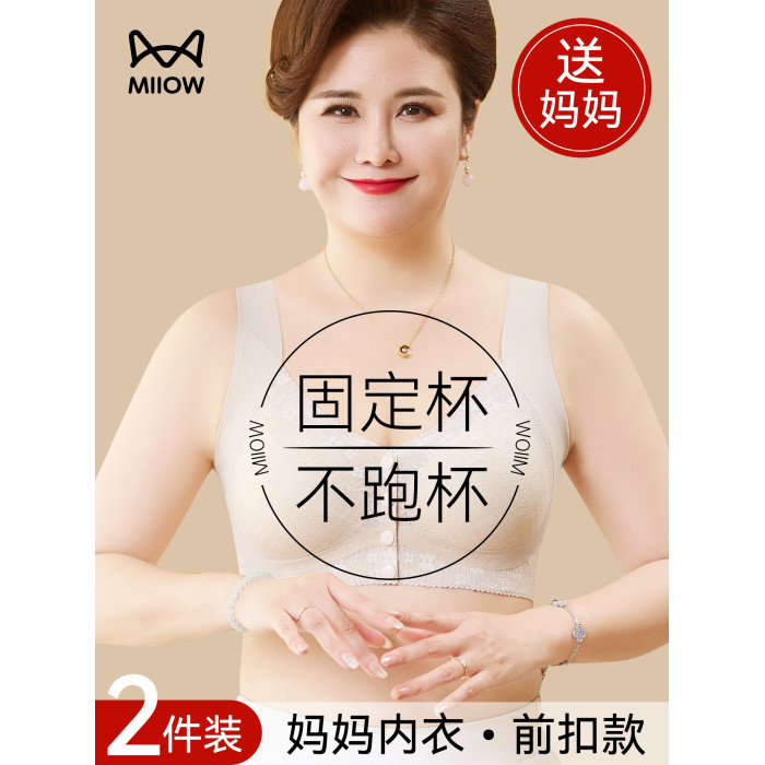 貓人媽媽內衣文胸中老年專用前開釦式收副乳防下垂大碼無鋼圈胸罩