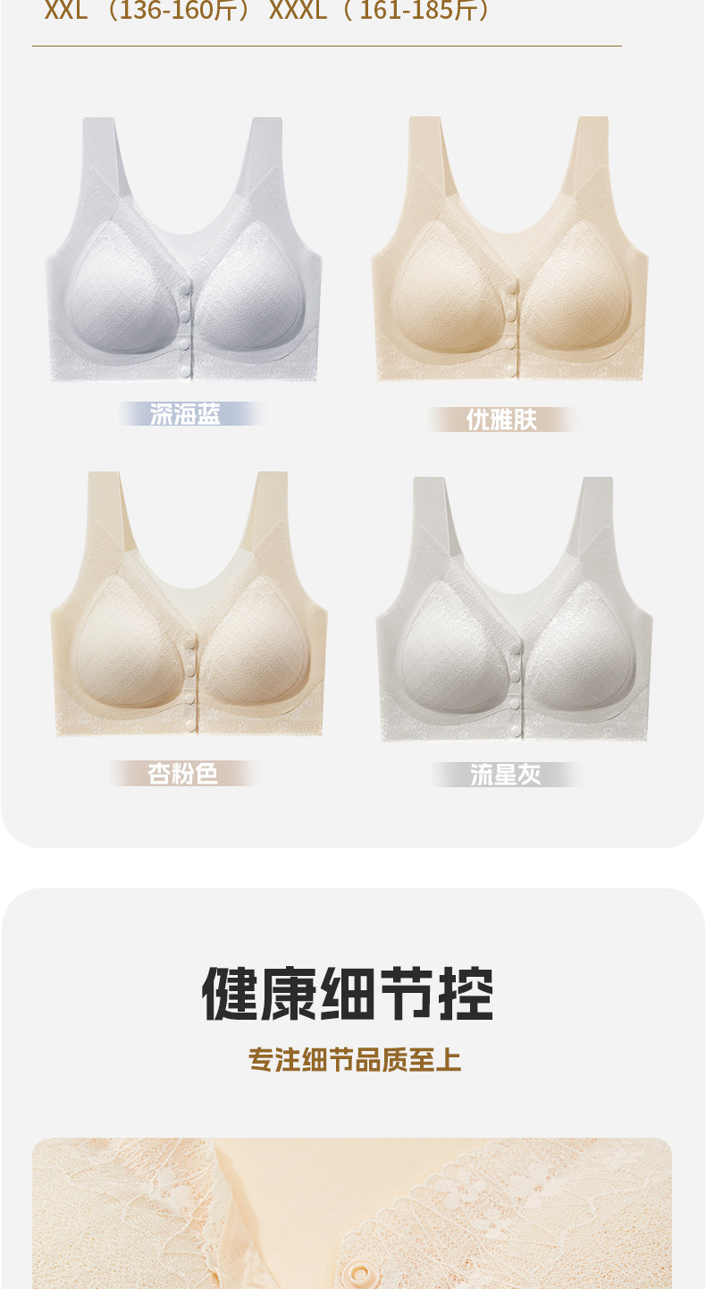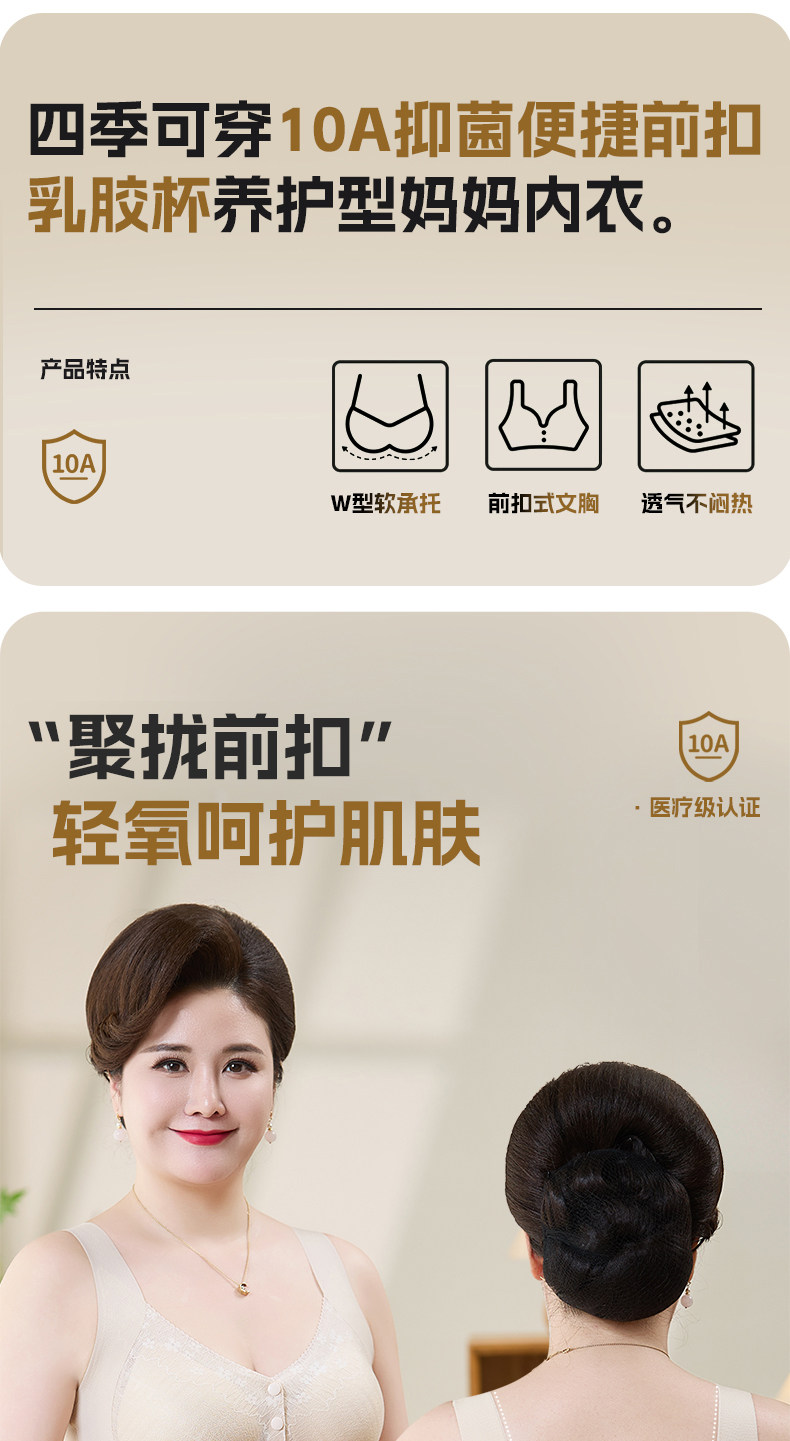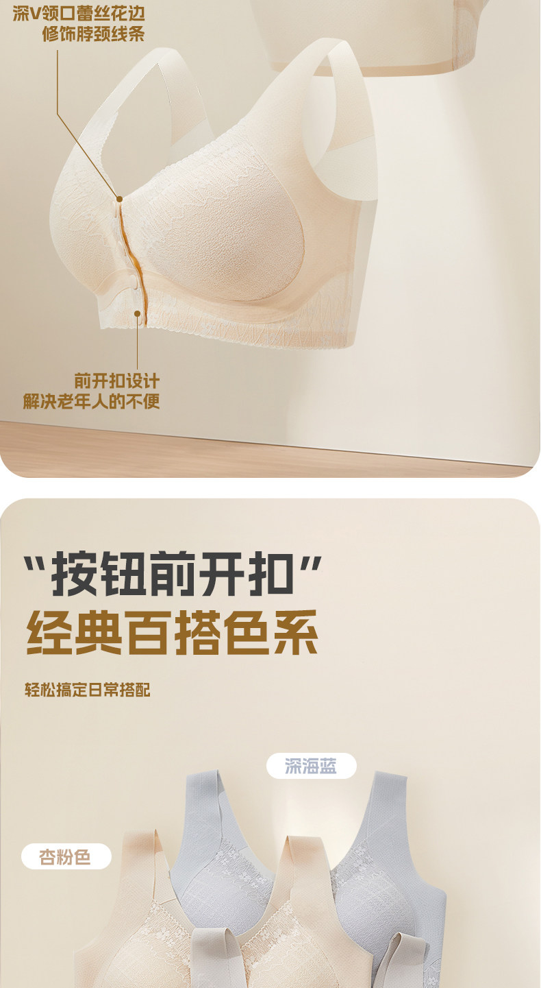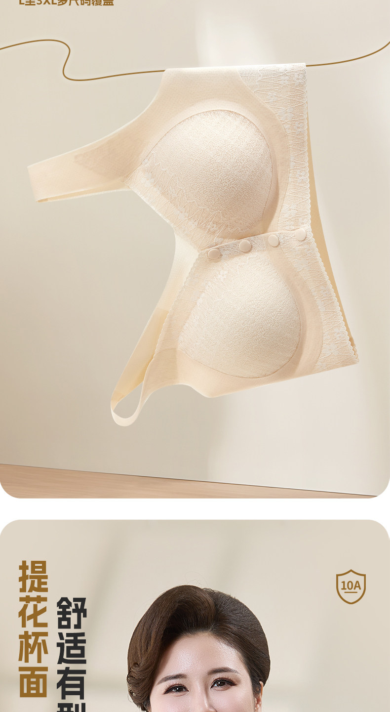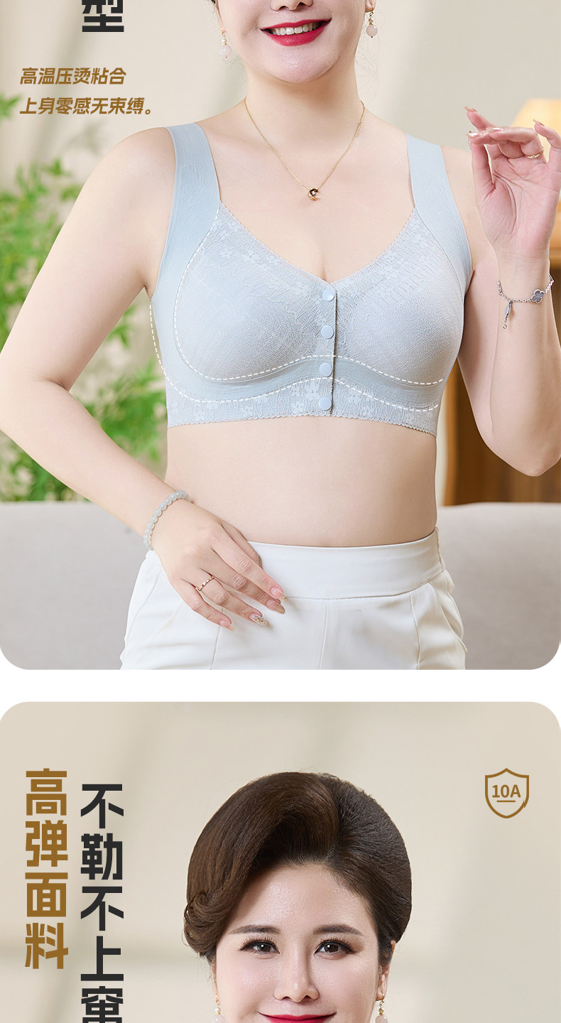 貓人媽媽內衣文胸中老年專用前開釦式收副乳防下垂大碼無鋼圈胸罩