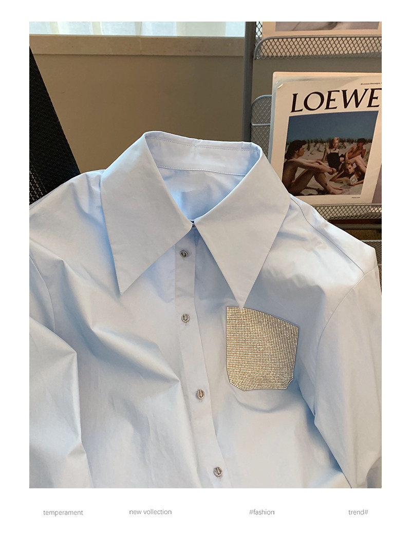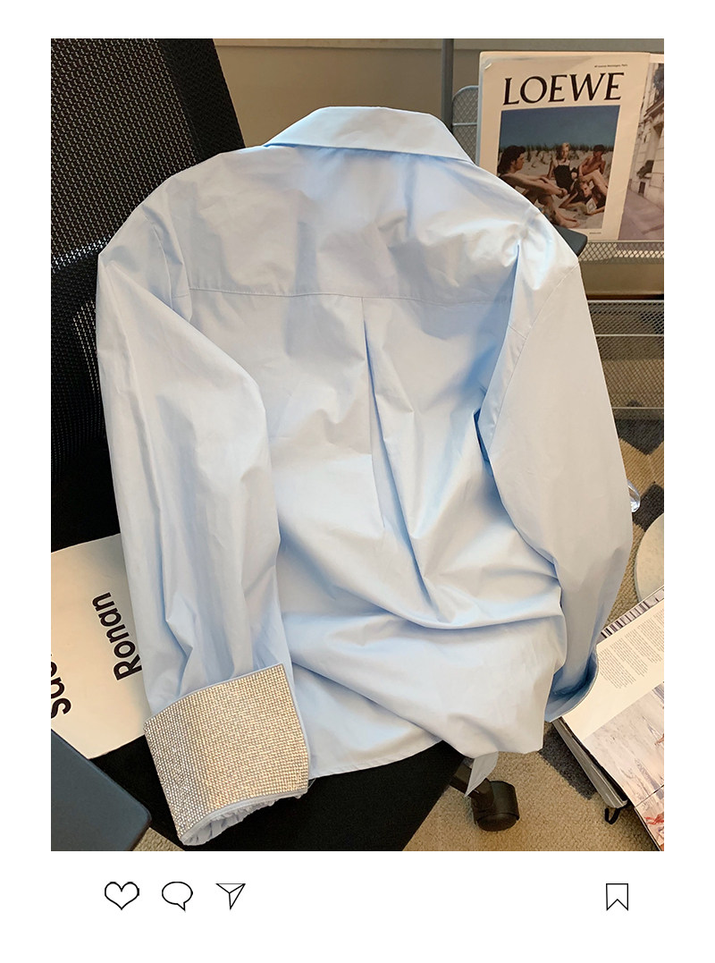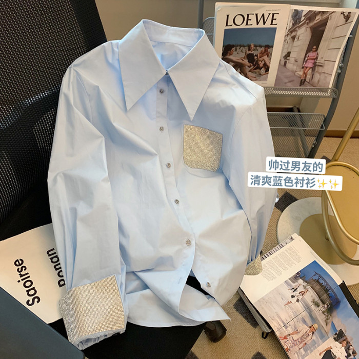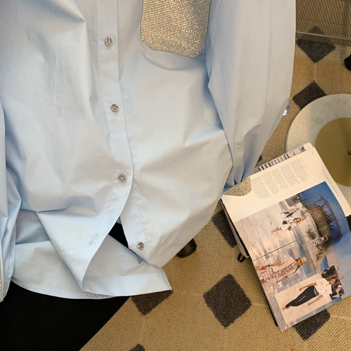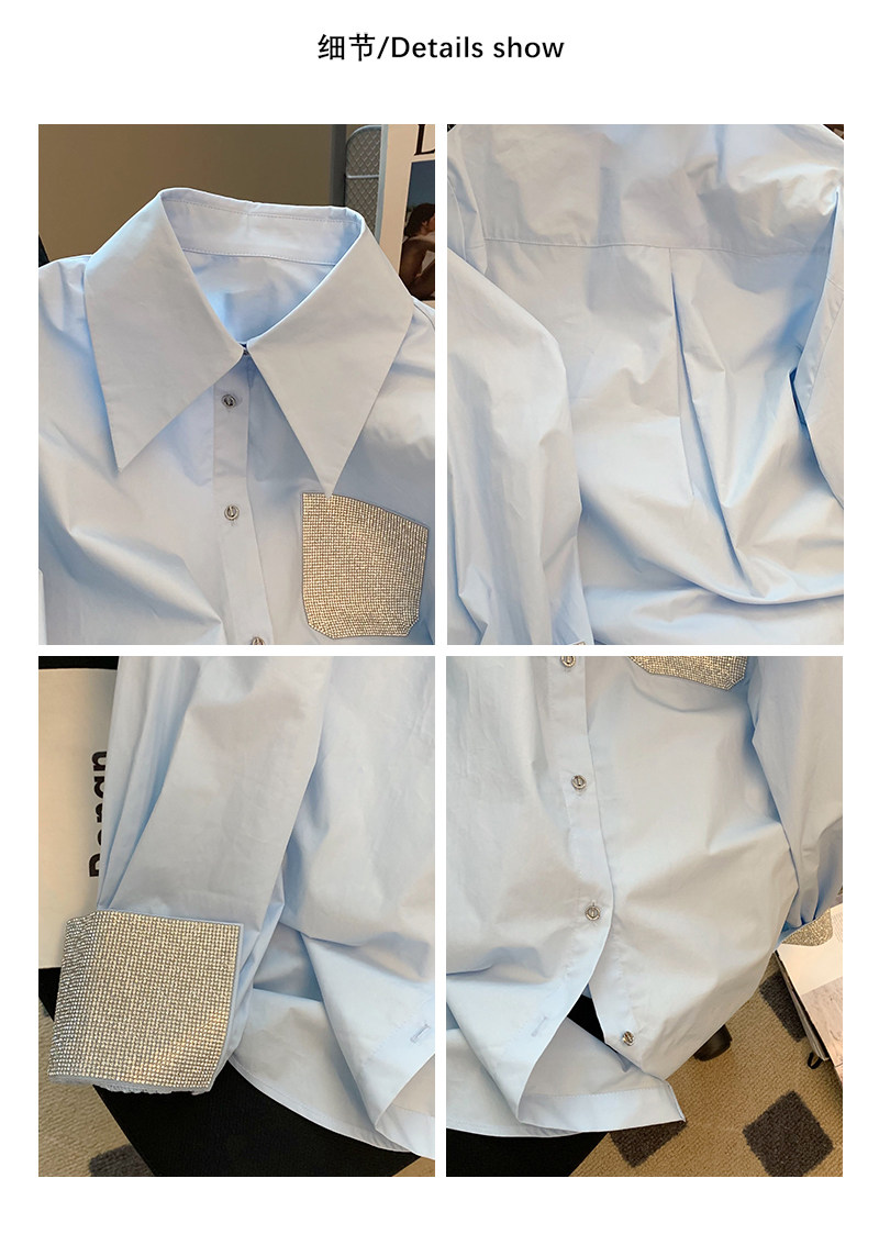 廣州十三行爆款女裝拼接燙鑽長袖襯衫時尚高級感氣質中長款襯衣潮