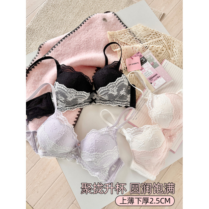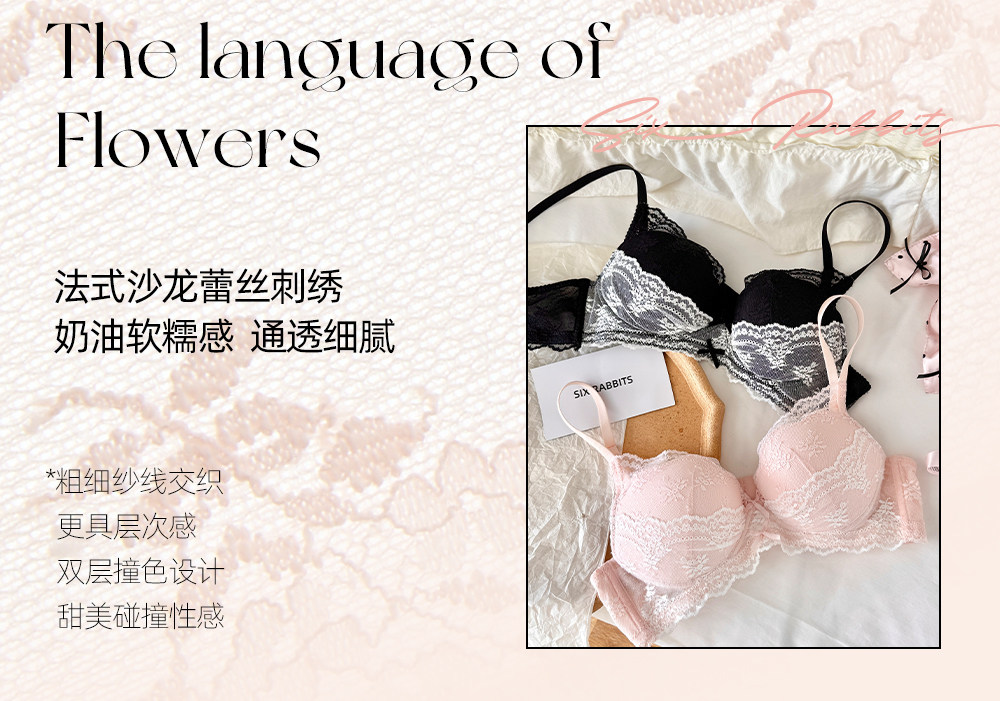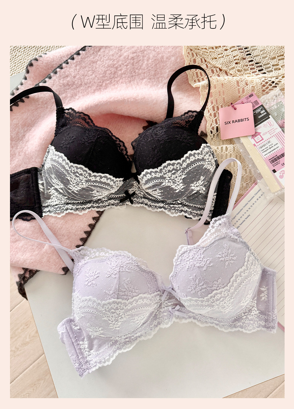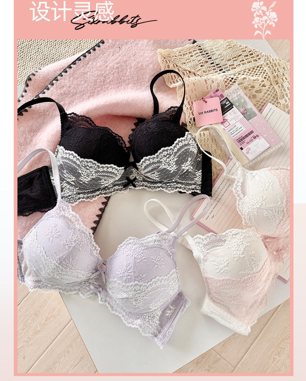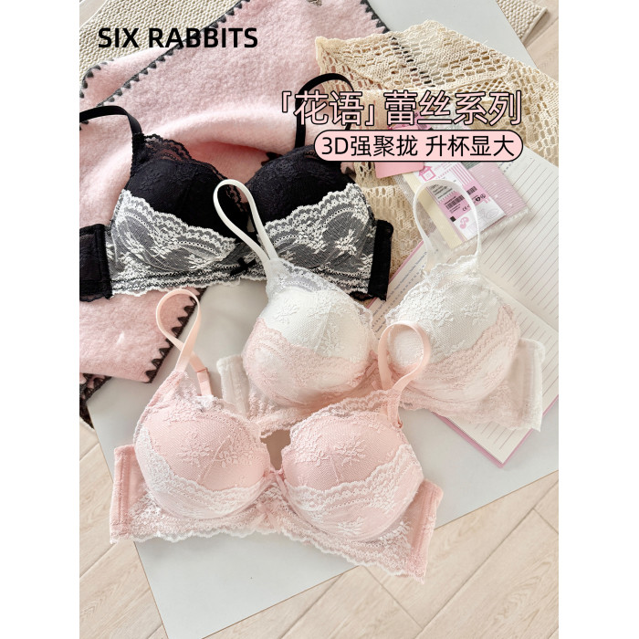 六隻兔子蕾絲內衣女小胸聚攏顯大上托防下垂法式甜美少女文胸罩