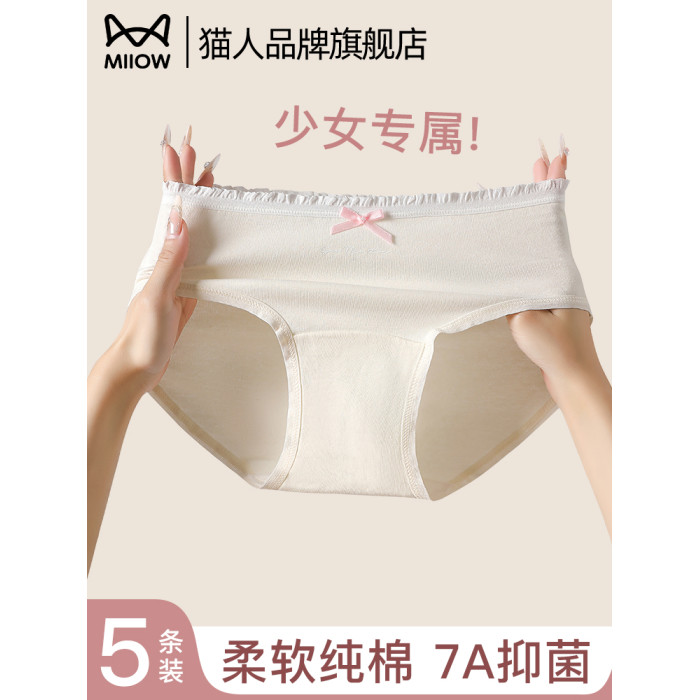 貓人內褲女士純棉7A抑菌襠高彈透氣無痕蝴蝶結少女初高中生三角褲