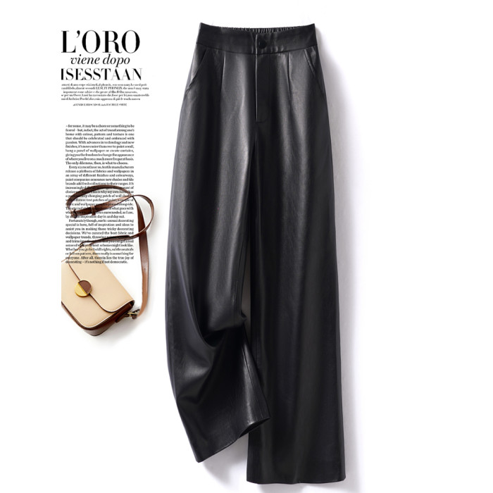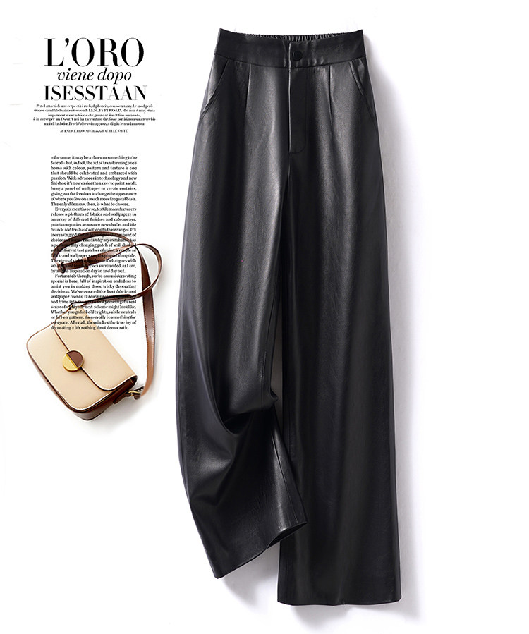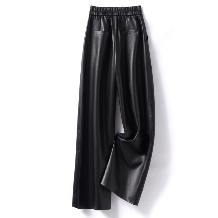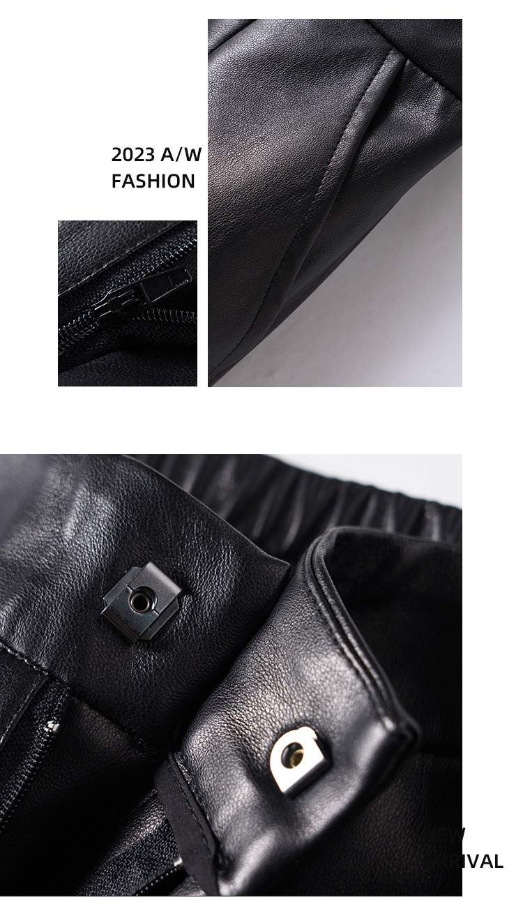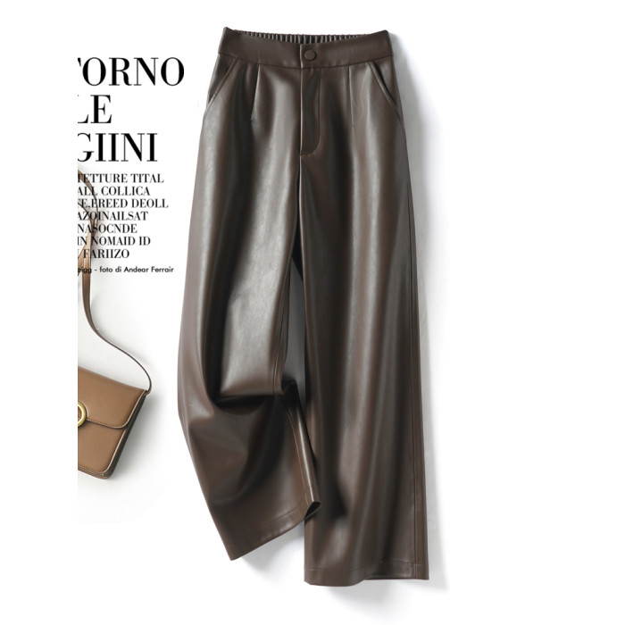 海甯真皮皮褲女九分褲2025秋冬新款綿羊皮修身高腰顯瘦直筒休閒褲