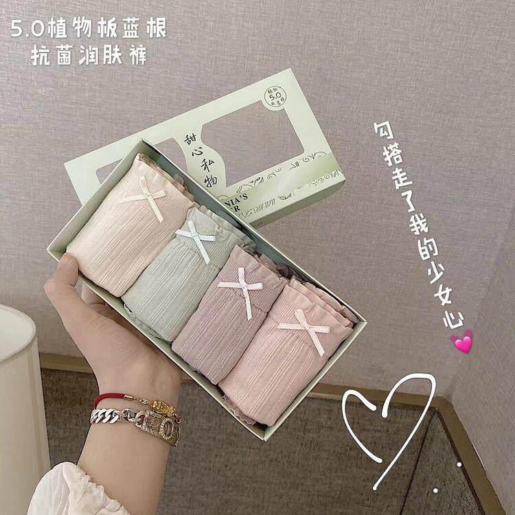 4條裝內褲女純棉抗菌中腰超彈力大舒適學生少女日式可愛三角褲