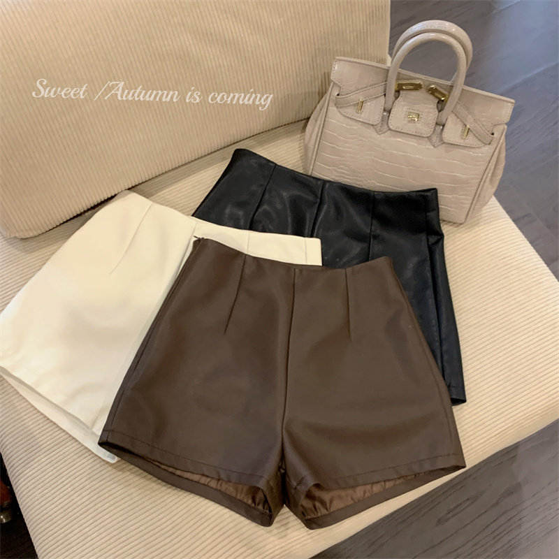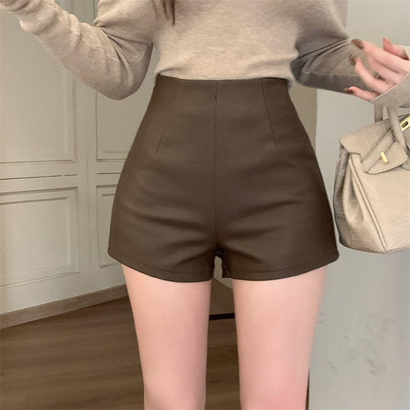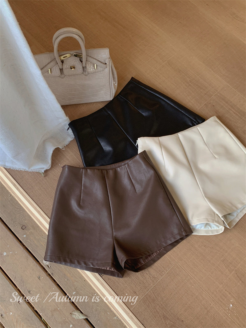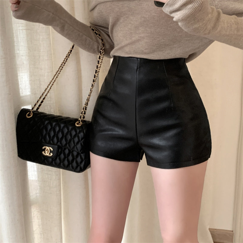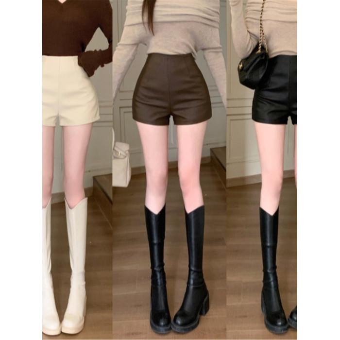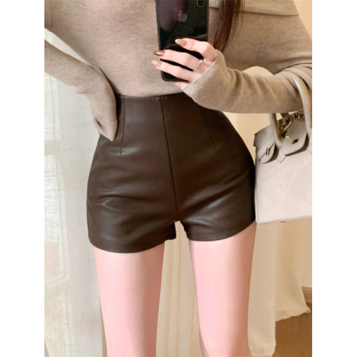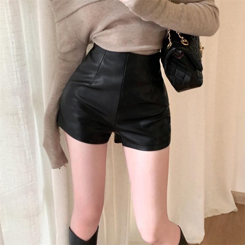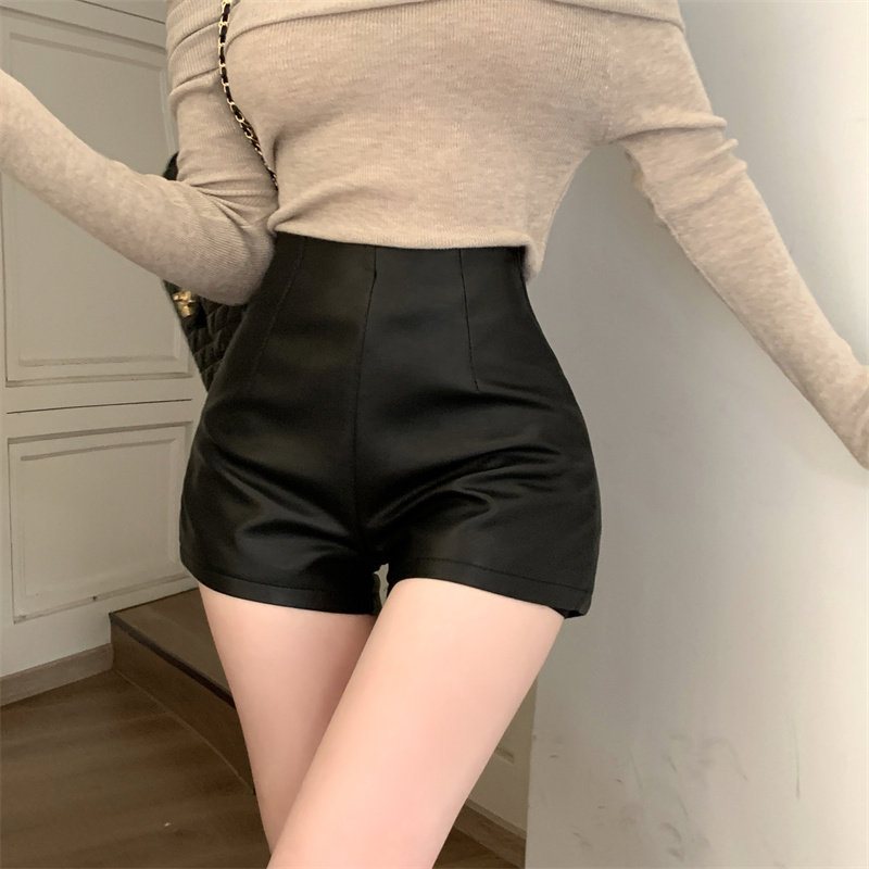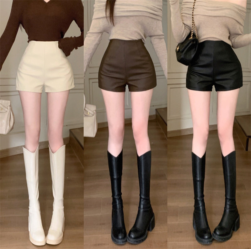 2024新款秋季女皮短褲顯瘦彈力包臀緊身超短性感皮熱褲百搭靴褲