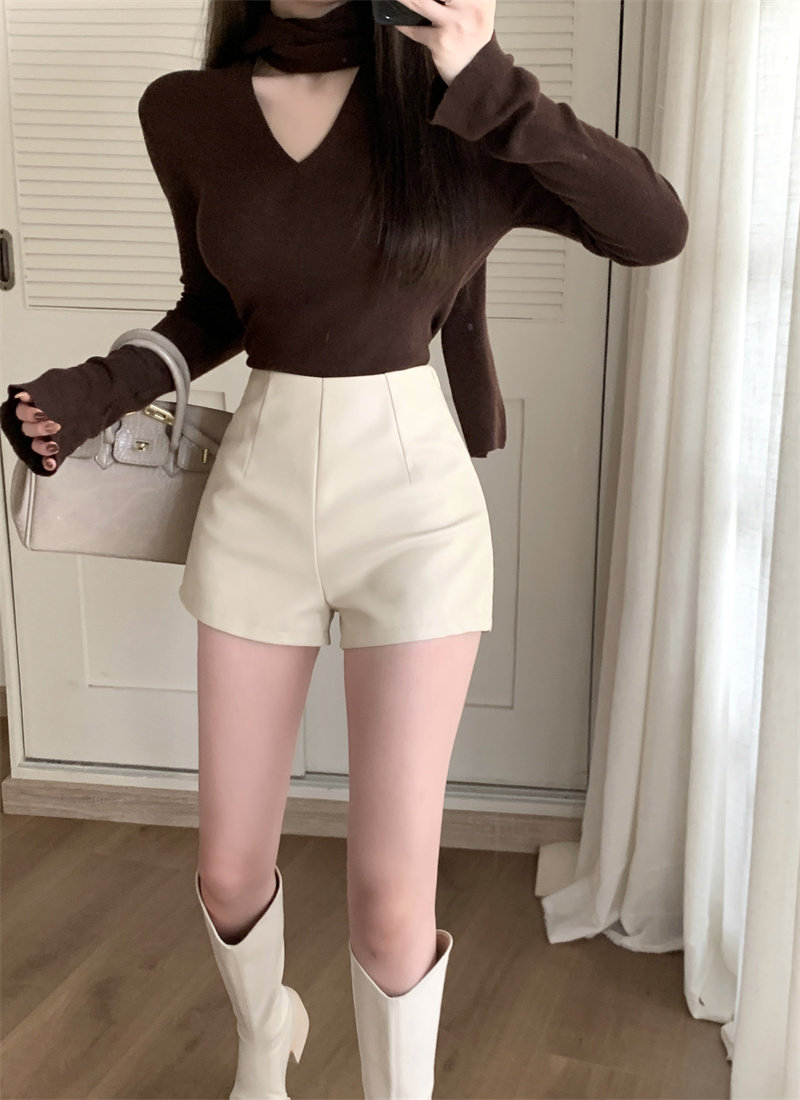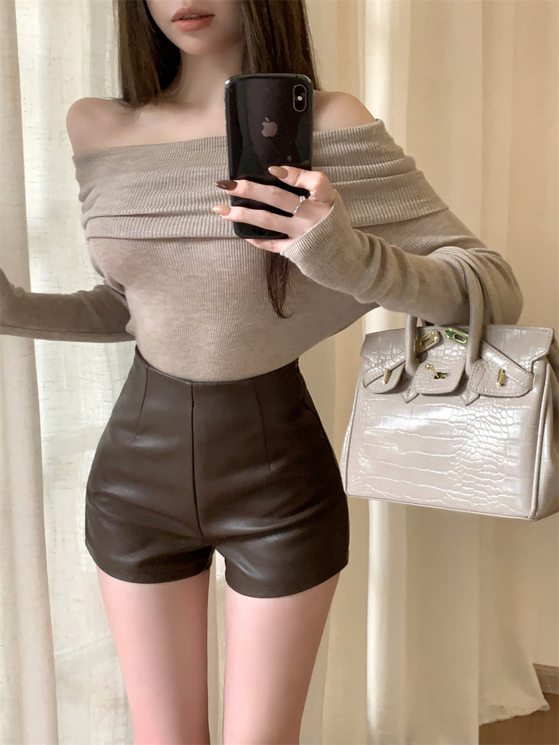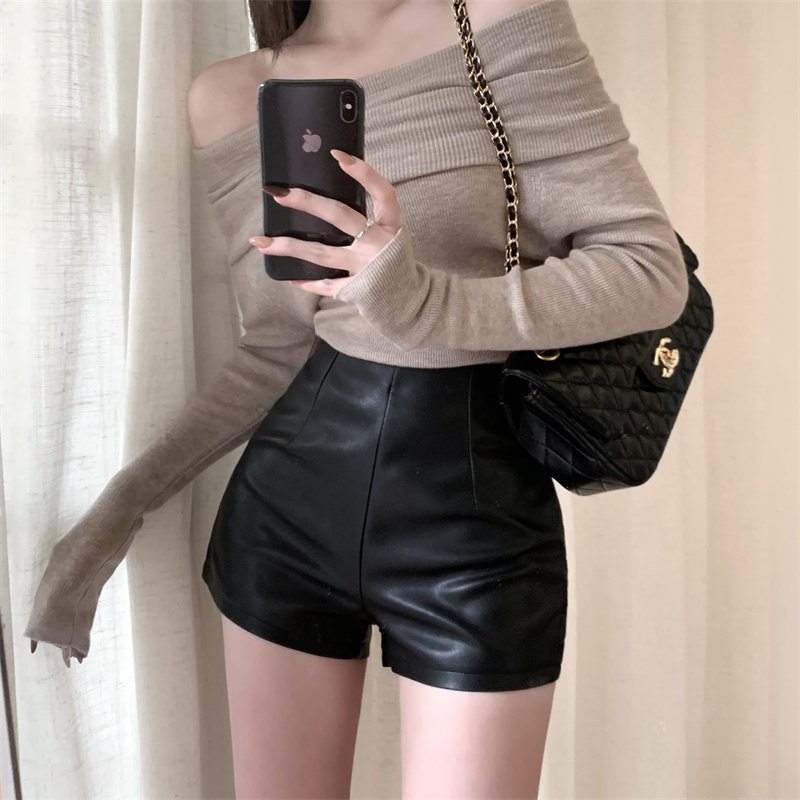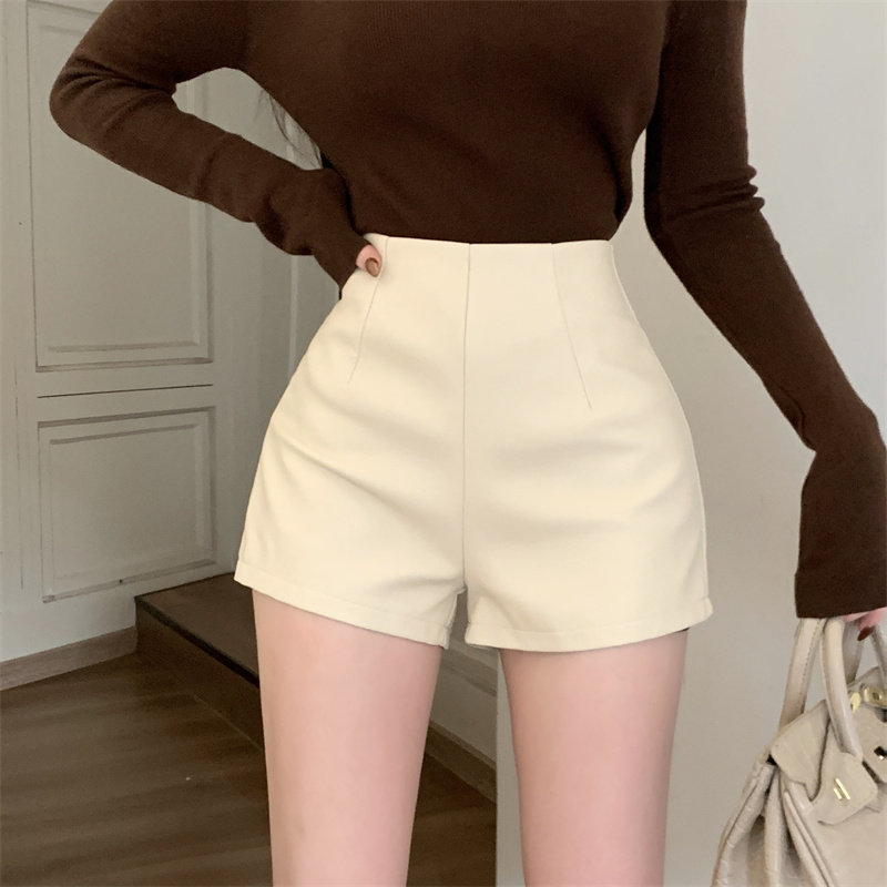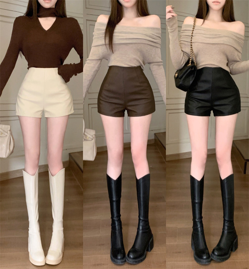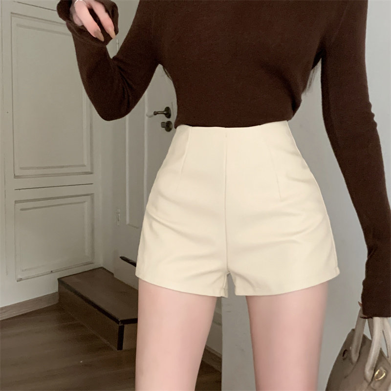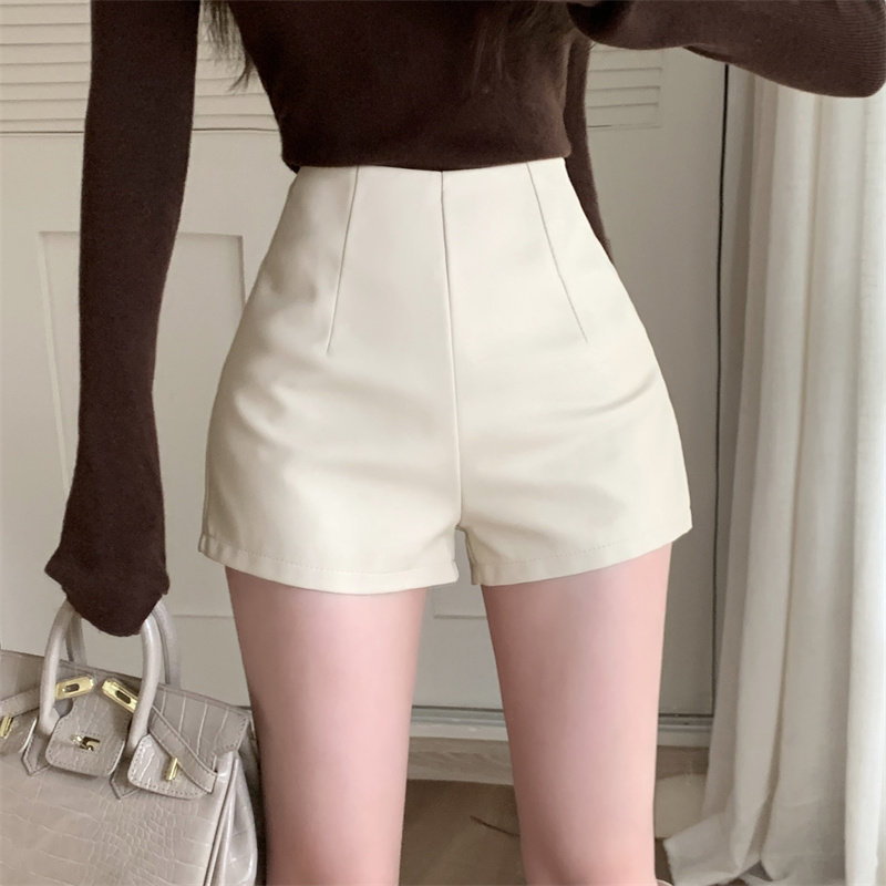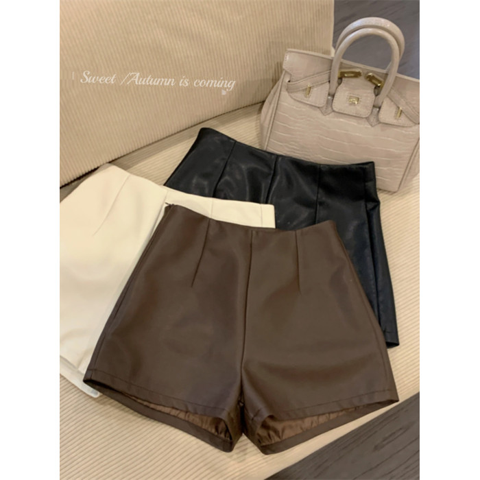 2024新款秋季女皮短褲顯瘦彈力包臀緊身超短性感皮熱褲百搭靴褲