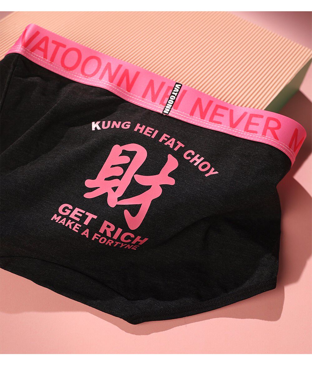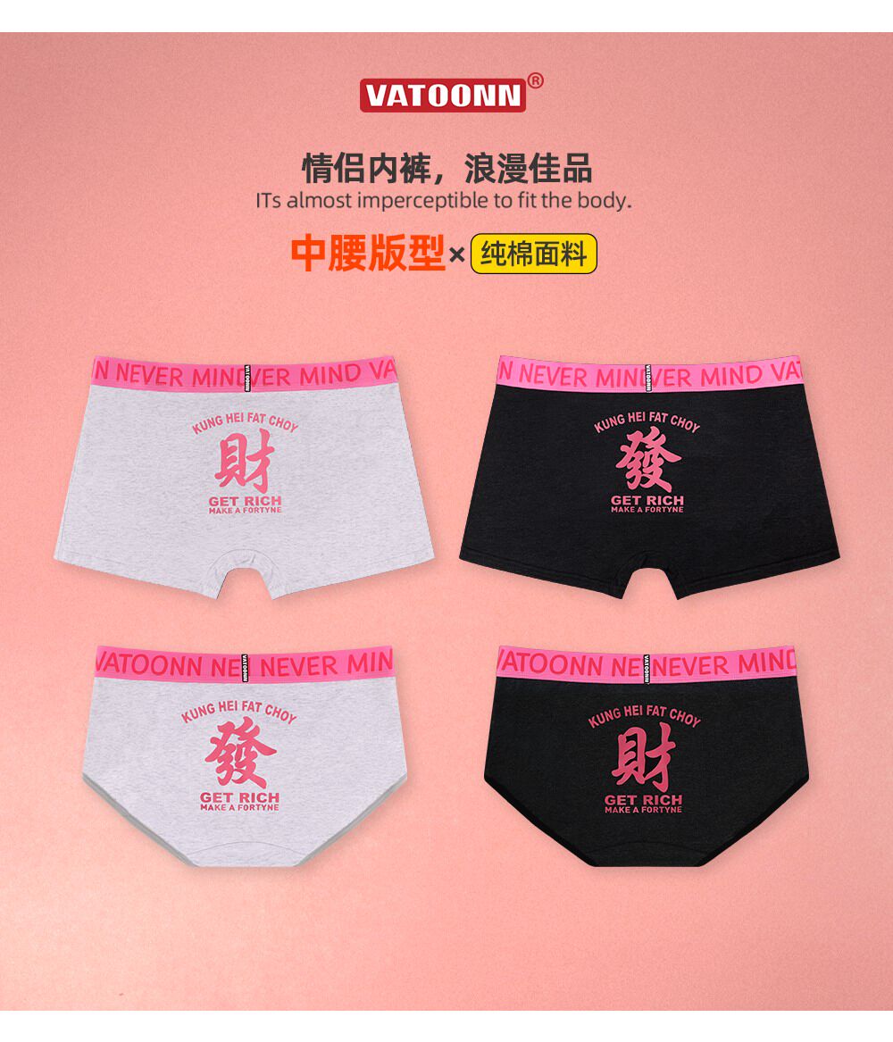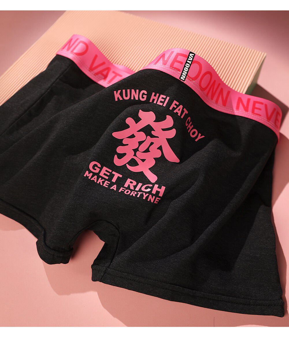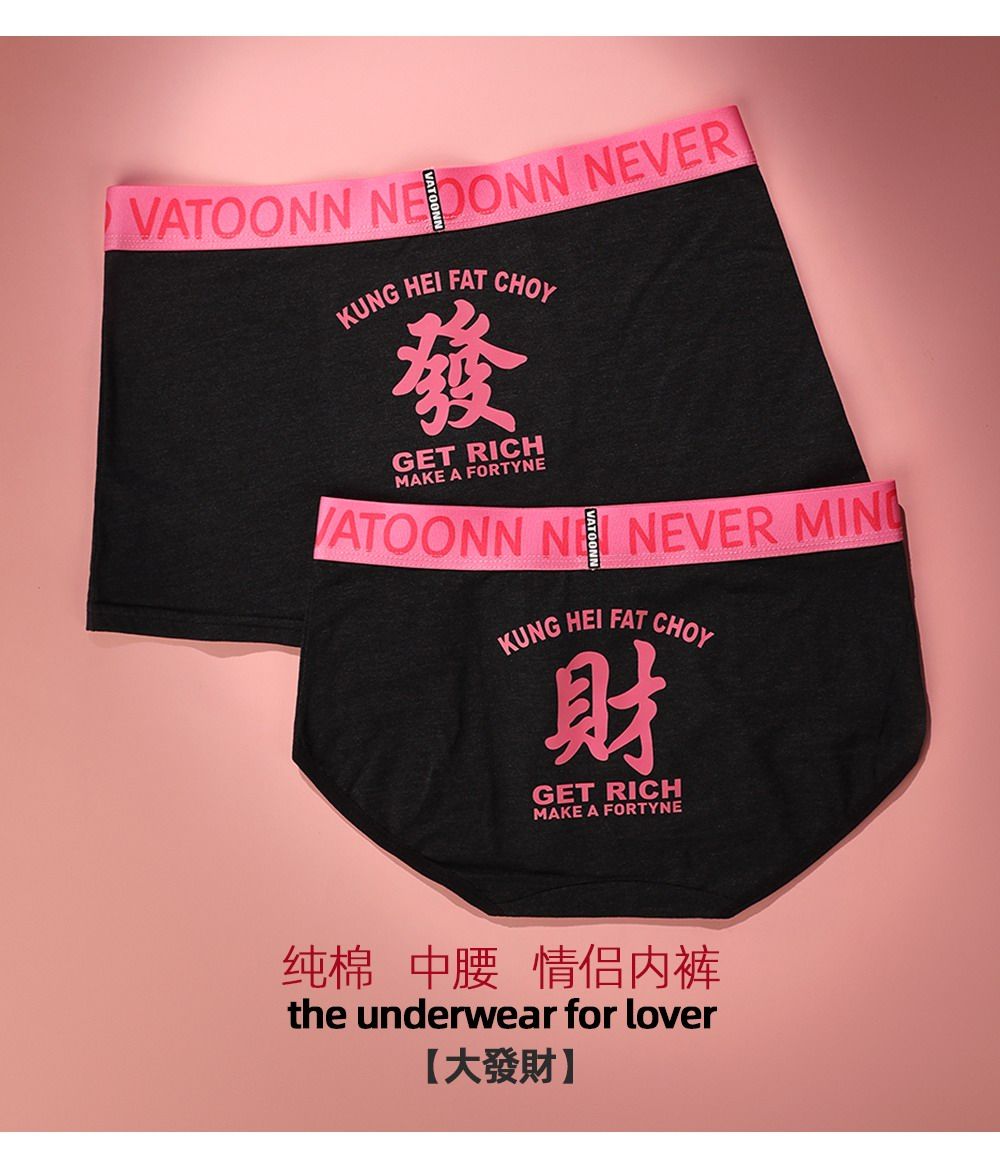 新年情侶內褲純棉男女發財好運印花中腰收腹寬腰帶抑菌襠大碼透氣