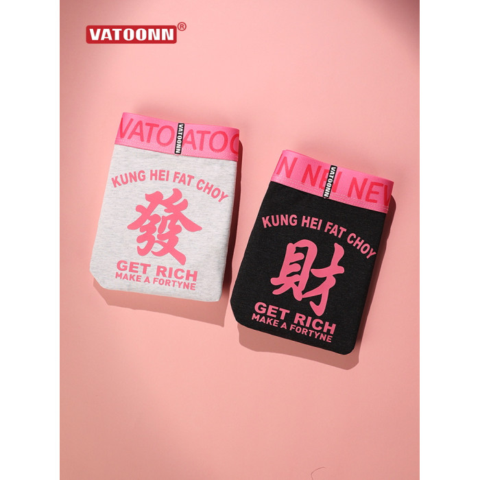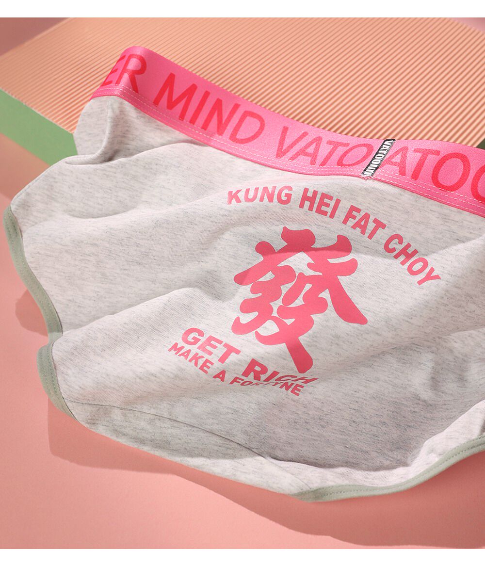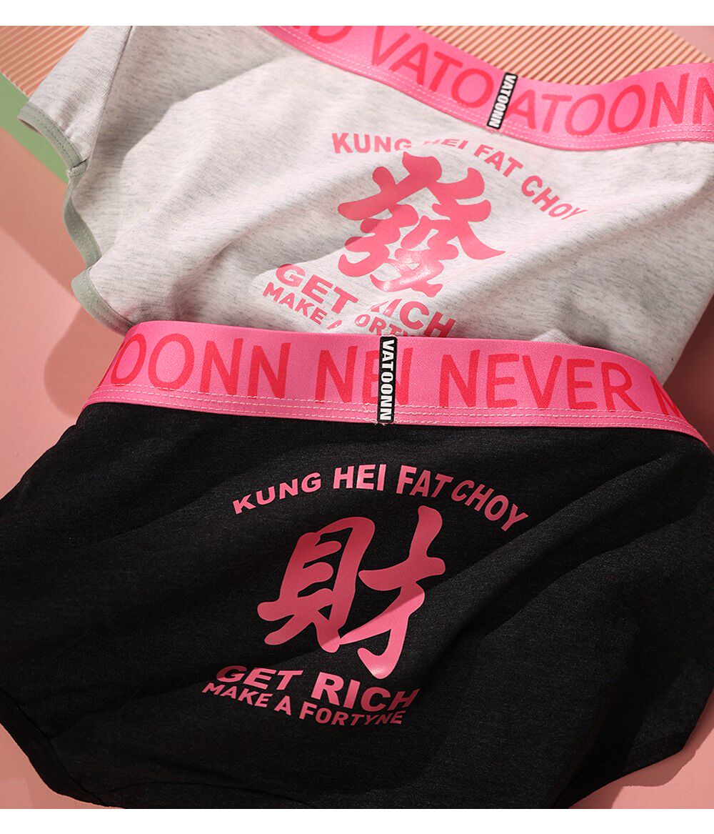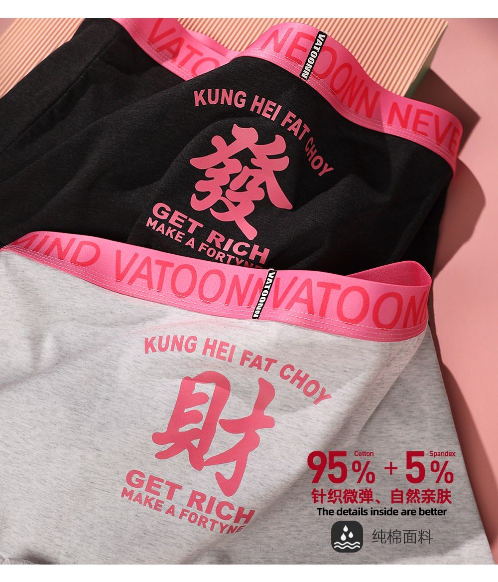 新年情侶內褲純棉男女發財好運印花中腰收腹寬腰帶抑菌襠大碼透氣