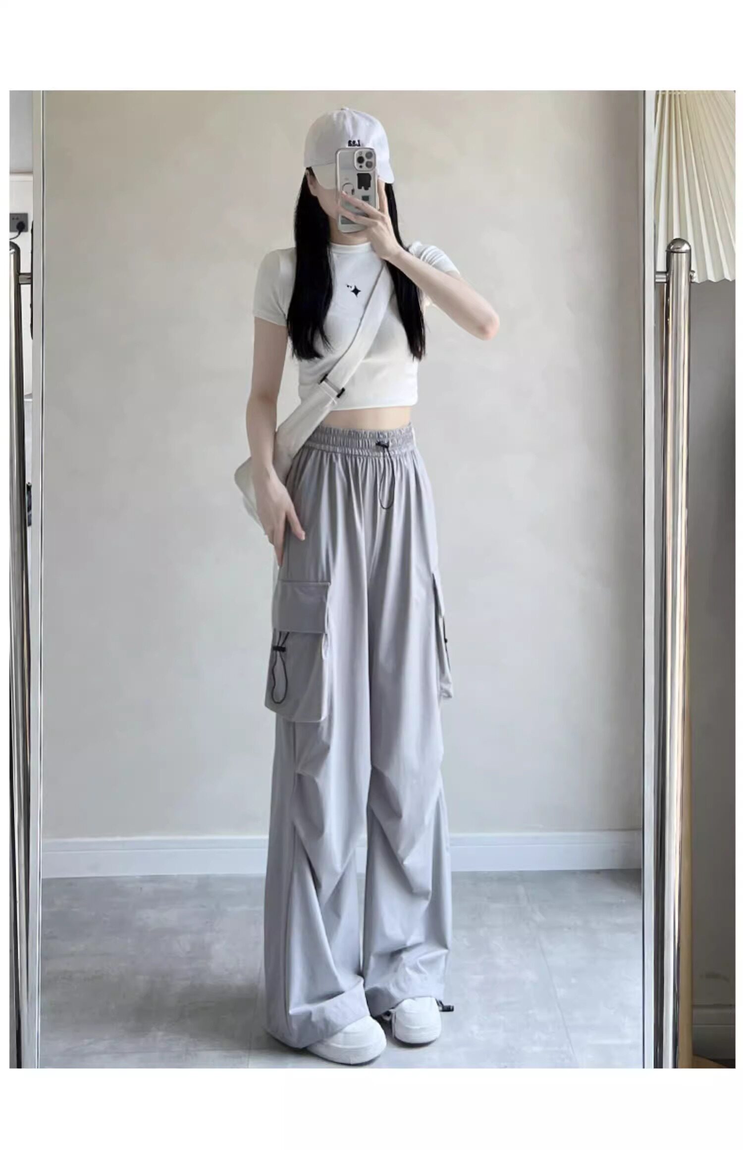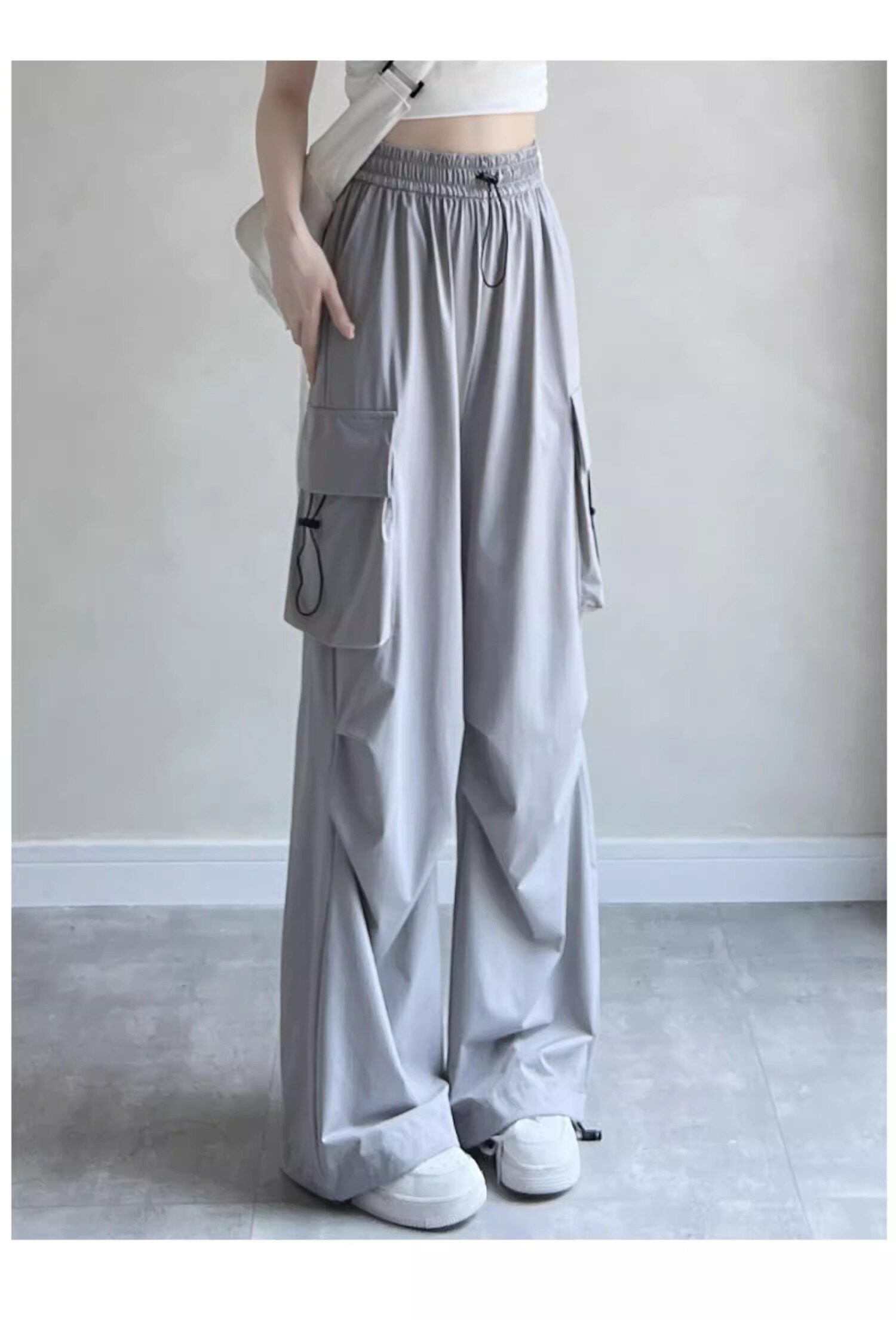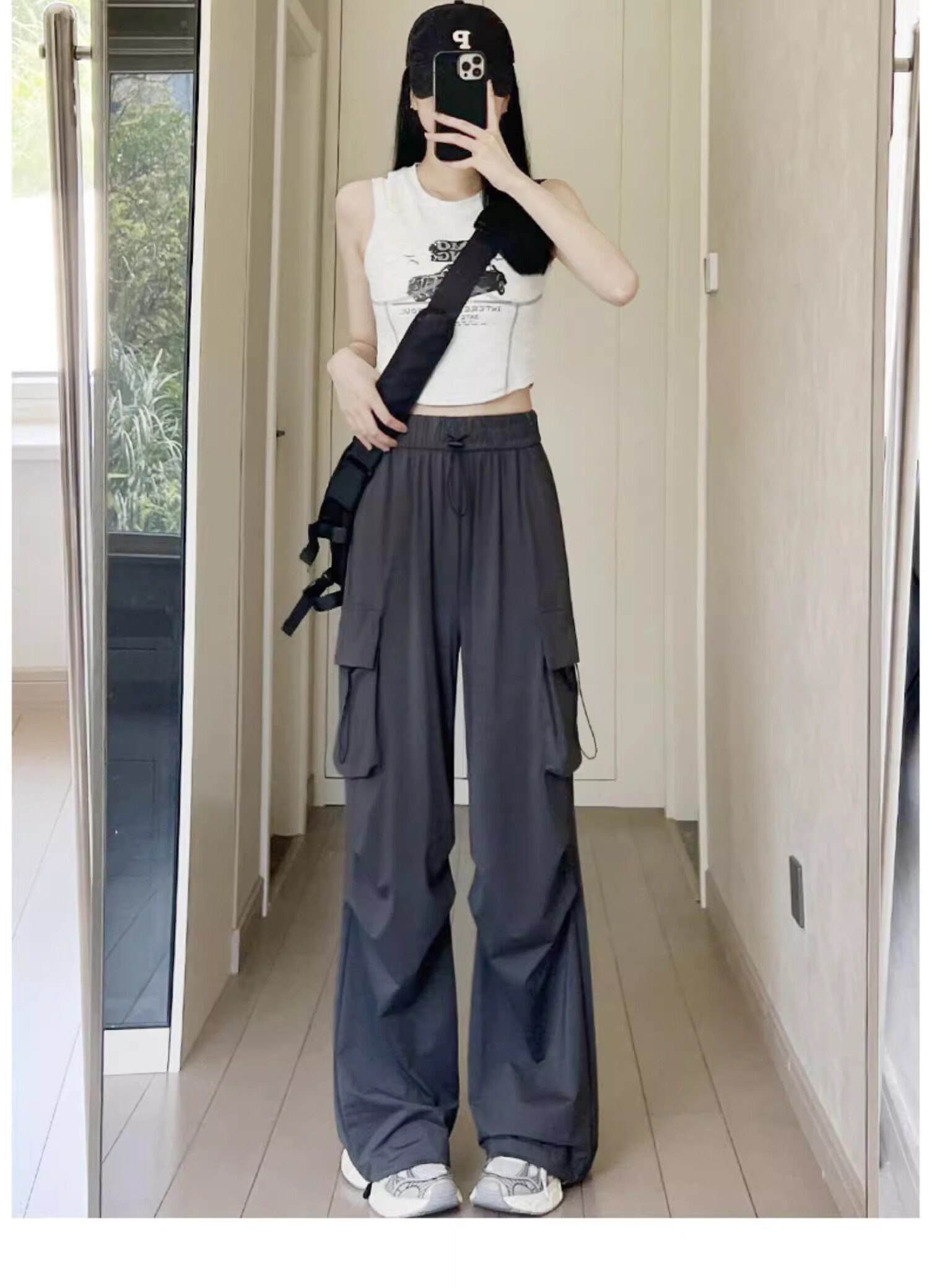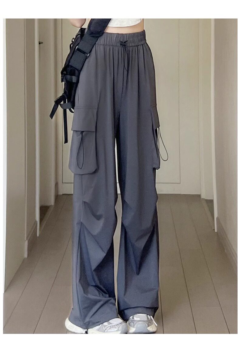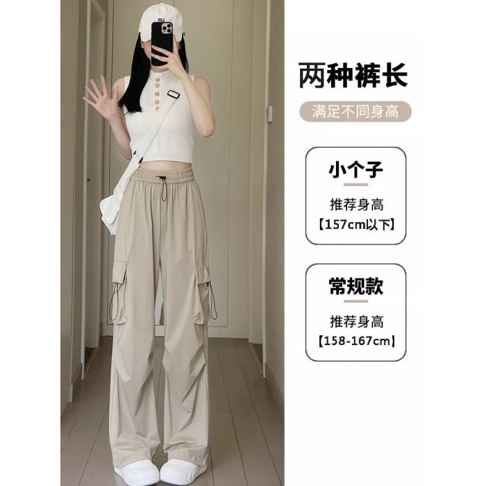 美式速乾工裝褲女春秋薄款2025新款小個子寬鬆降落傘束腳濶腿褲