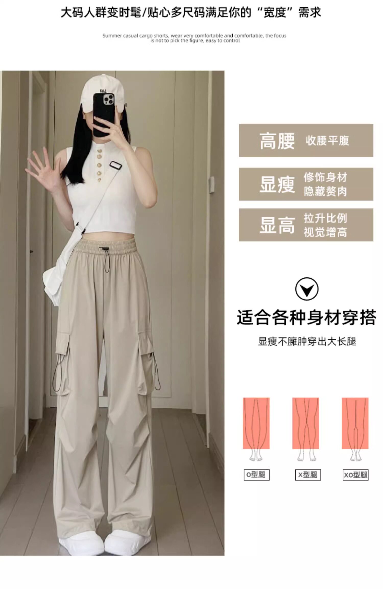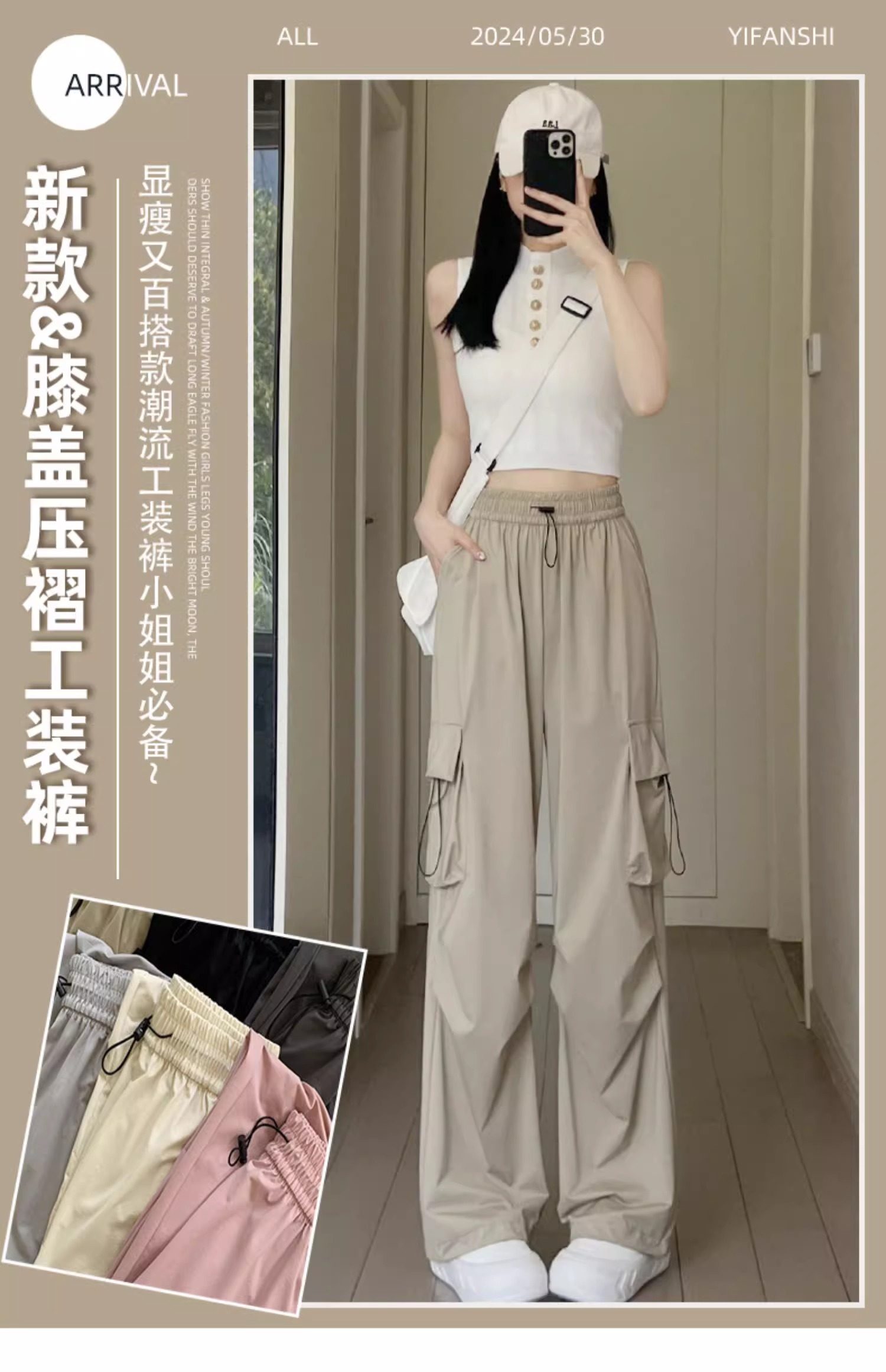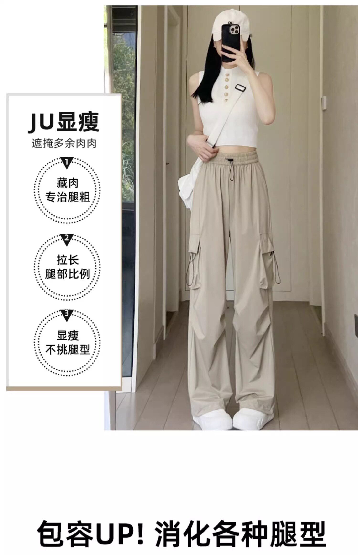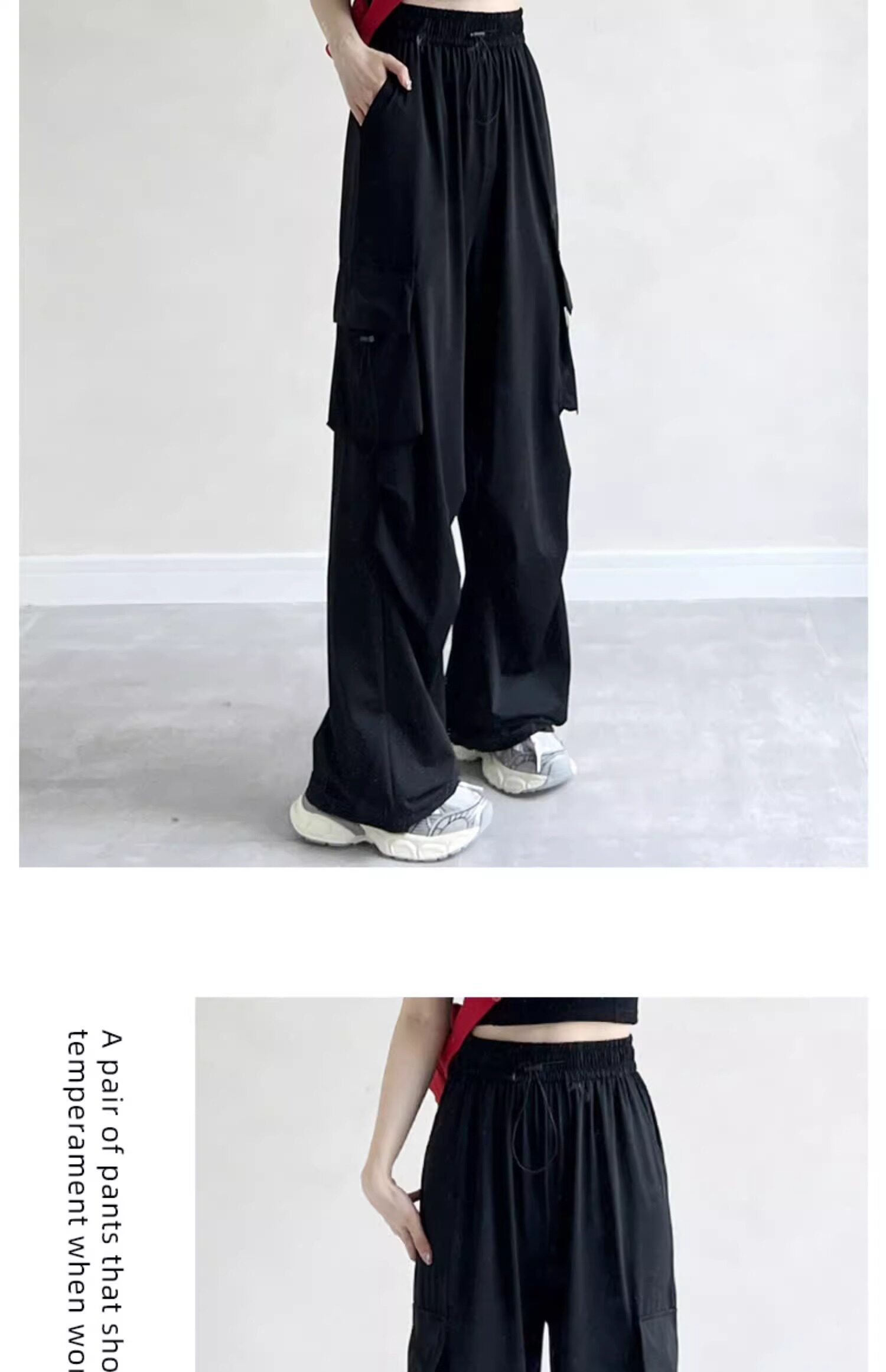 美式速乾工裝褲女春秋薄款2025新款小個子寬鬆降落傘束腳濶腿褲
