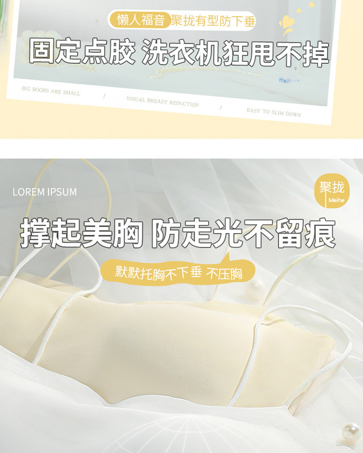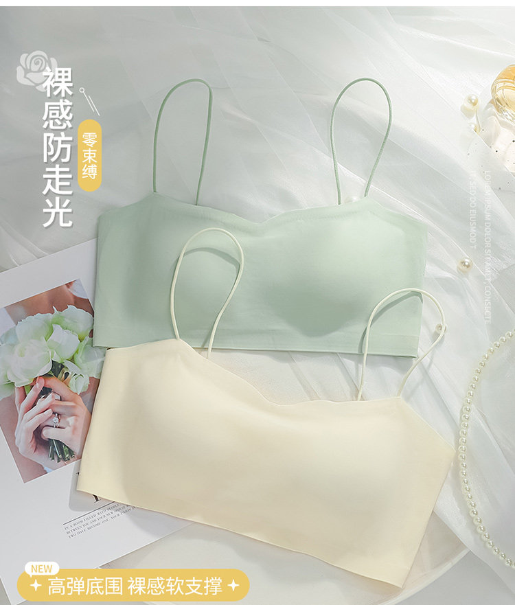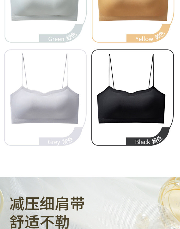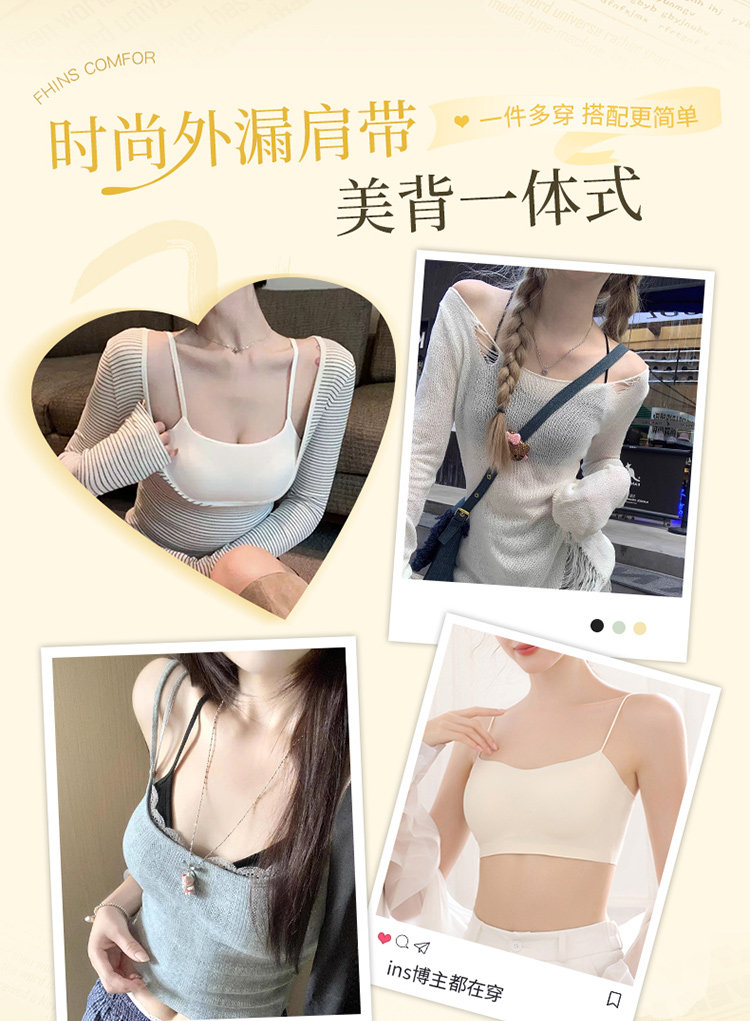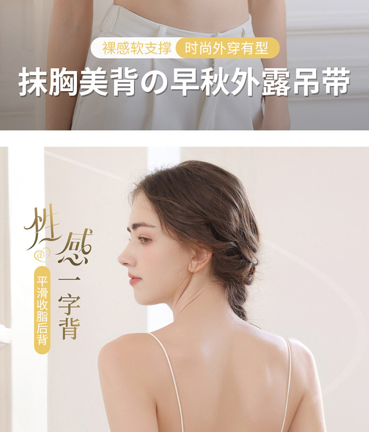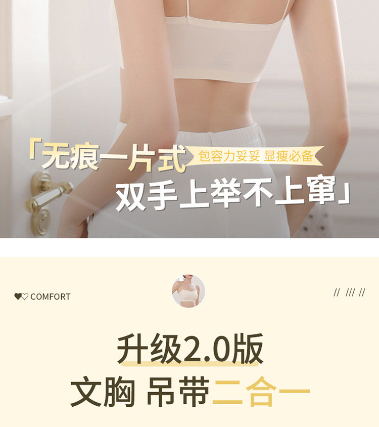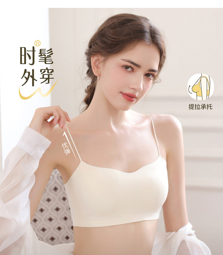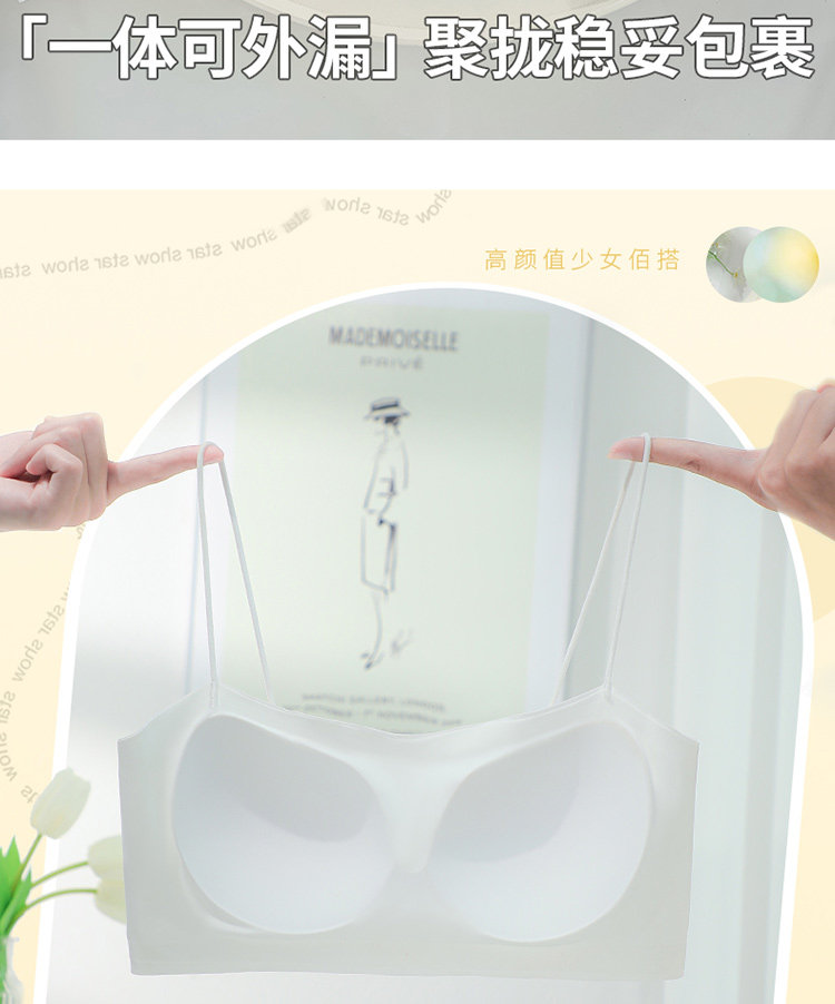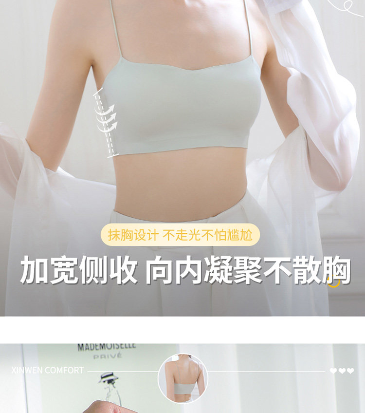 無痕美背抹胸內衣女小胸聚攏可外漏細肩帶一體固定杯背心式文胸罩