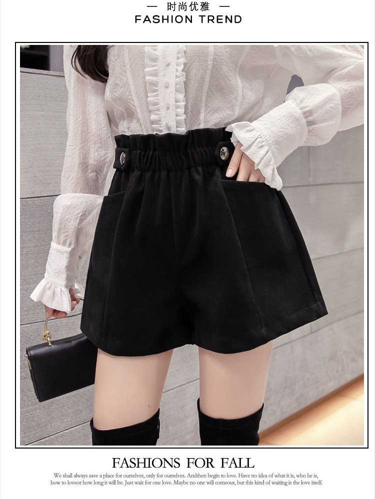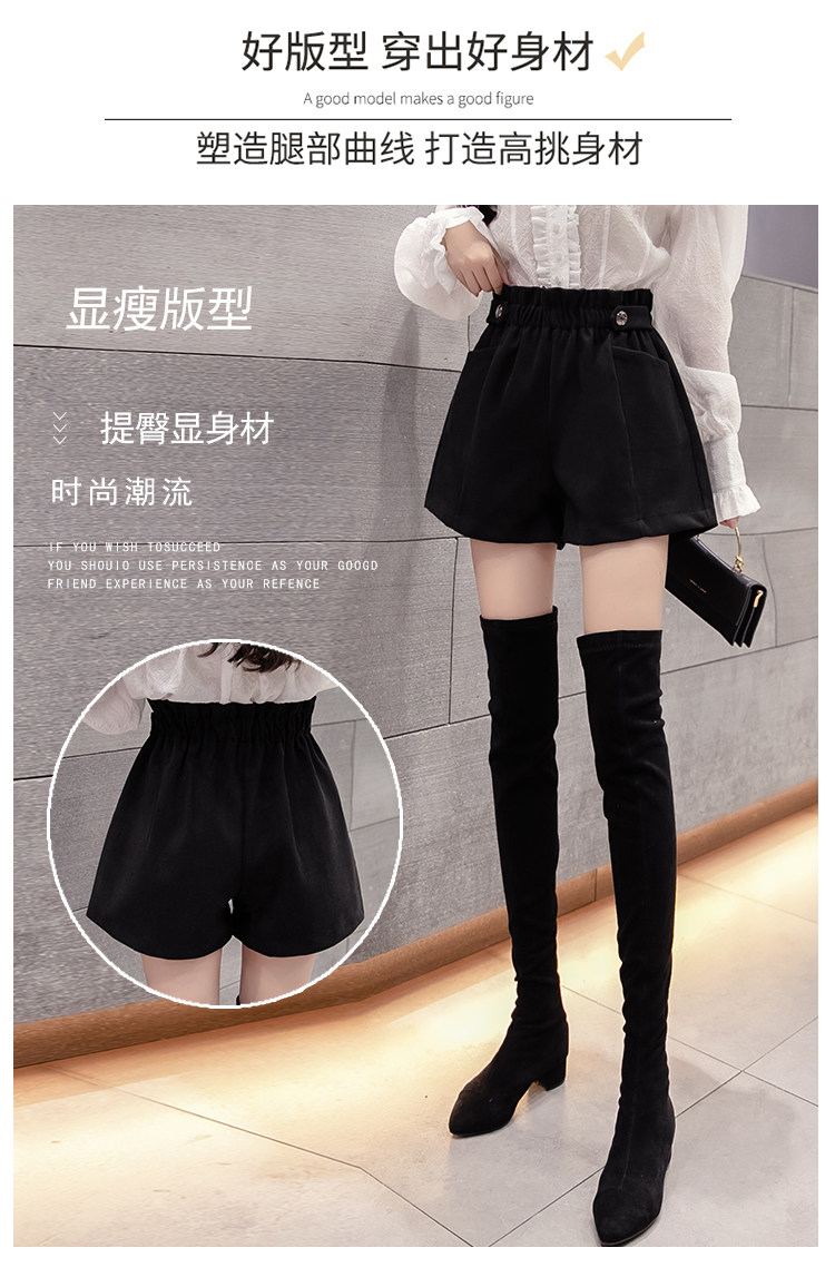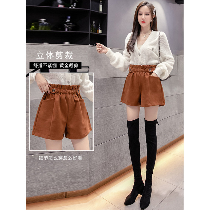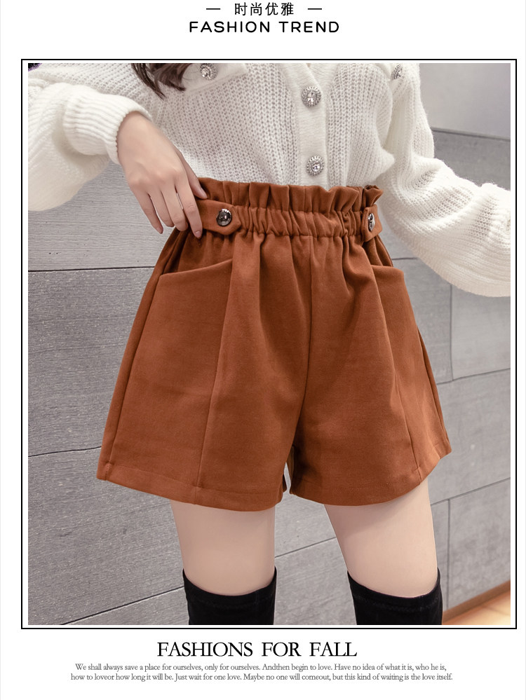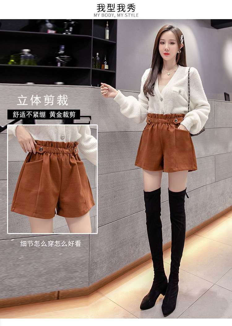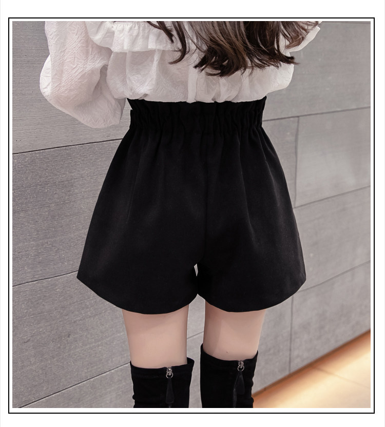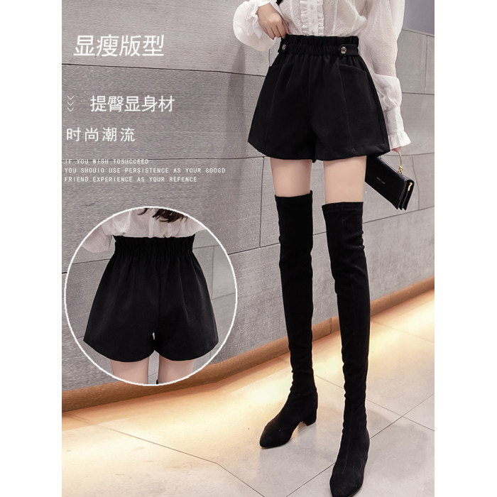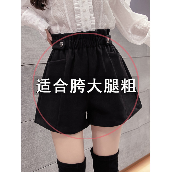 大碼毛呢短褲女秋冬季2025新款寬鬆高腰花苞濶腿a字打底靴褲外穿