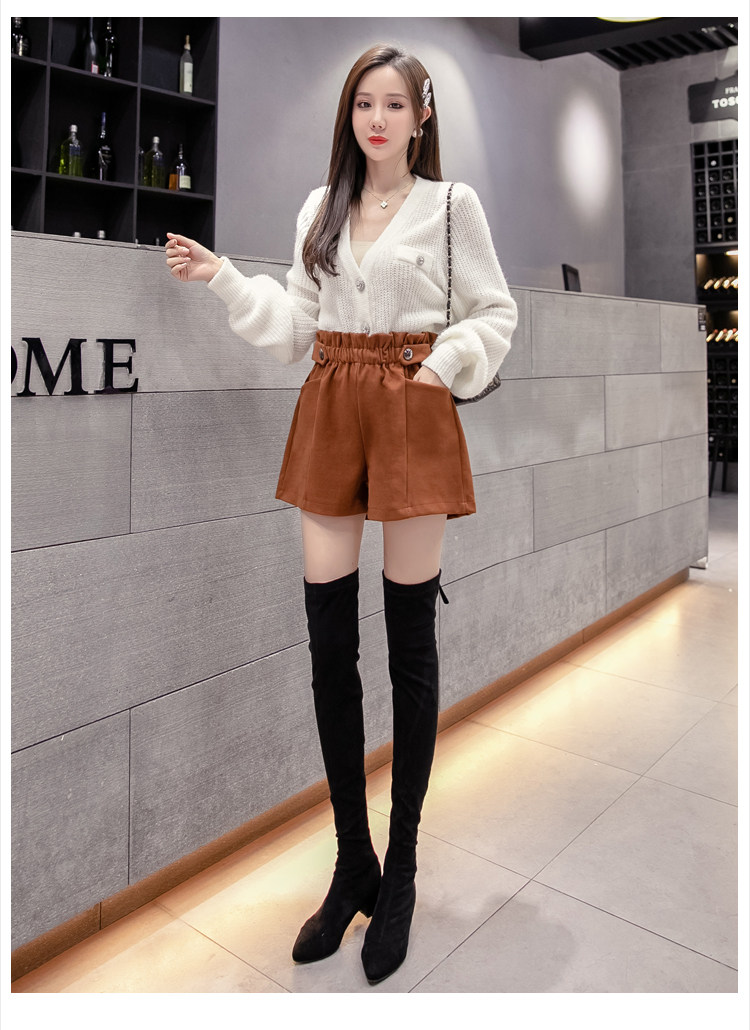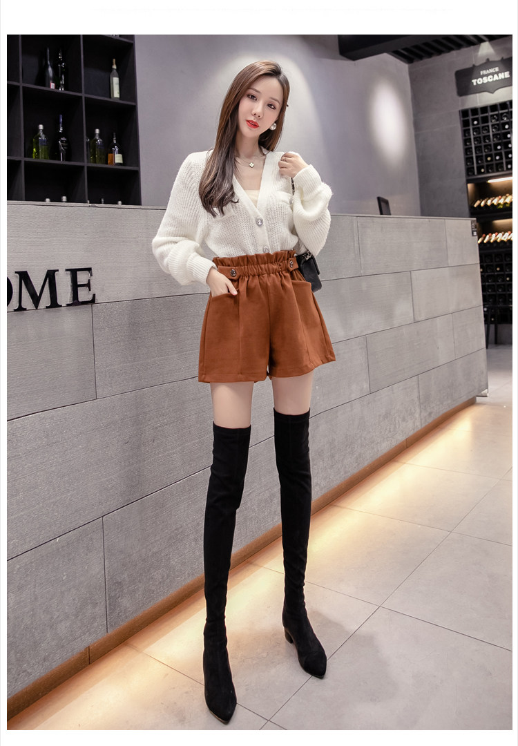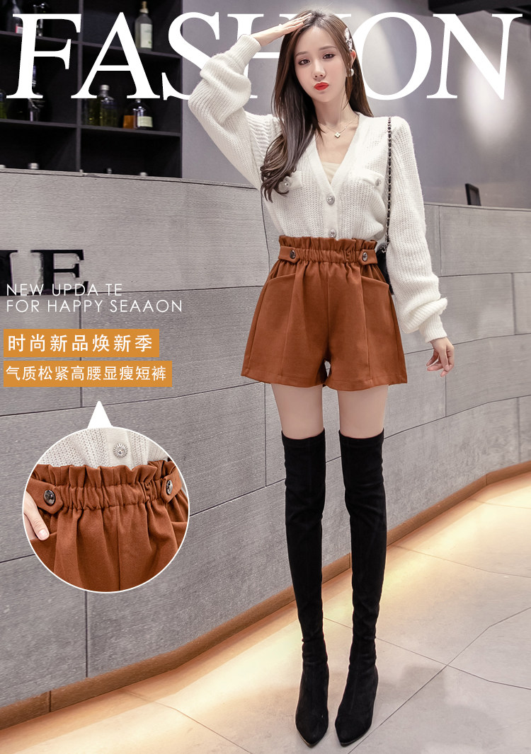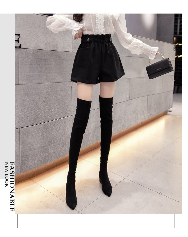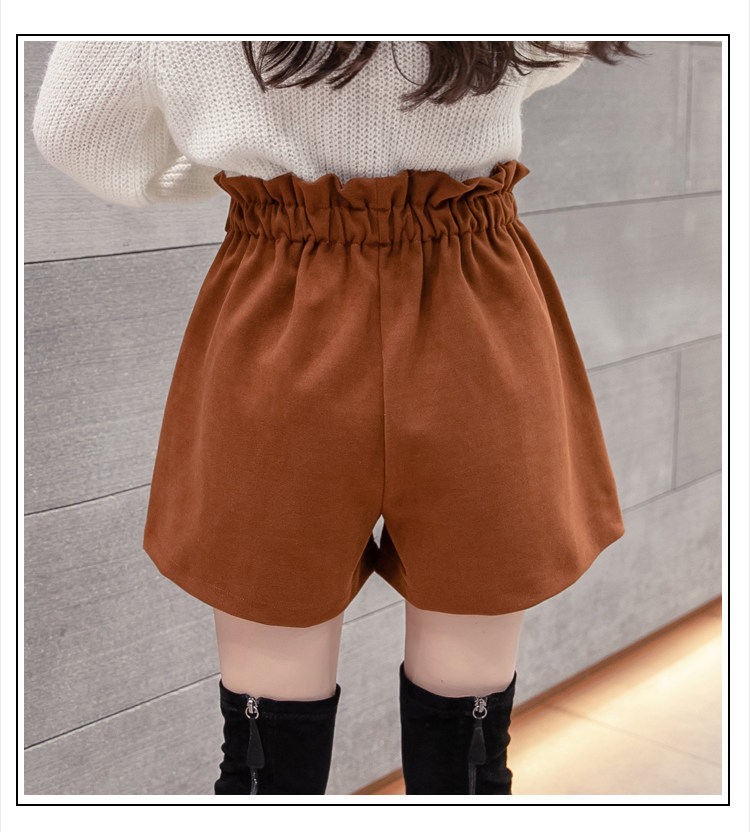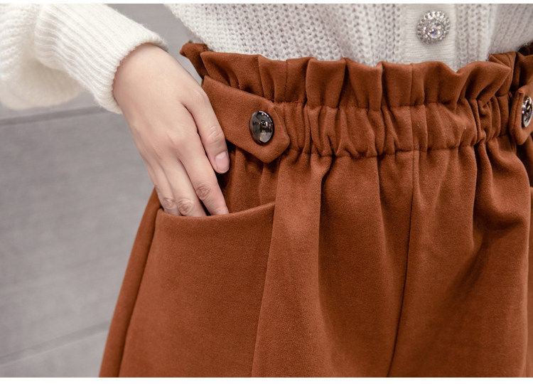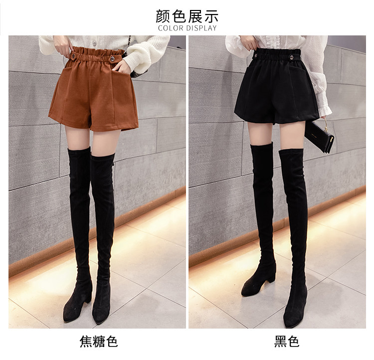 大碼毛呢短褲女秋冬季2025新款寬鬆高腰花苞濶腿a字打底靴褲外穿