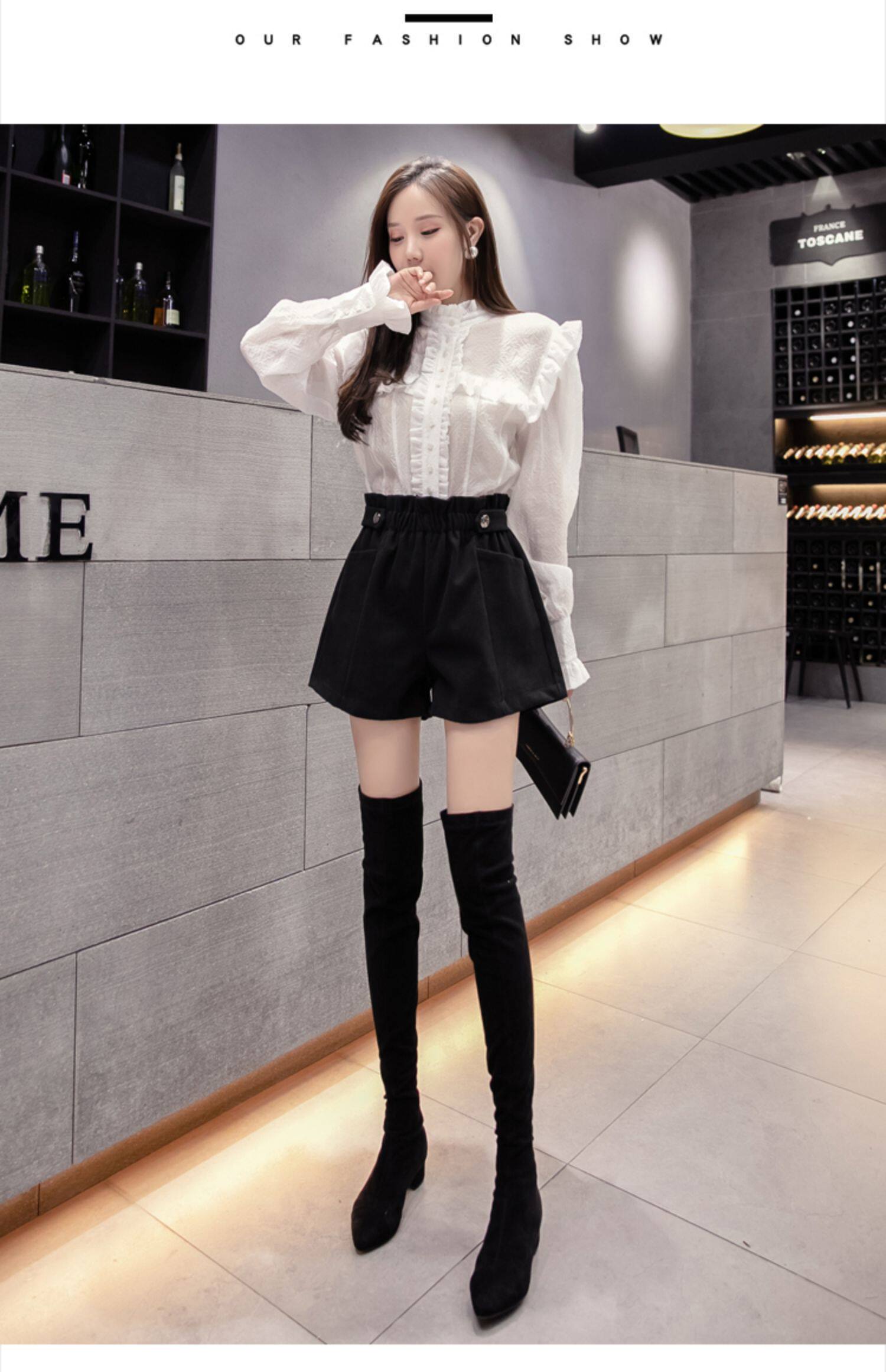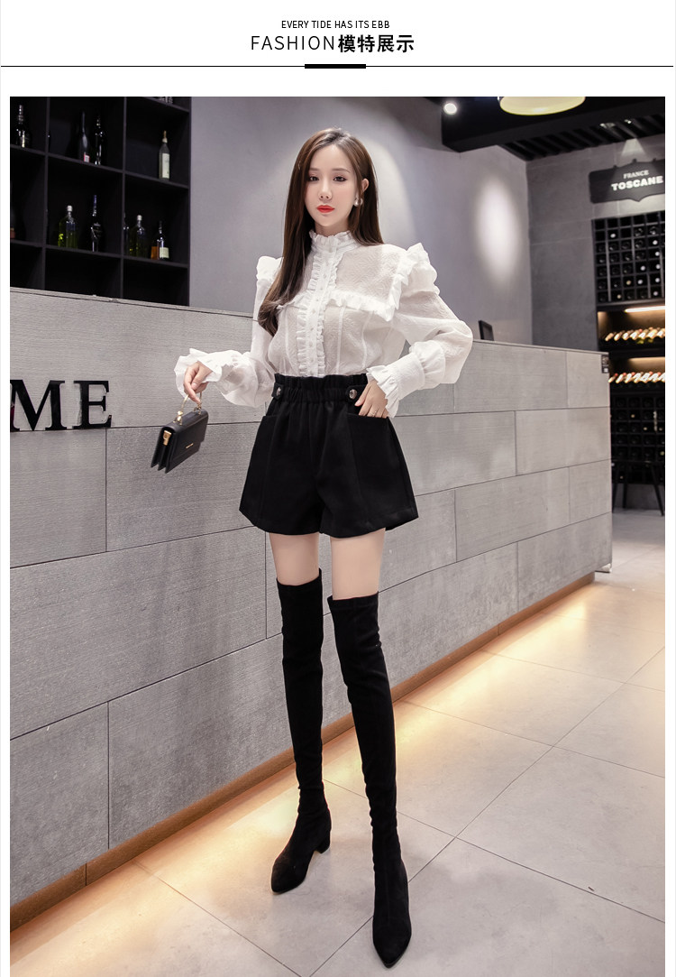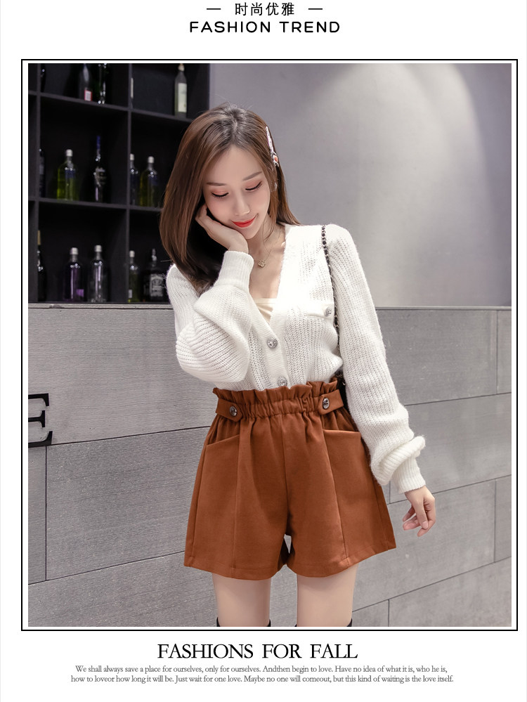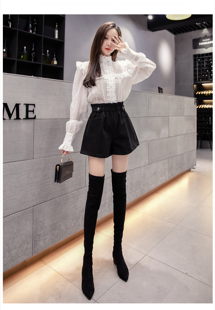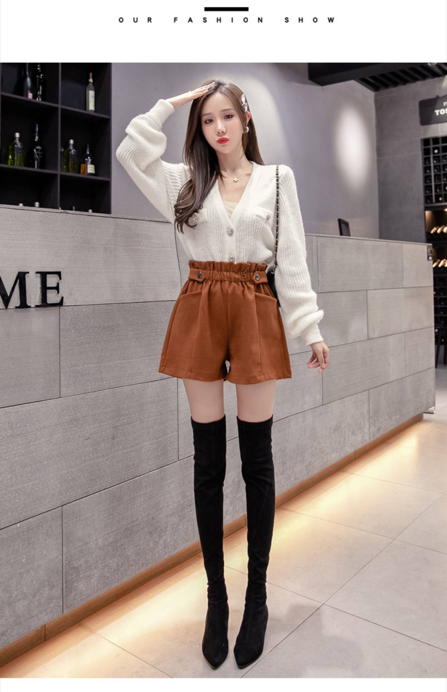 大碼毛呢短褲女秋冬季2025新款寬鬆高腰花苞濶腿a字打底靴褲外穿