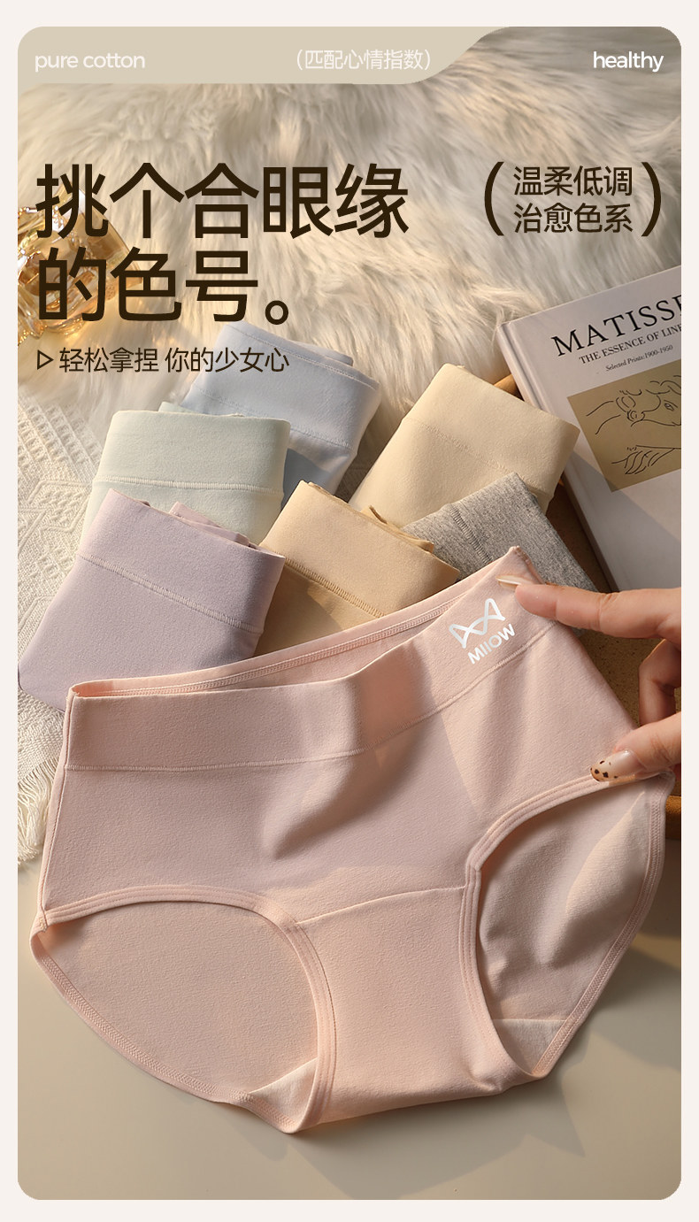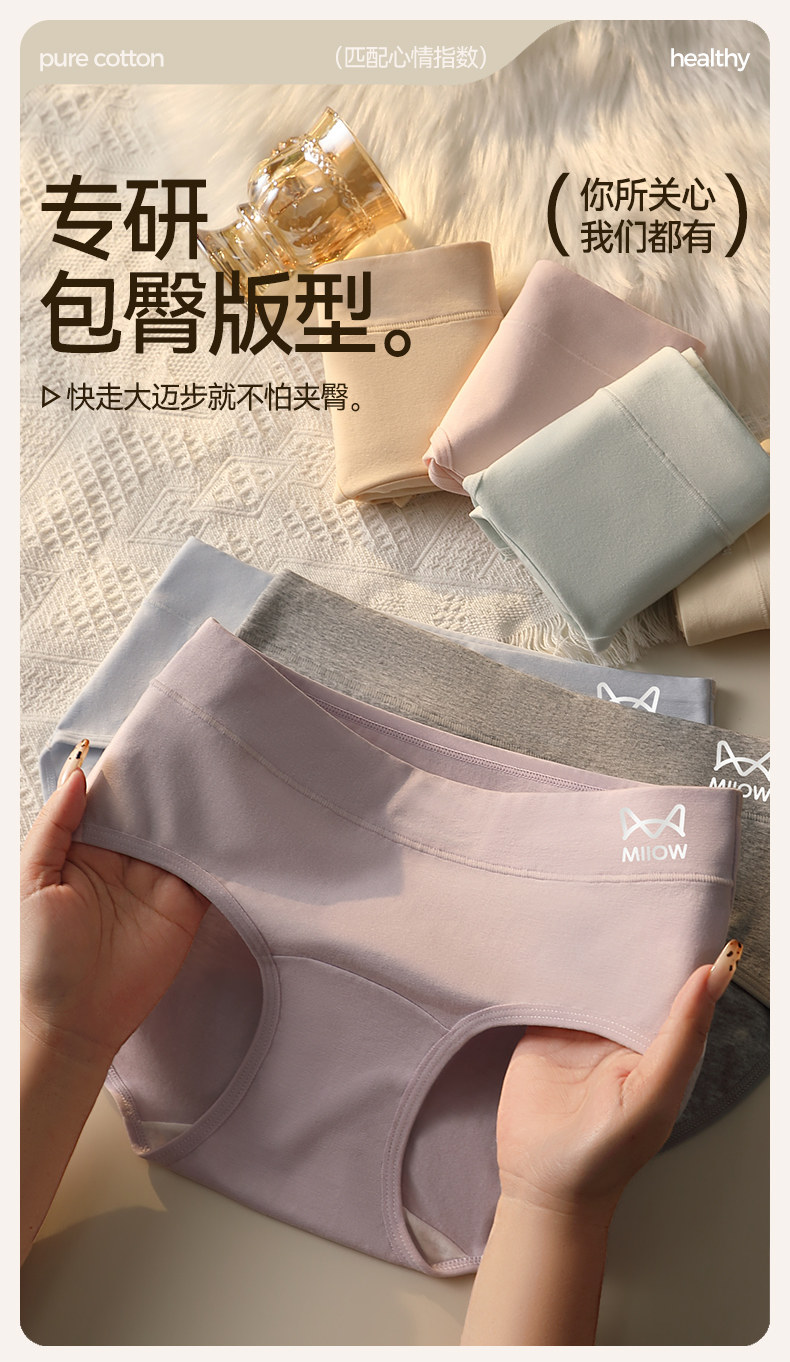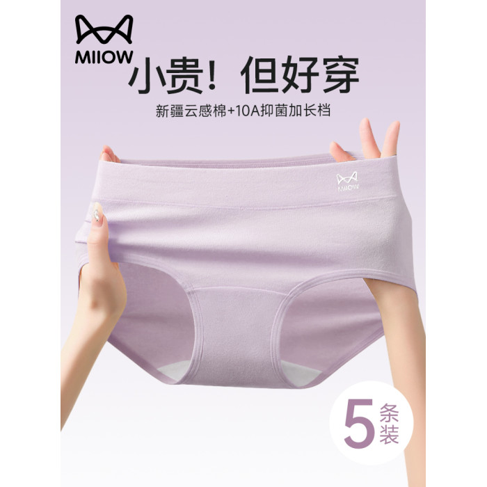 貓人純棉內褲女2026新款抗菌加長襠舒適透氣少女生紫色三角短褲HJ