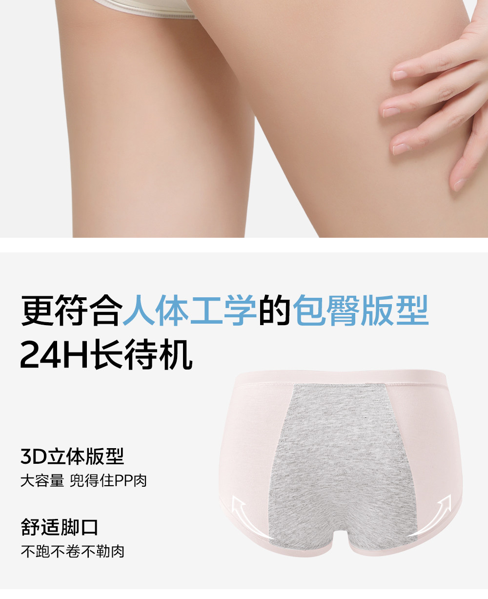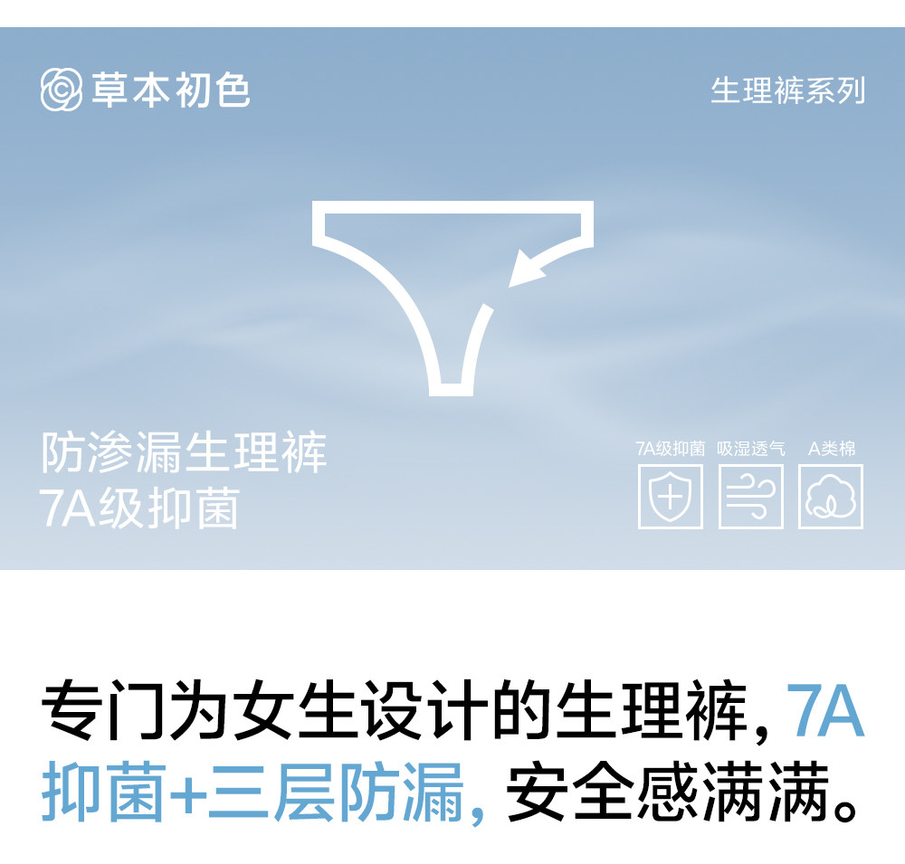 草本初色生理內褲女純棉襠抑菌不夾臀加長加寬中腰經期防漏姨媽褲