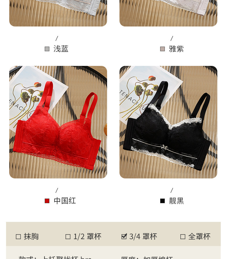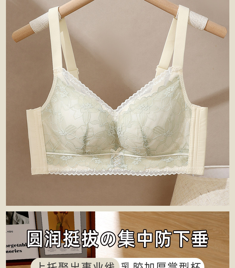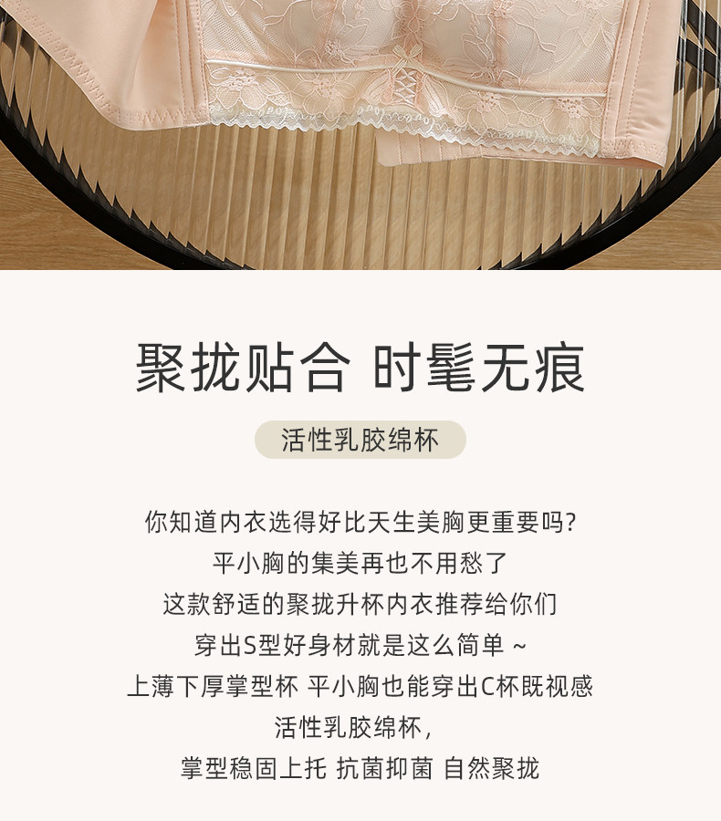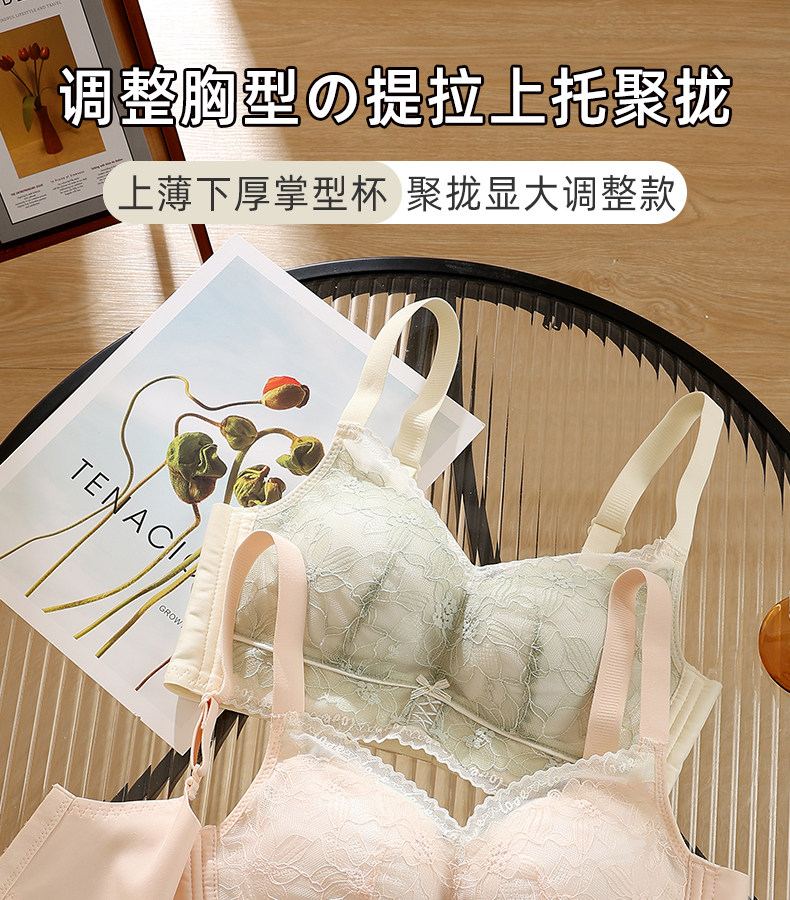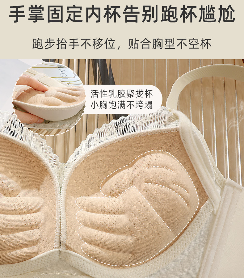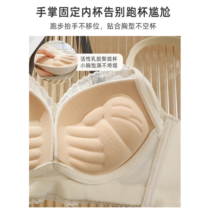 內衣女聚攏小胸顯大手掌杯上托加厚收副乳防下垂無鋼圈蕾絲文胸罩