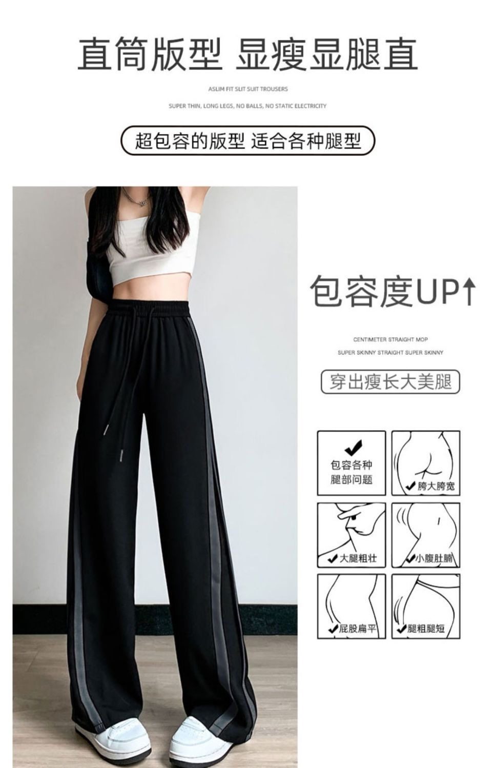 秋冬濶腿褲女2025新款加絨加厚高腰顯瘦垂感直筒寬鬆休閒褲小個子