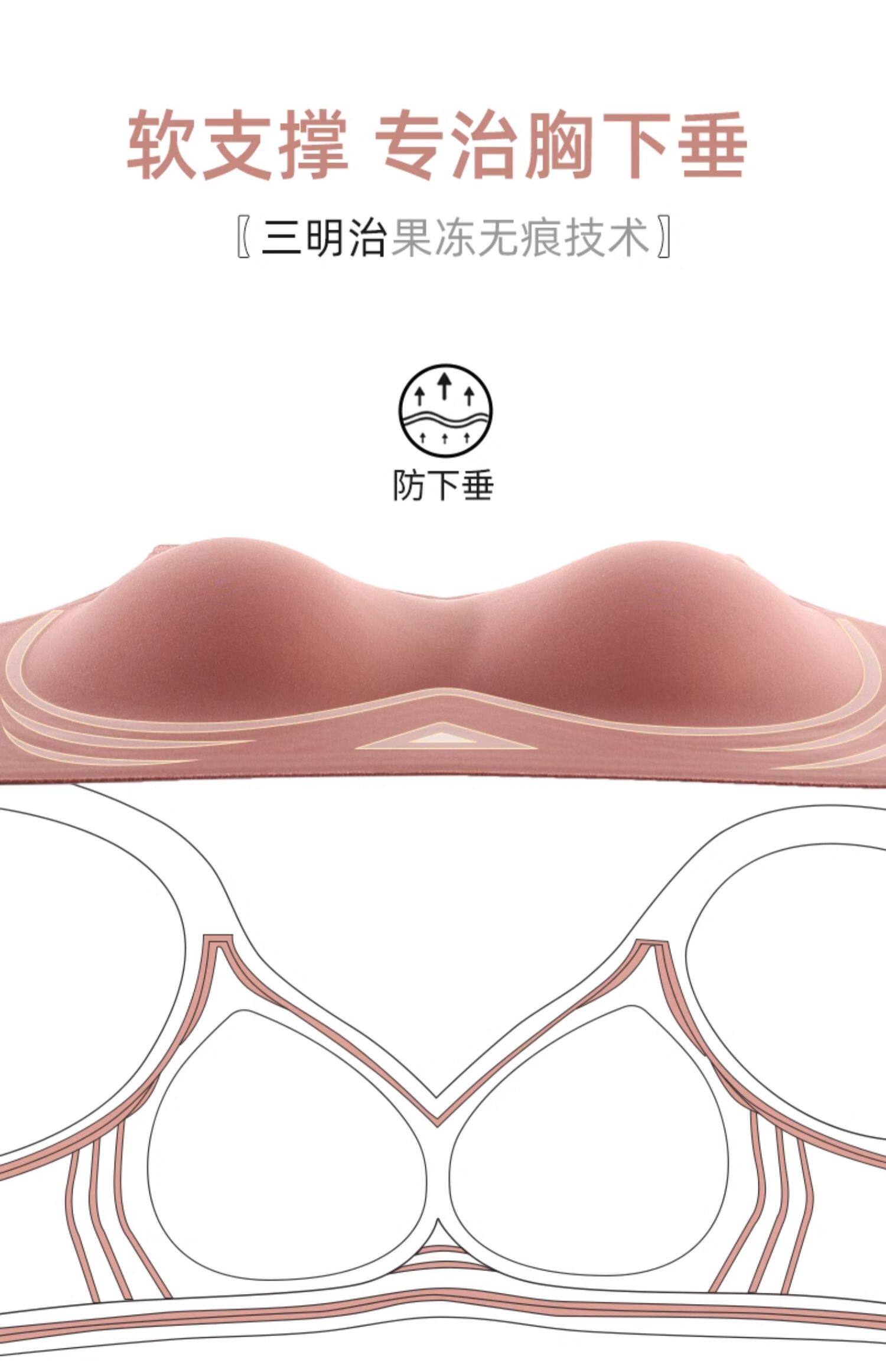 無痕內衣女3D果凍條軟支撐聚攏文胸收副乳上托薄款大胸顯小胸罩