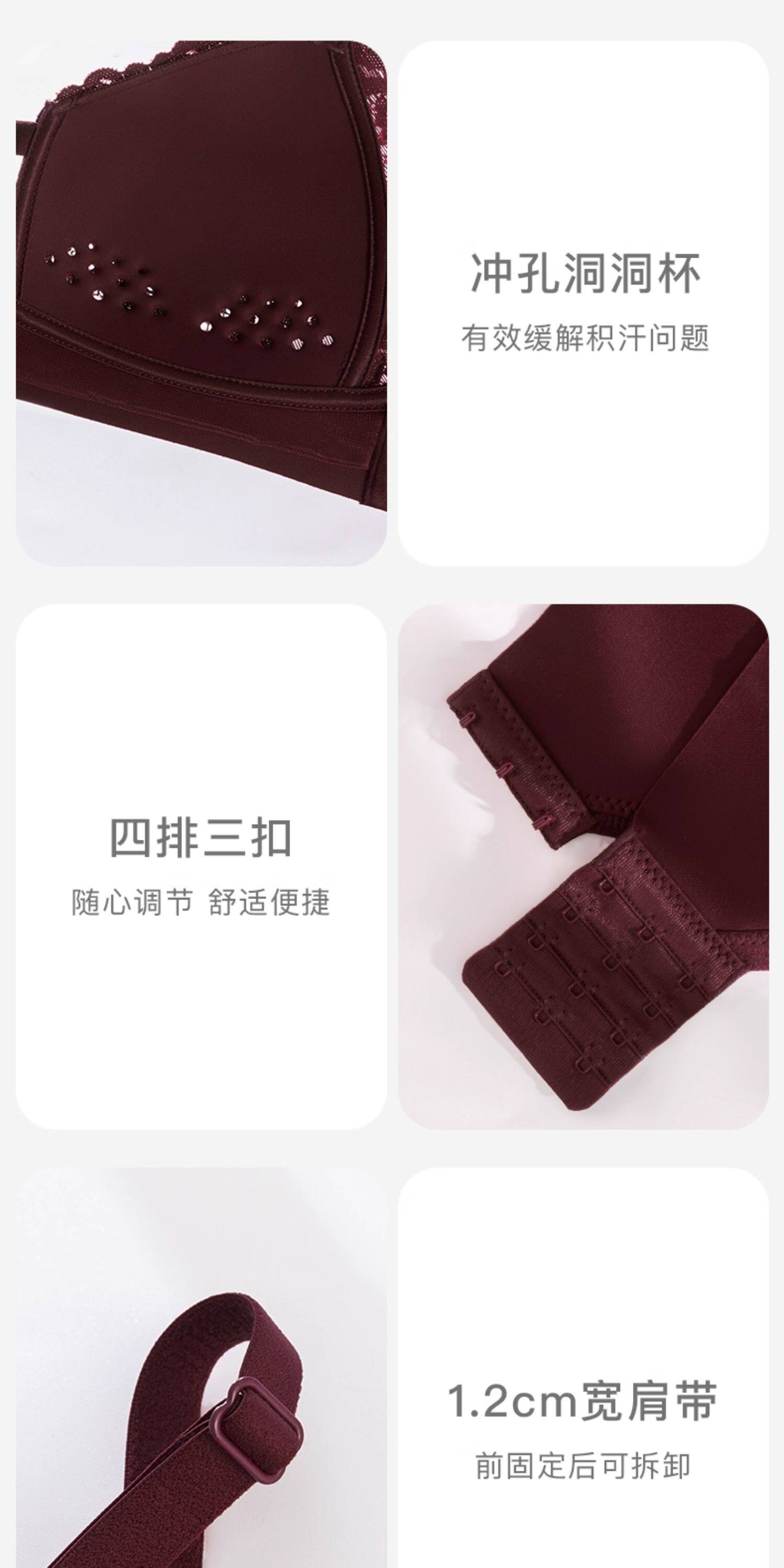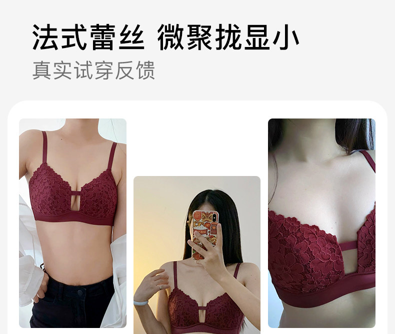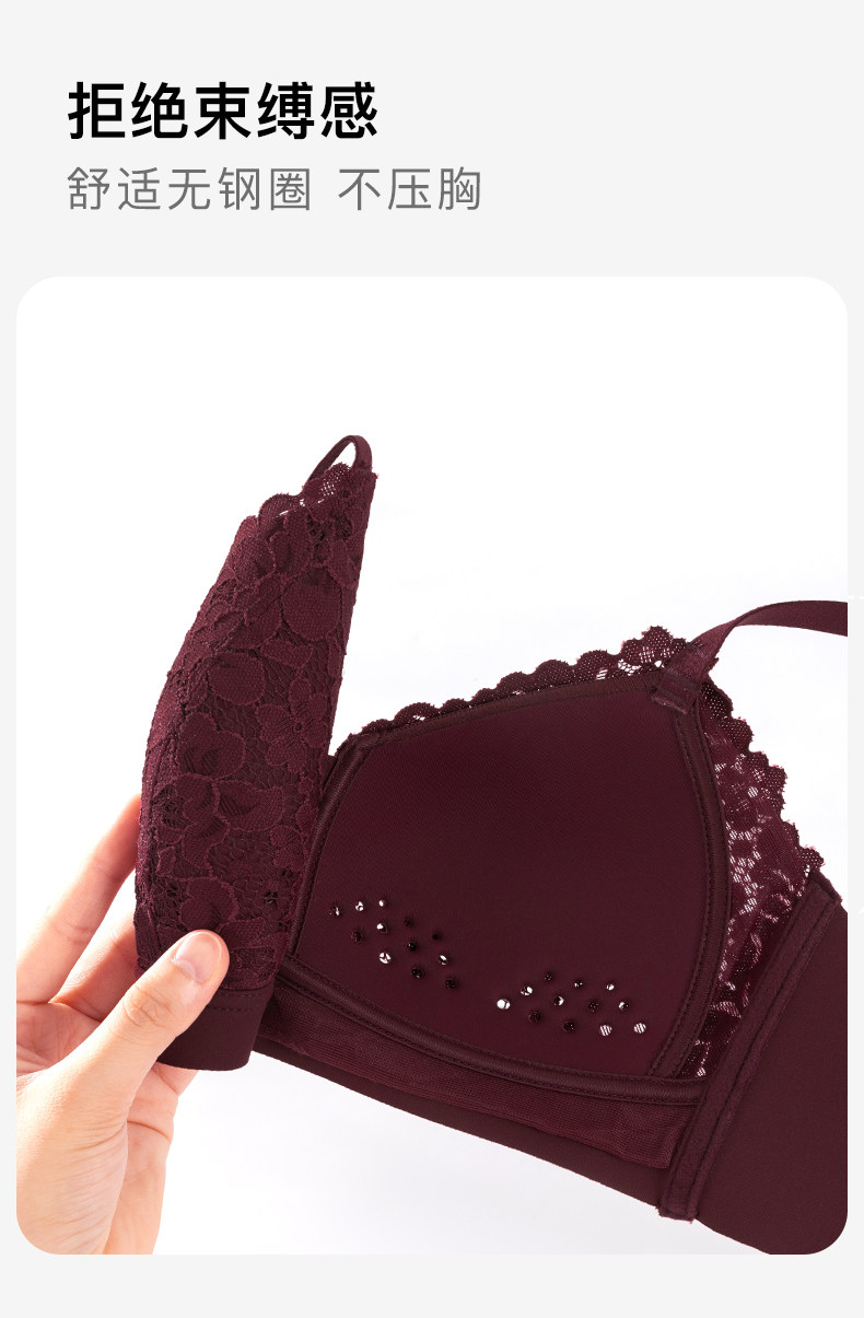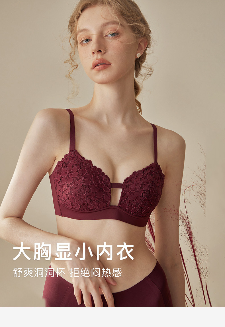 酒紅色內衣套裝女士大碼薄款本命年無鋼圈蕾絲聚攏大胸顯小文胸罩