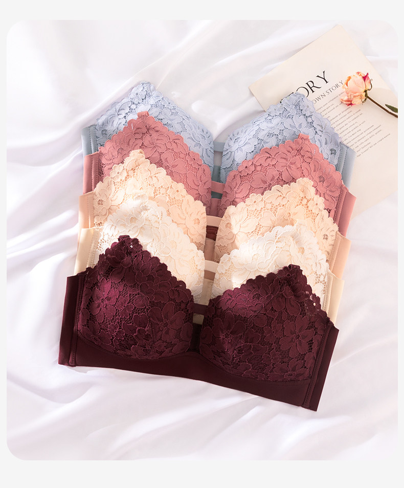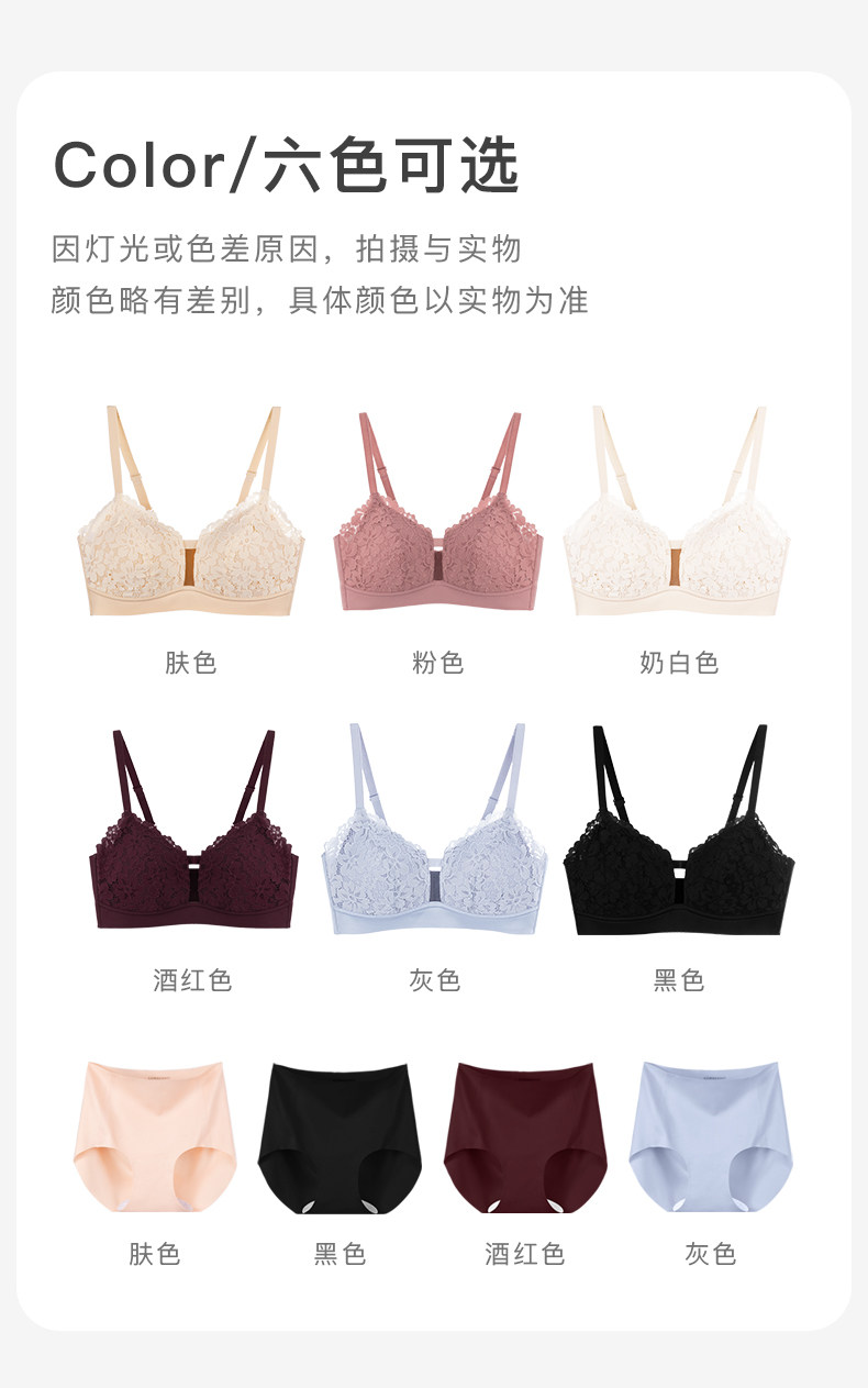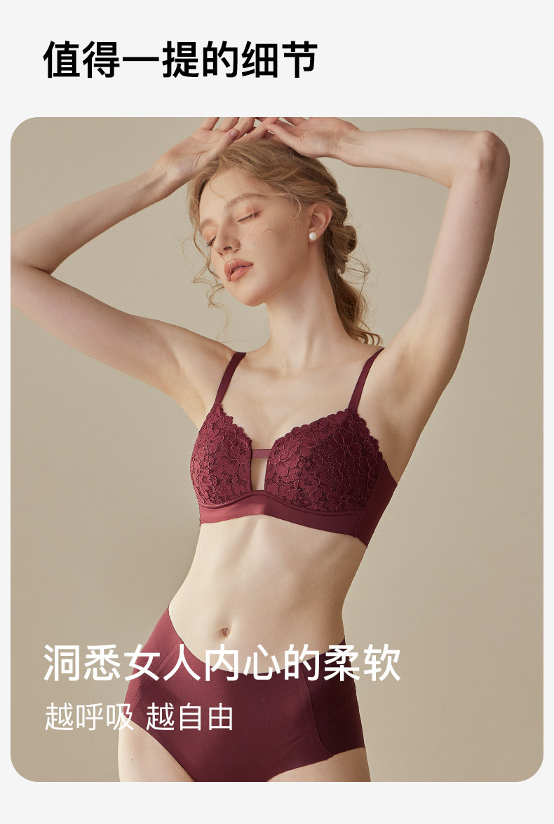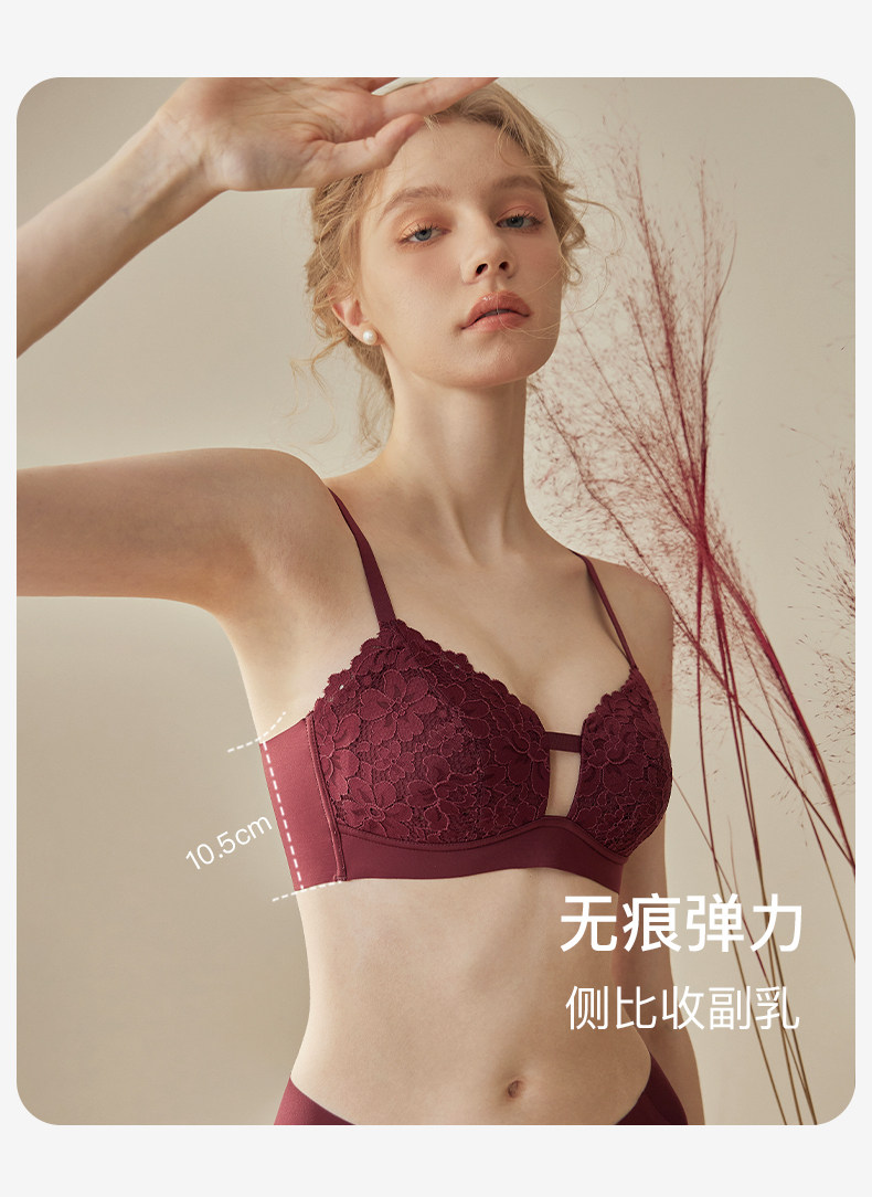 酒紅色內衣套裝女士大碼薄款本命年無鋼圈蕾絲聚攏大胸顯小文胸罩
