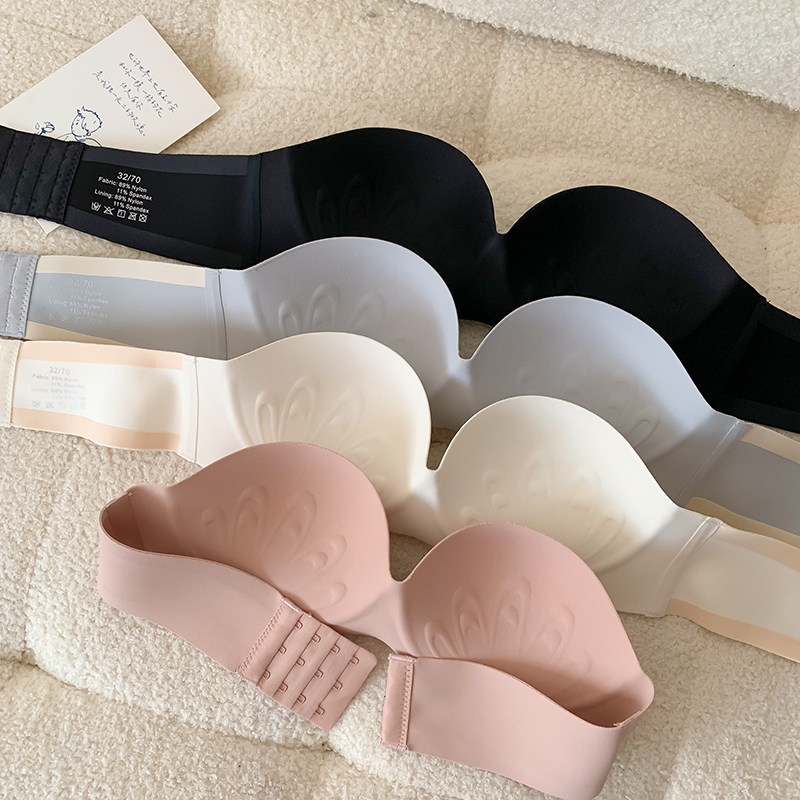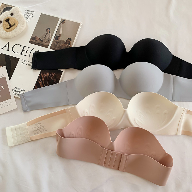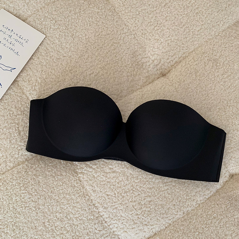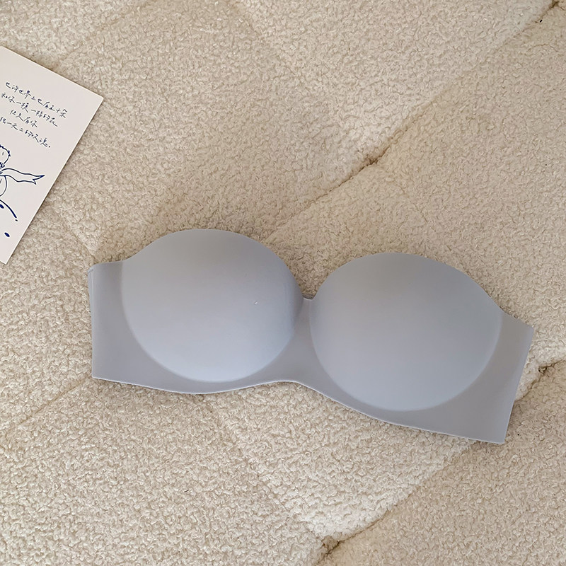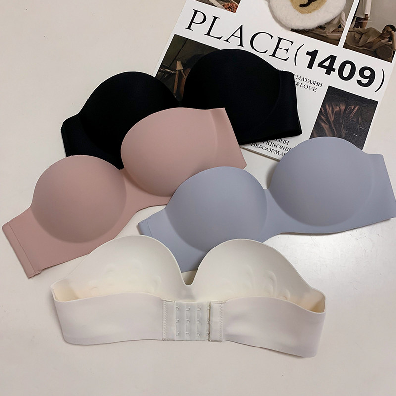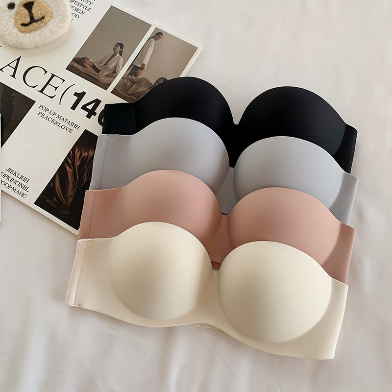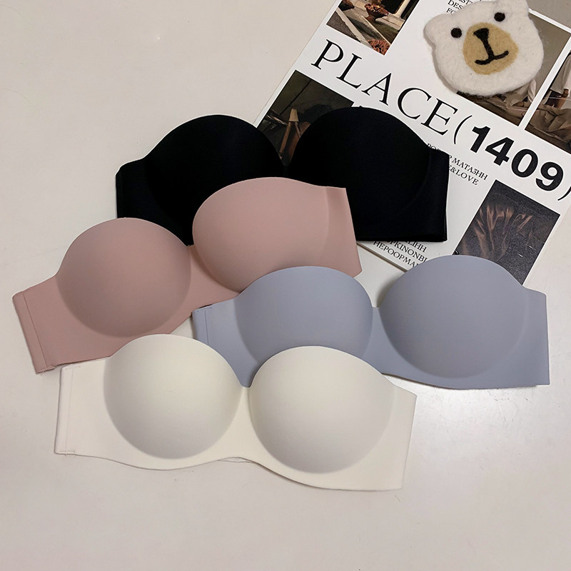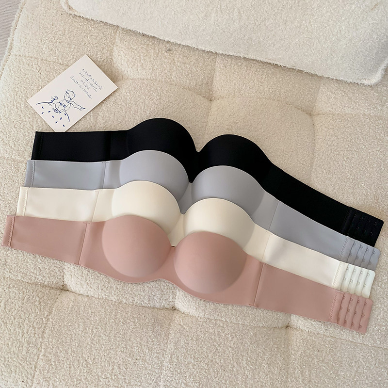 夏季無肩帶內衣女聚攏防滑一片式無痕抹胸無鋼圈上托隱形文胸光面