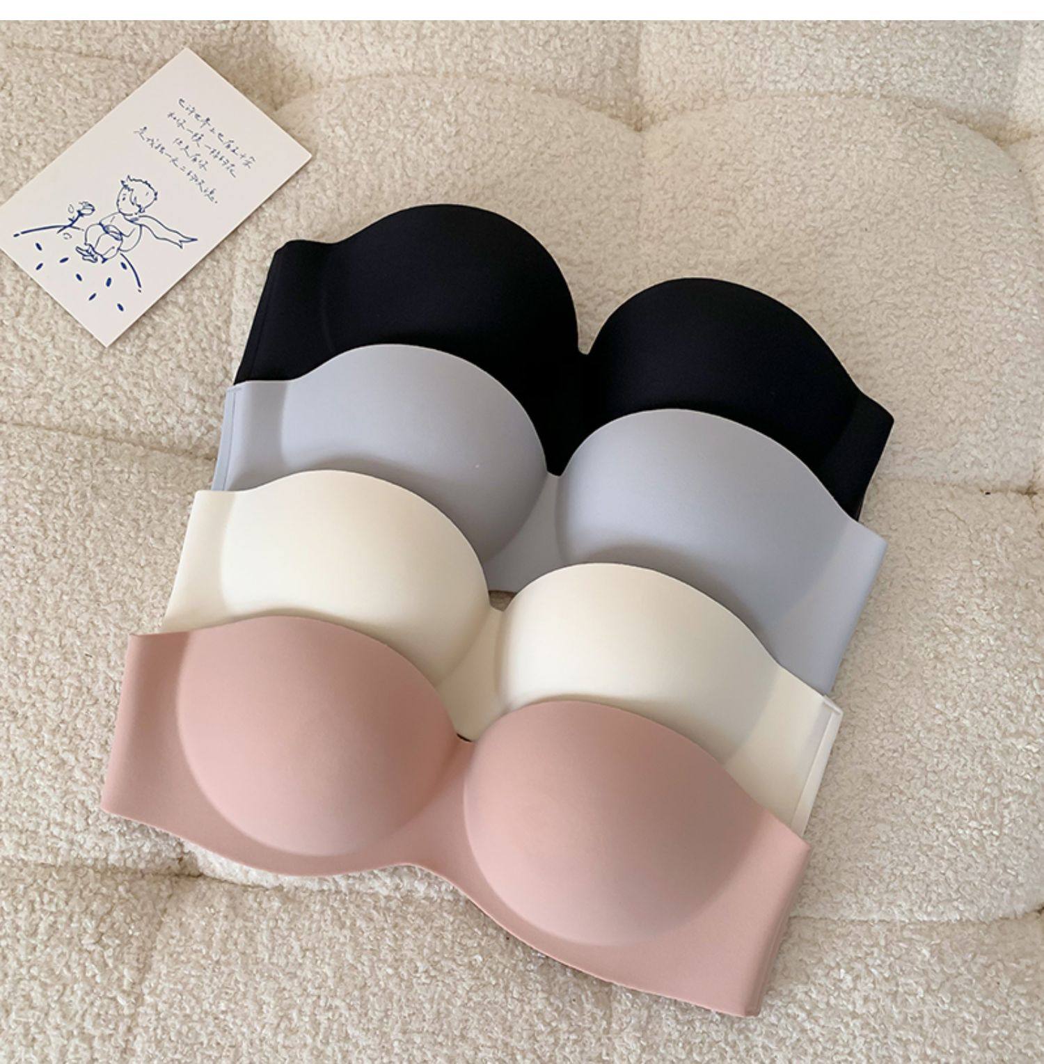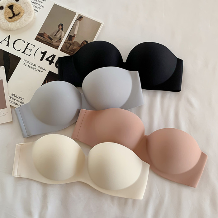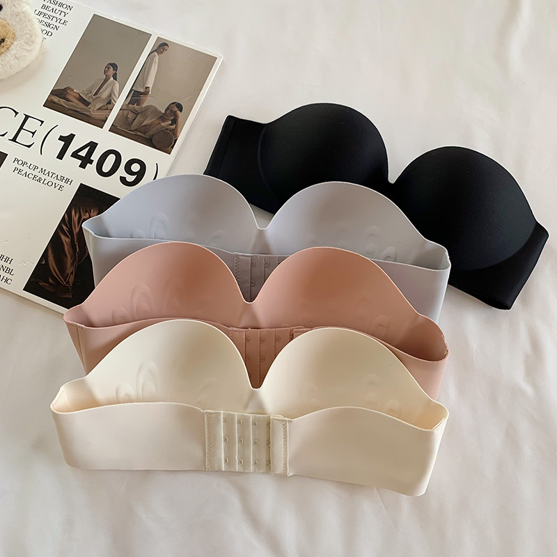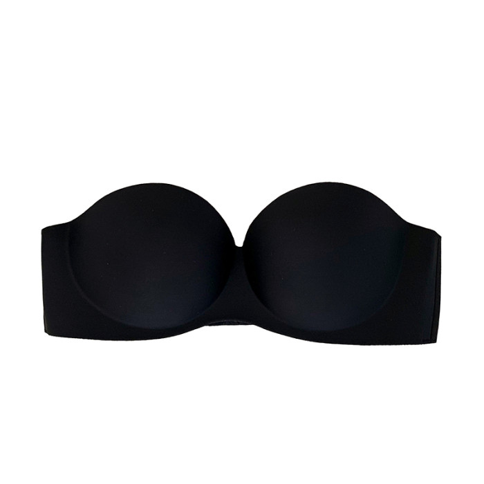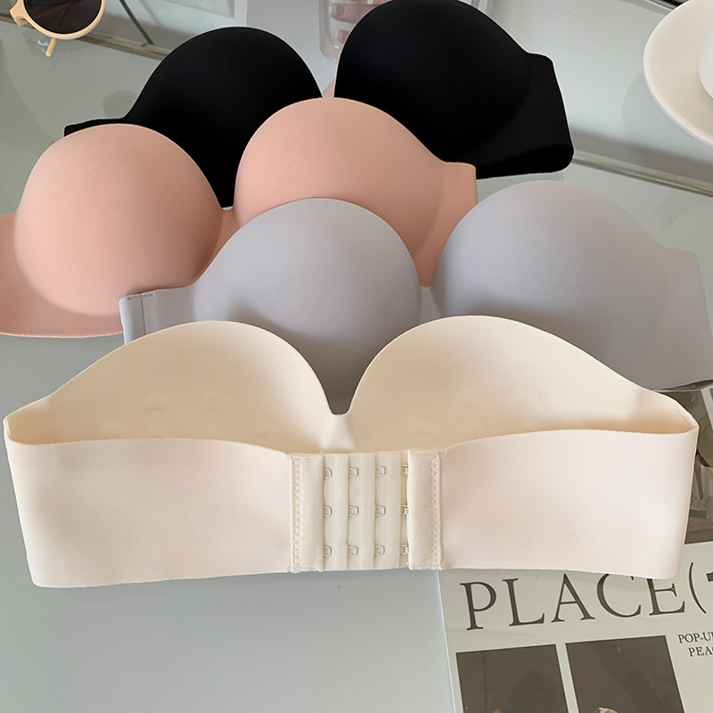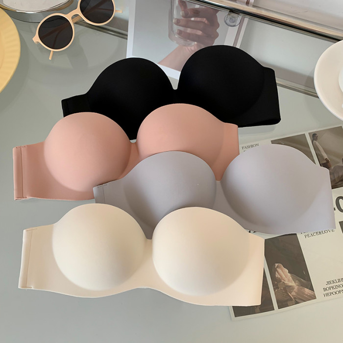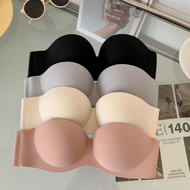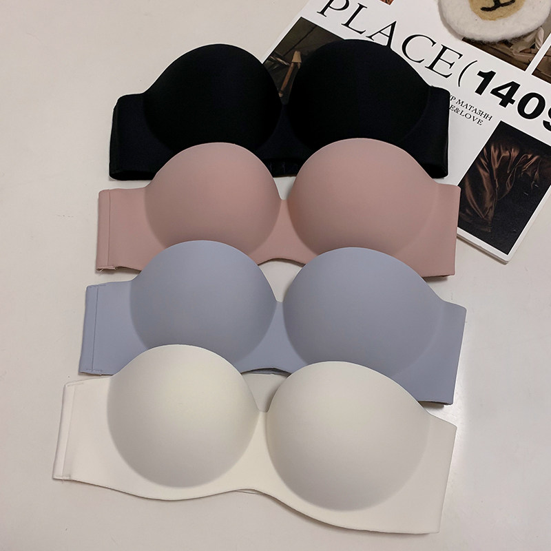 夏季無肩帶內衣女聚攏防滑一片式無痕抹胸無鋼圈上托隱形文胸光面