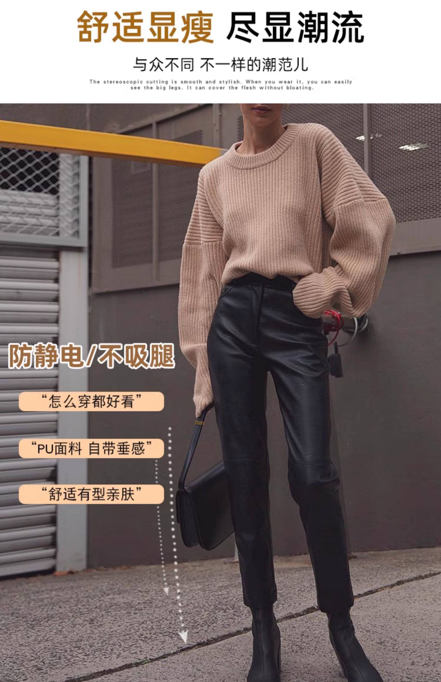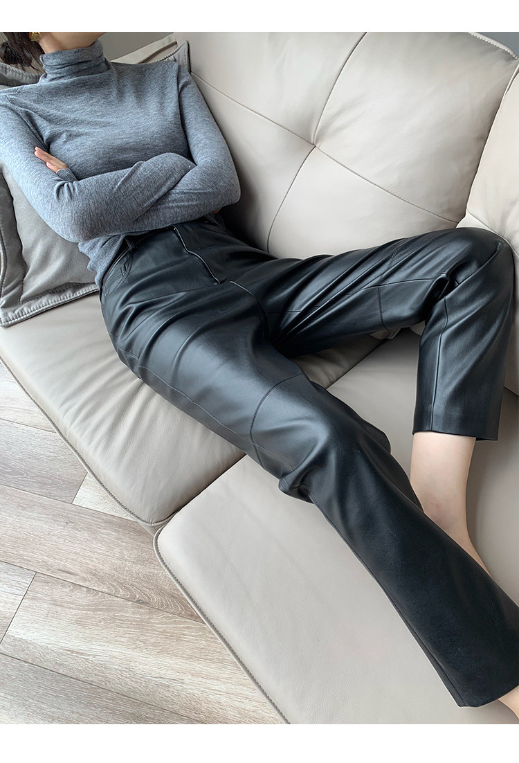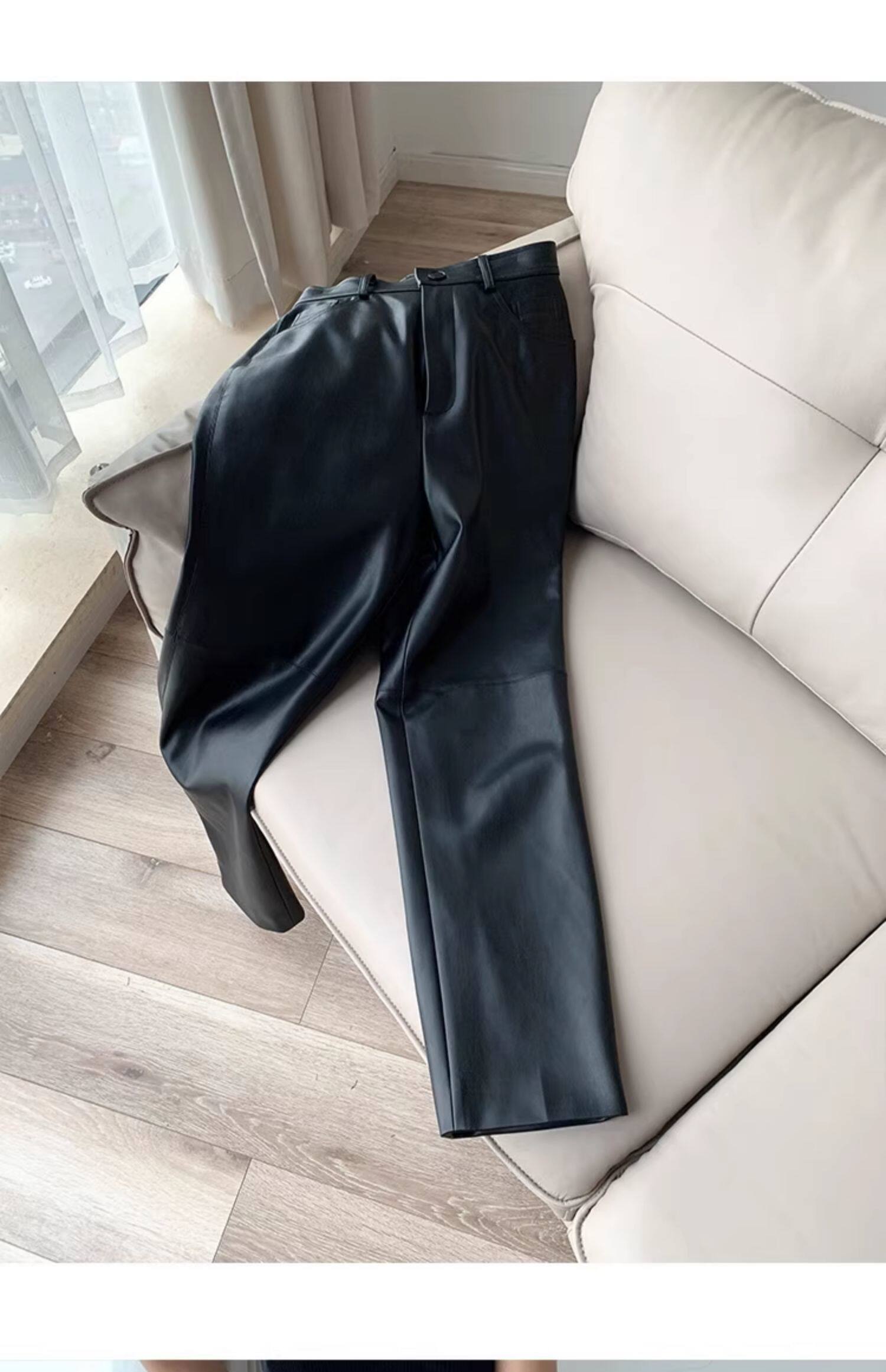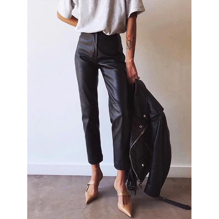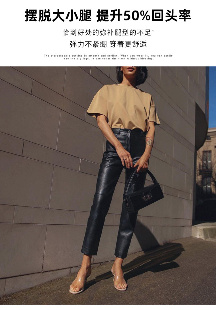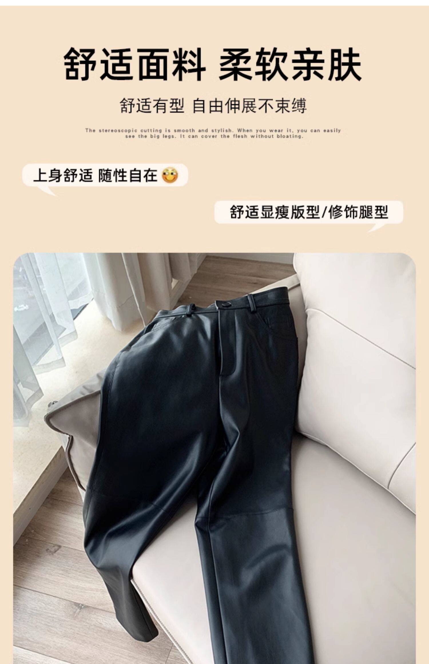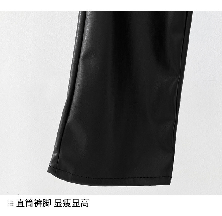 歐貨2025爆款皮褲女士新款秋冬款外穿美式機車風九分pu皮直筒褲子