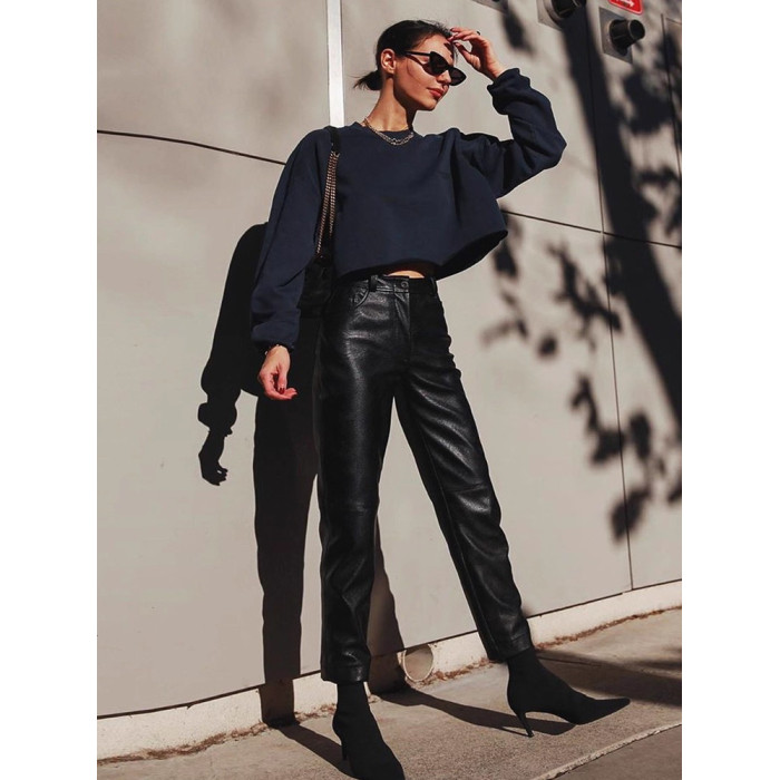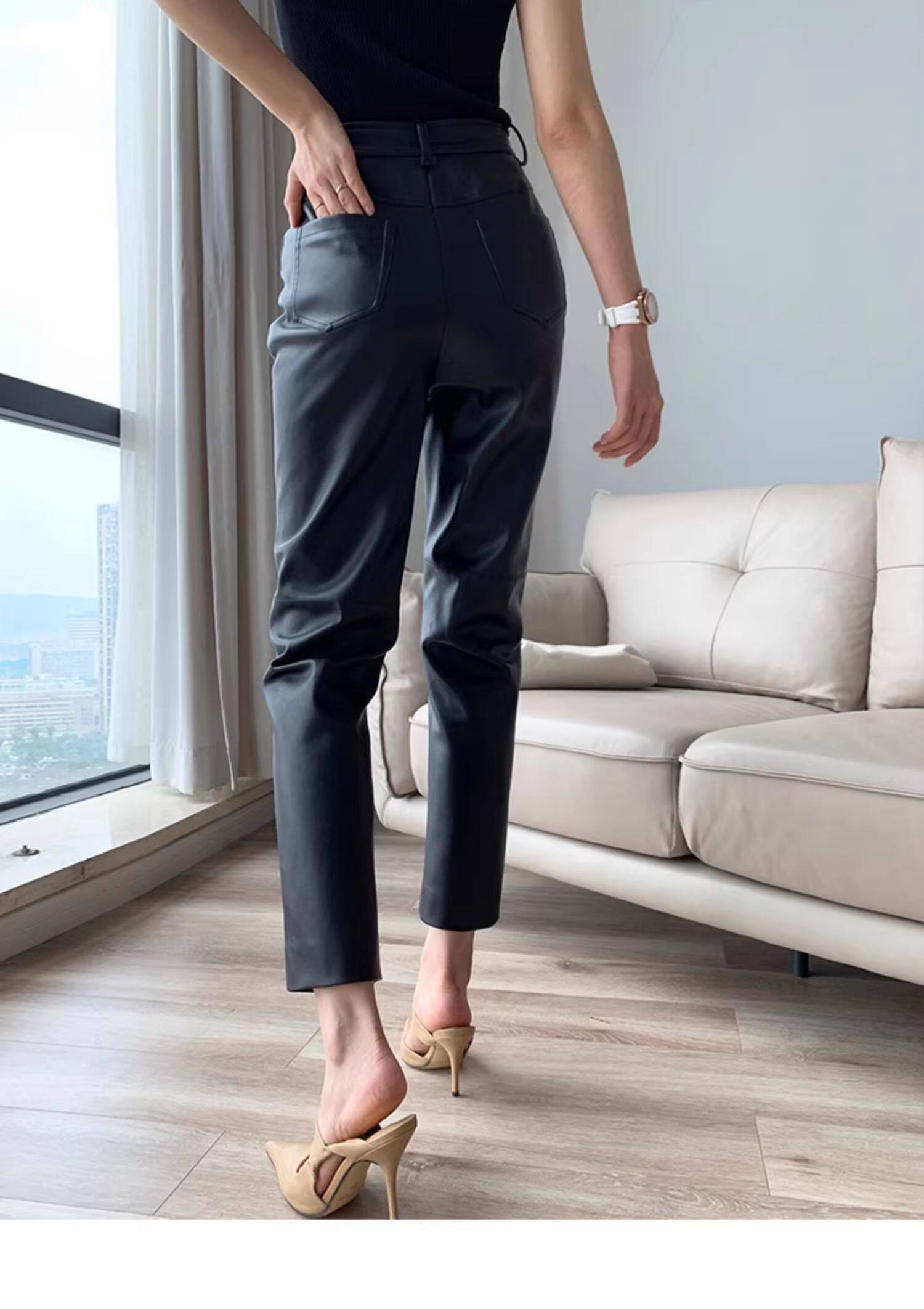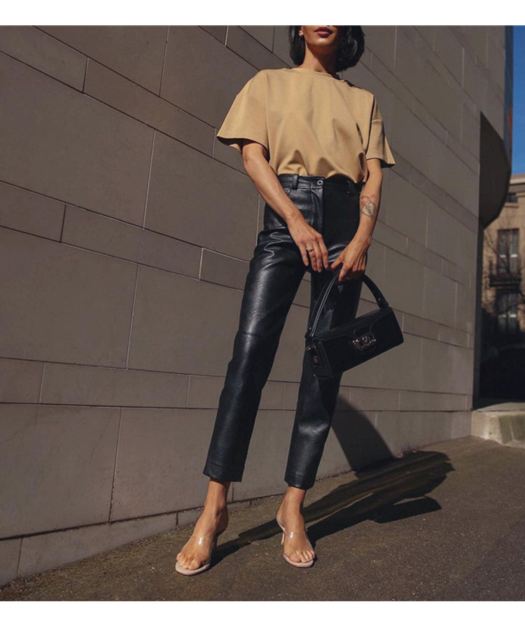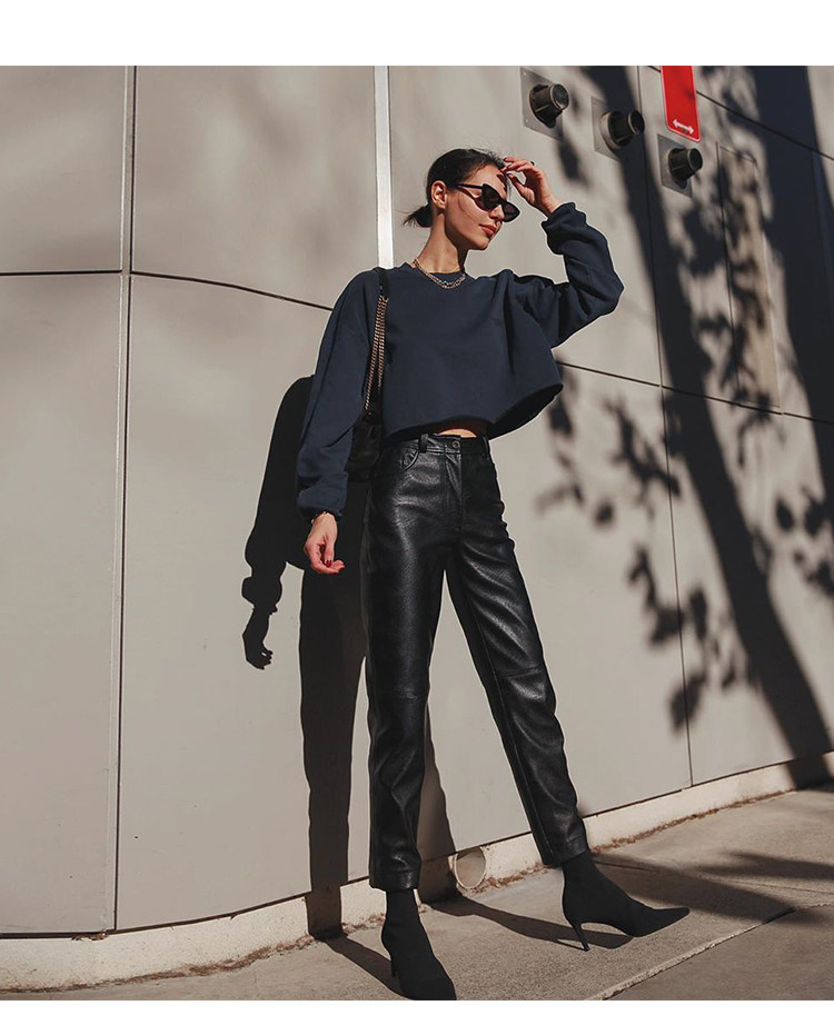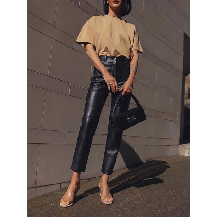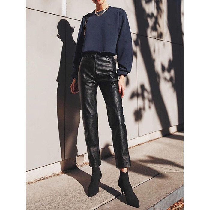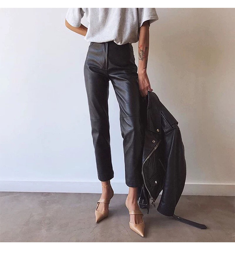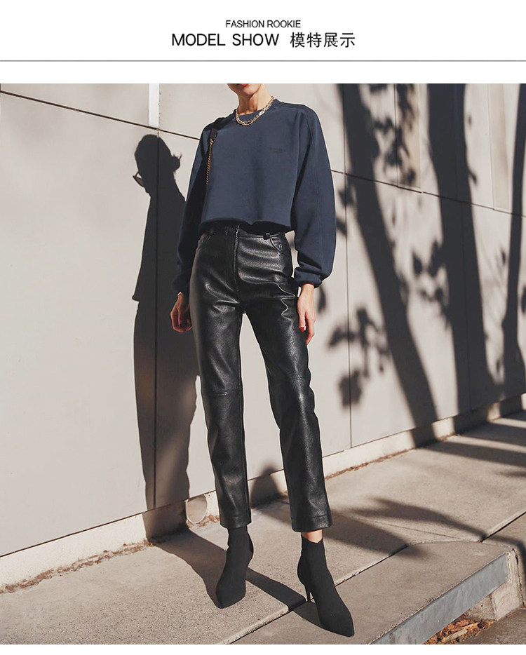歐貨2025爆款皮褲女士新款秋冬款外穿美式機車風九分pu皮直筒褲子